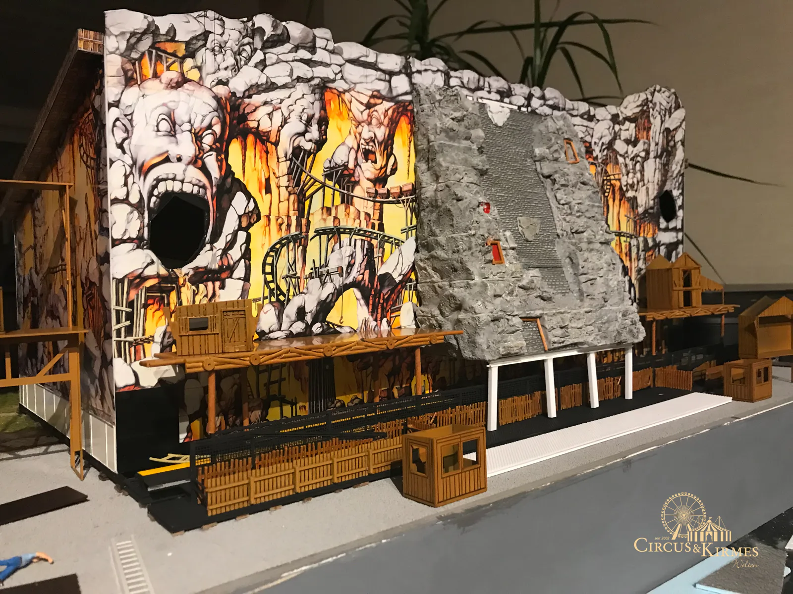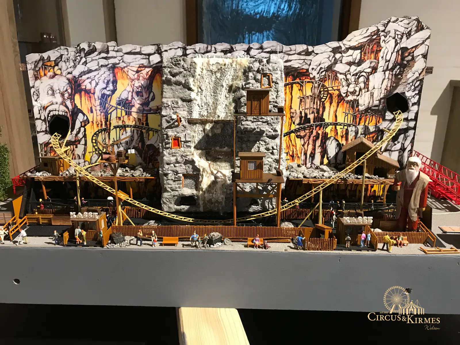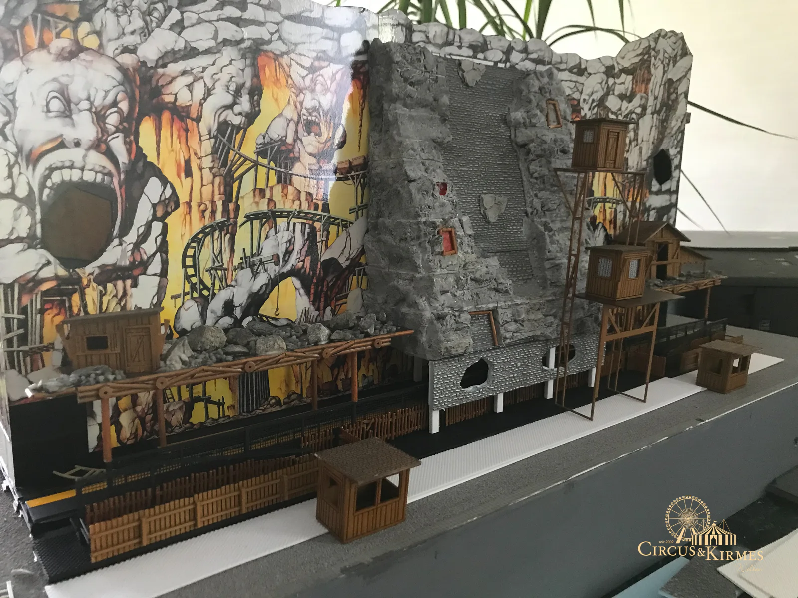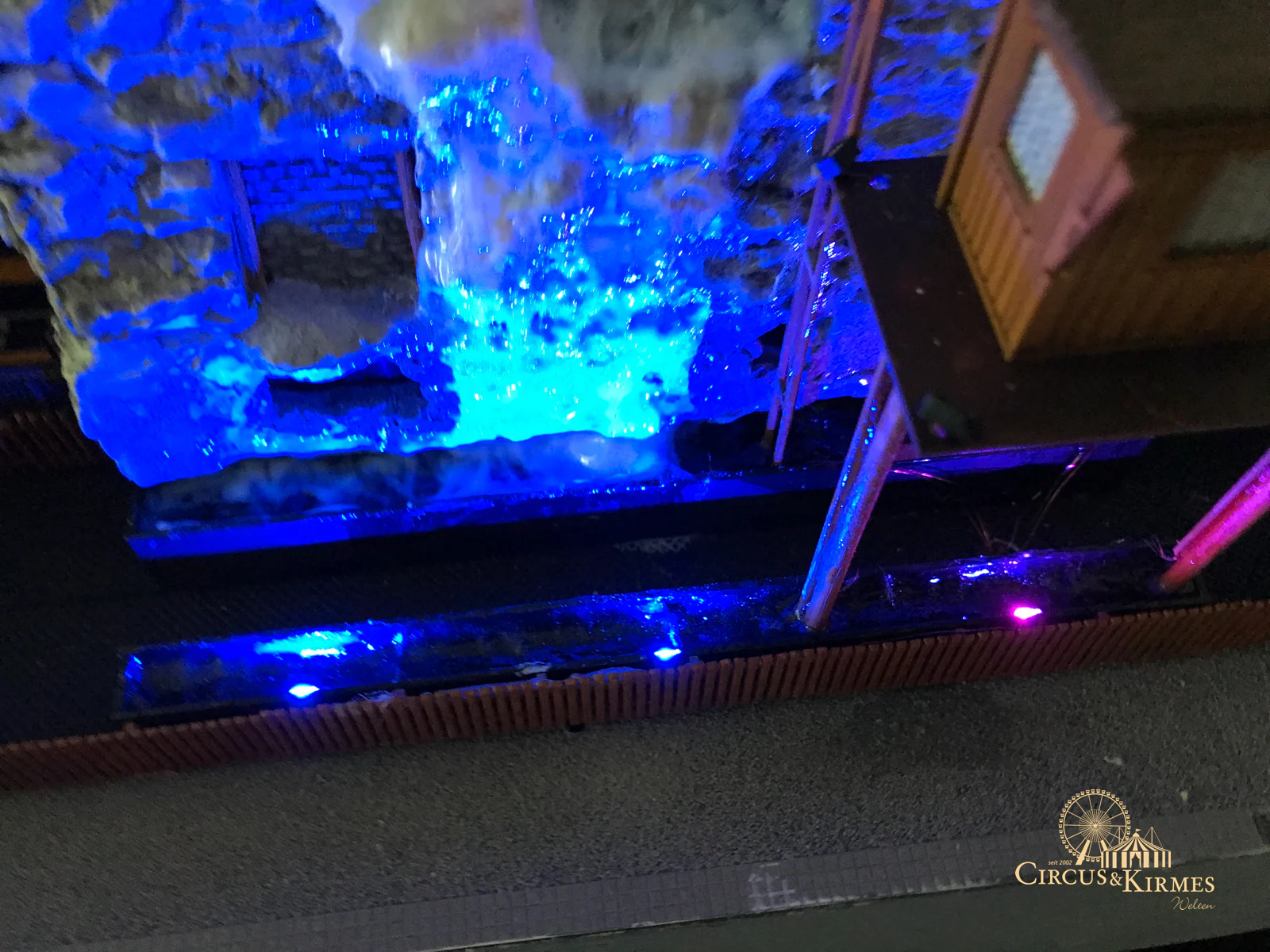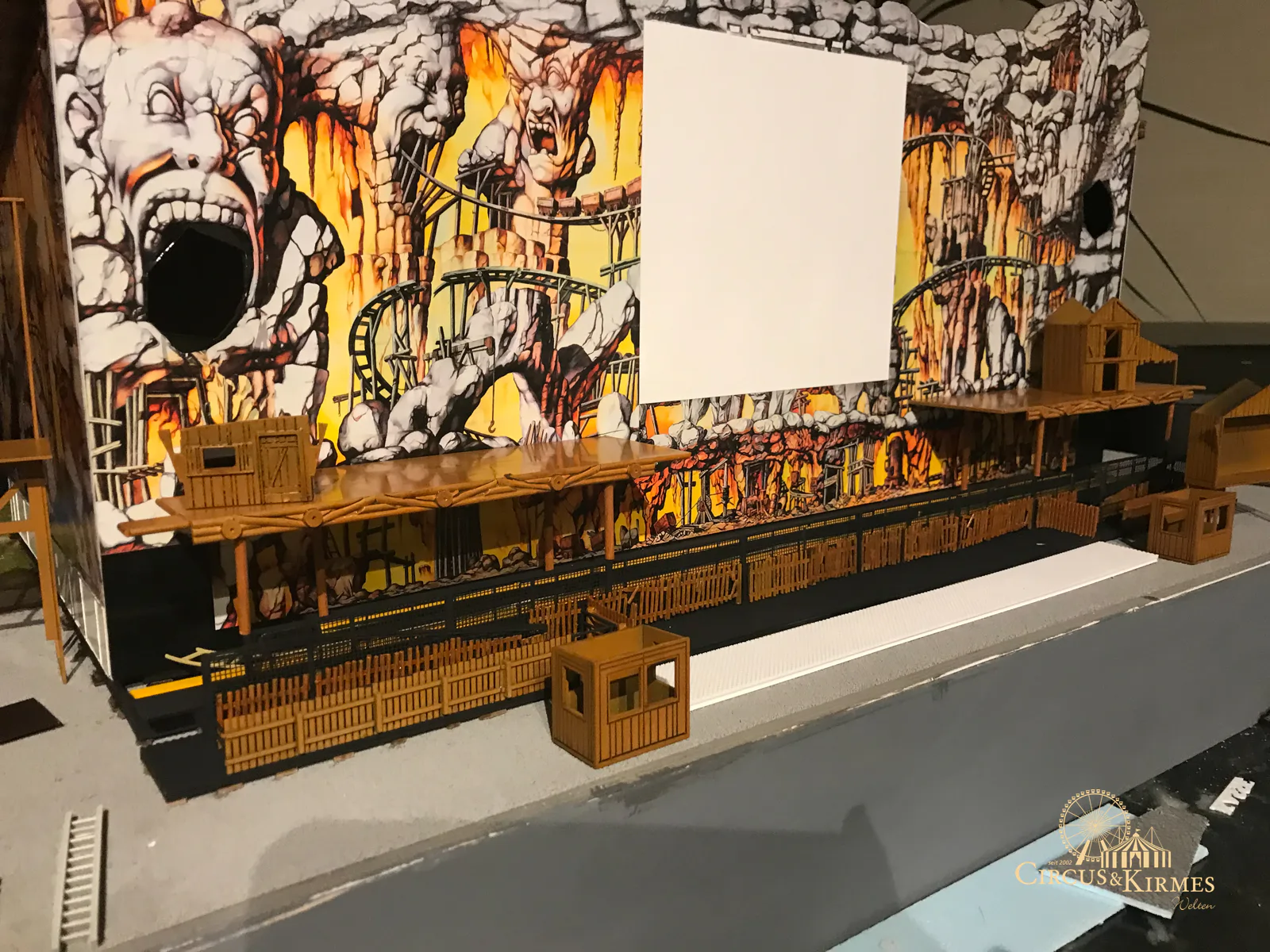 Nach zahlreichen Arbeitsstunden entstand dieses detailgetreue Modell des bekannten Fahrgeschäfts Höllenblitz im Maßstab 1:87. Es handelt sich um einen kompletten Eigenbau – von der Grundkonstruktion über die Antriebs- und Beleuchtungstechnik bis hin zur aufwendigen Gestaltung der Fassade und Szenerie.