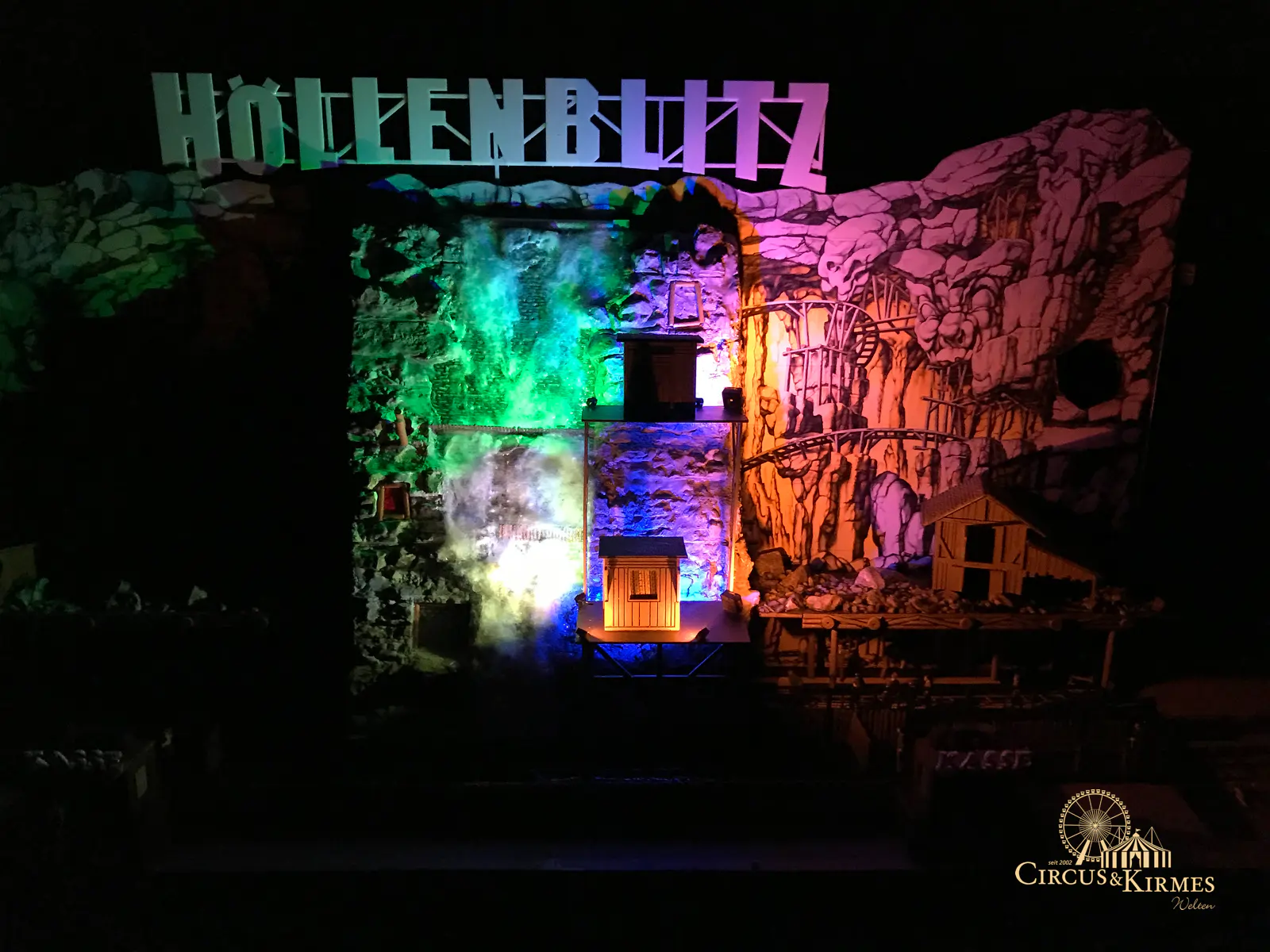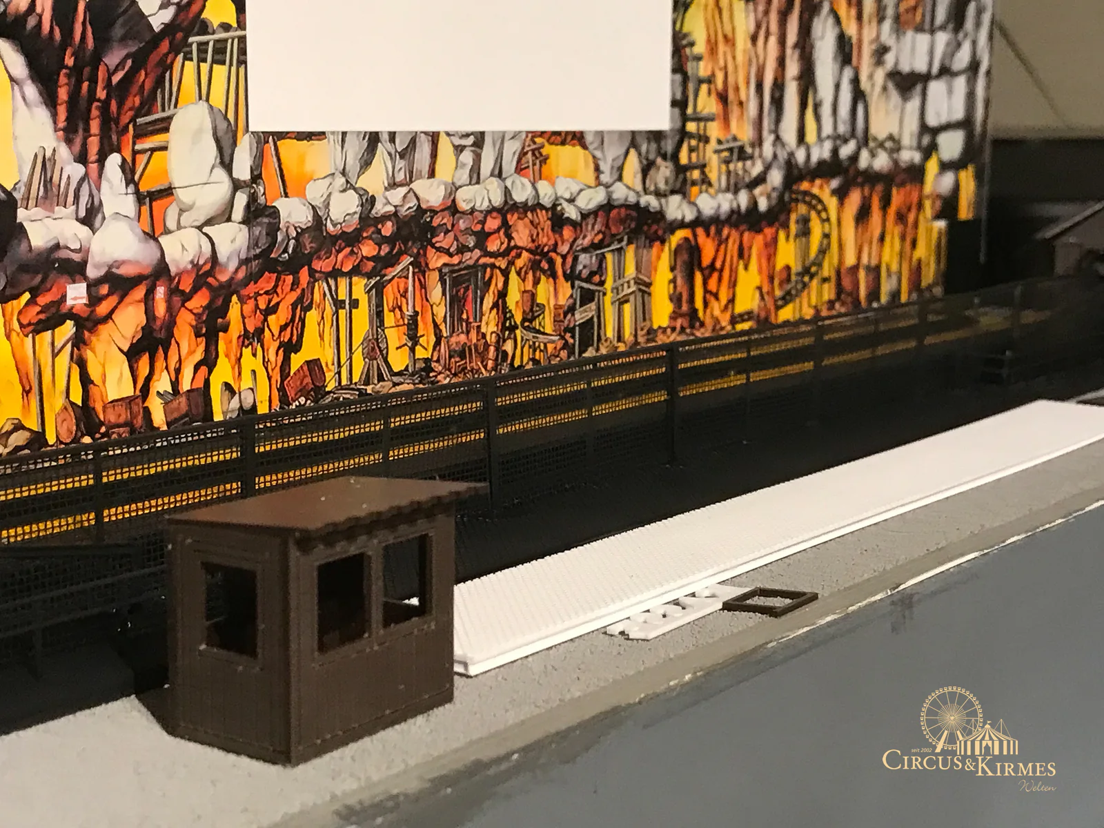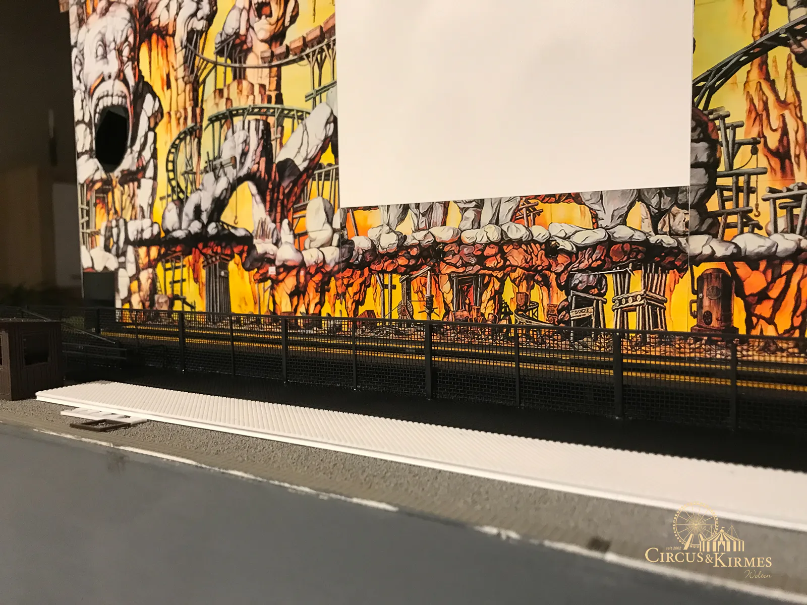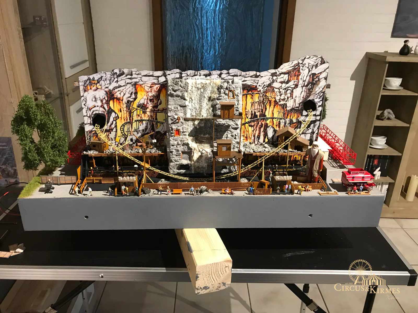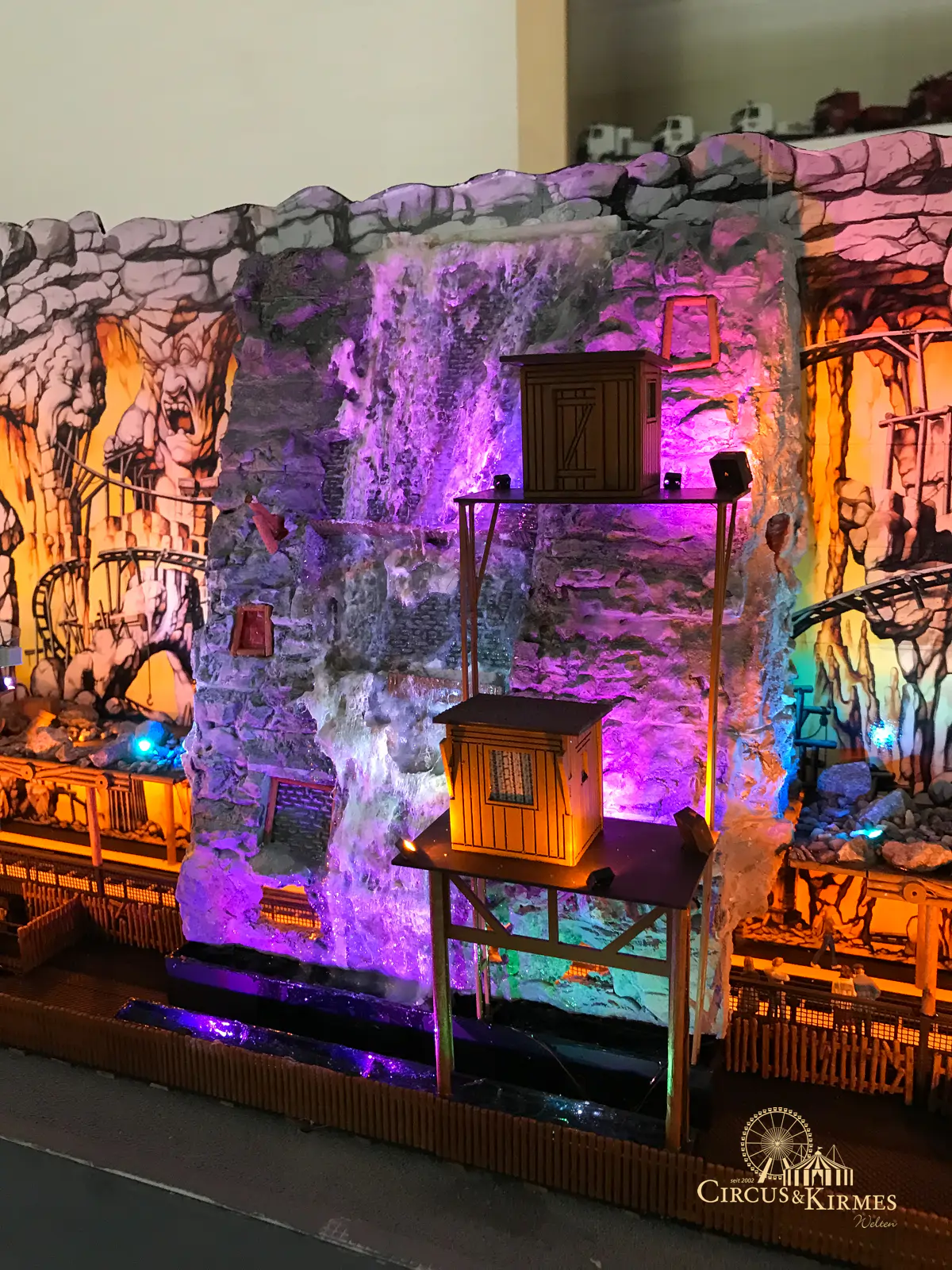 Nach zahlreichen Arbeitsstunden entstand dieses detailgetreue Modell des bekannten Fahrgeschäfts Höllenblitz im Maßstab 1:87. Es handelt sich um einen kompletten Eigenbau – von der Grundkonstruktion über die Antriebs- und Beleuchtungstechnik bis hin zur aufwendigen Gestaltung der Fassade und Szenerie.