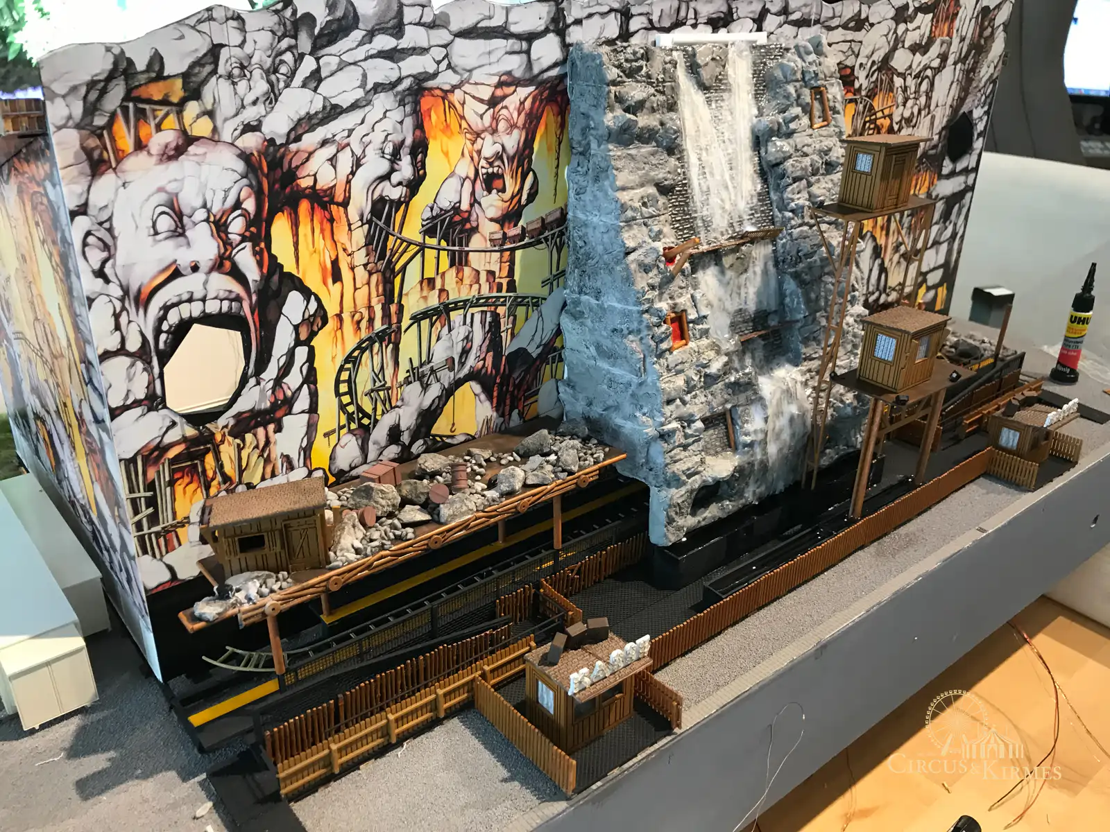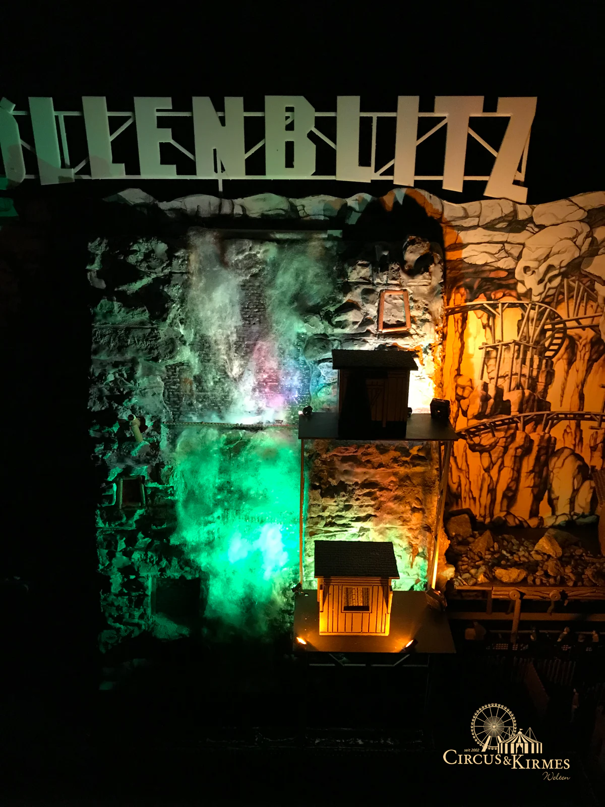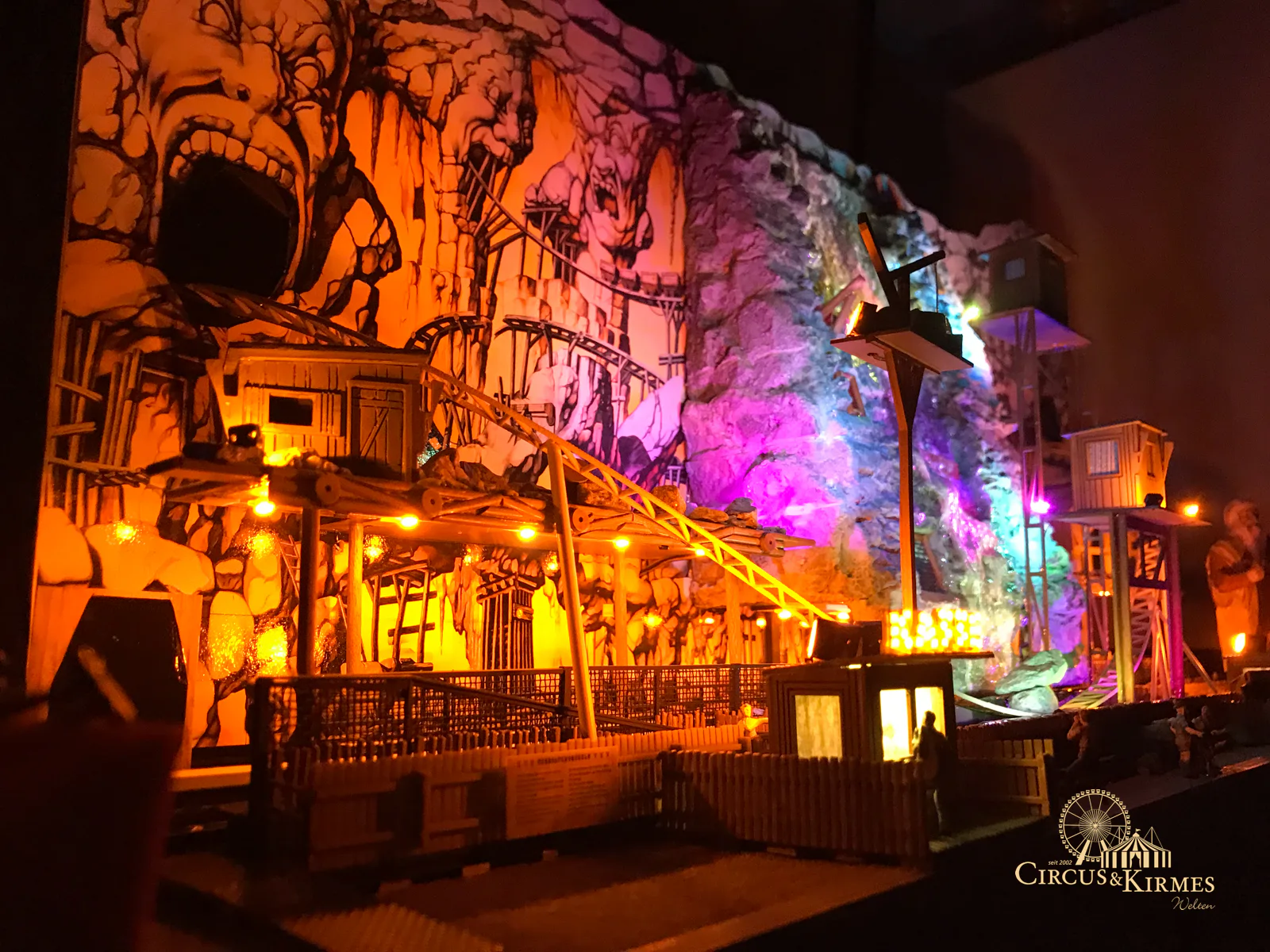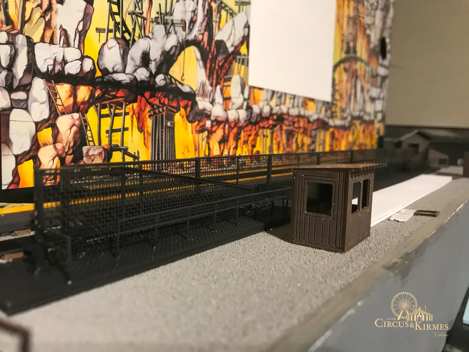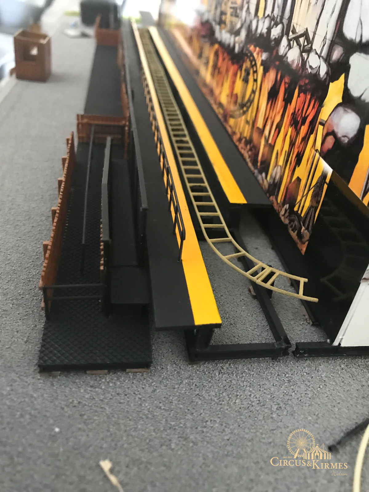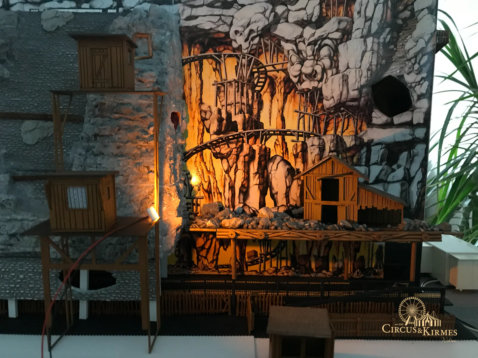 Nach zahlreichen Arbeitsstunden entstand dieses detailgetreue Modell des bekannten Fahrgeschäfts Höllenblitz im Maßstab 1:87. Es handelt sich um einen kompletten Eigenbau – von der Grundkonstruktion über die Antriebs- und Beleuchtungstechnik bis hin zur aufwendigen Gestaltung der Fassade und Szenerie.