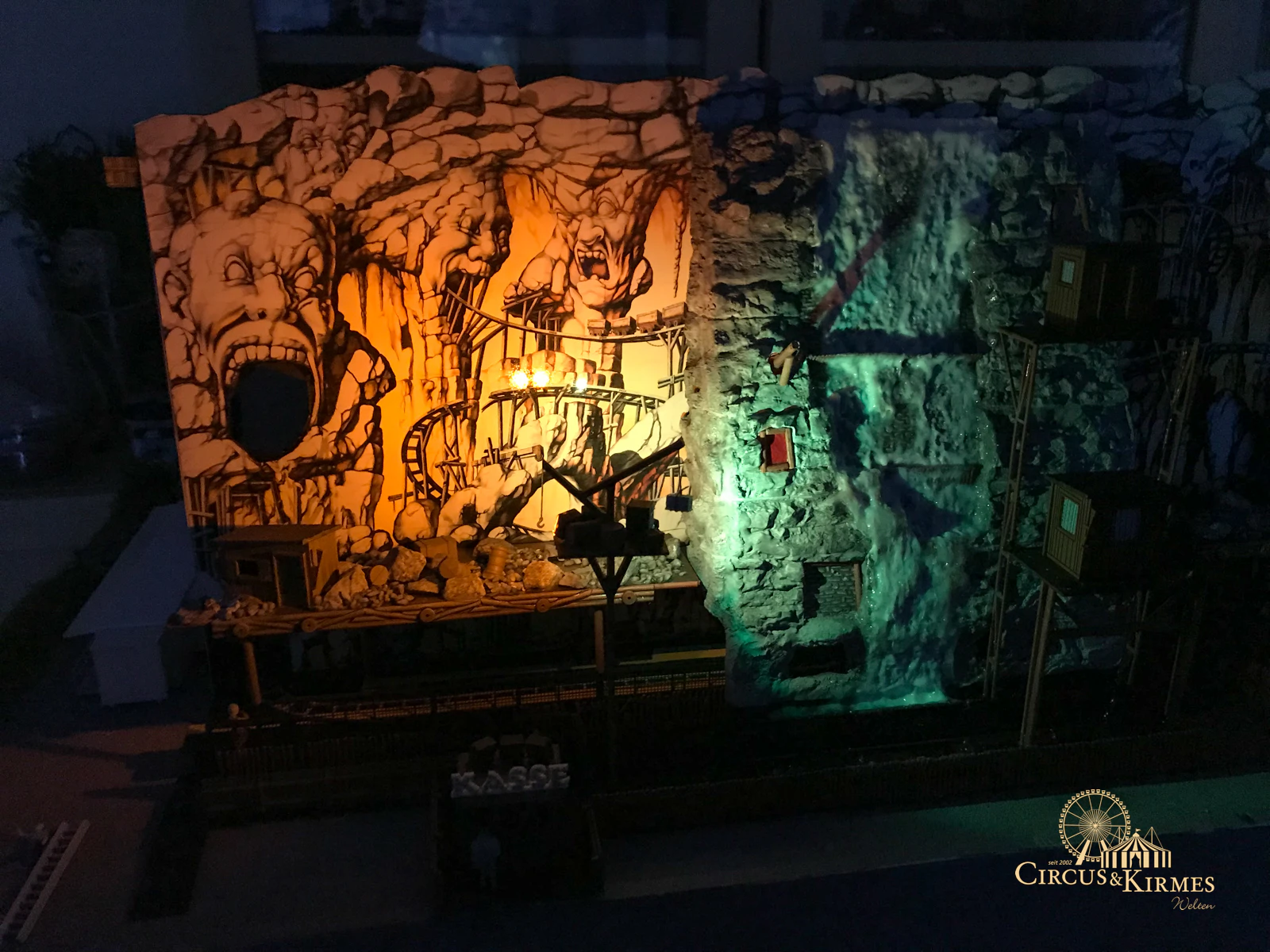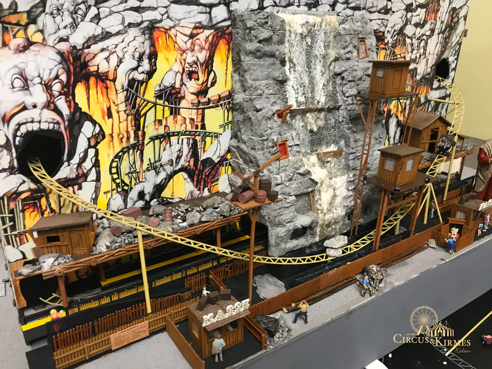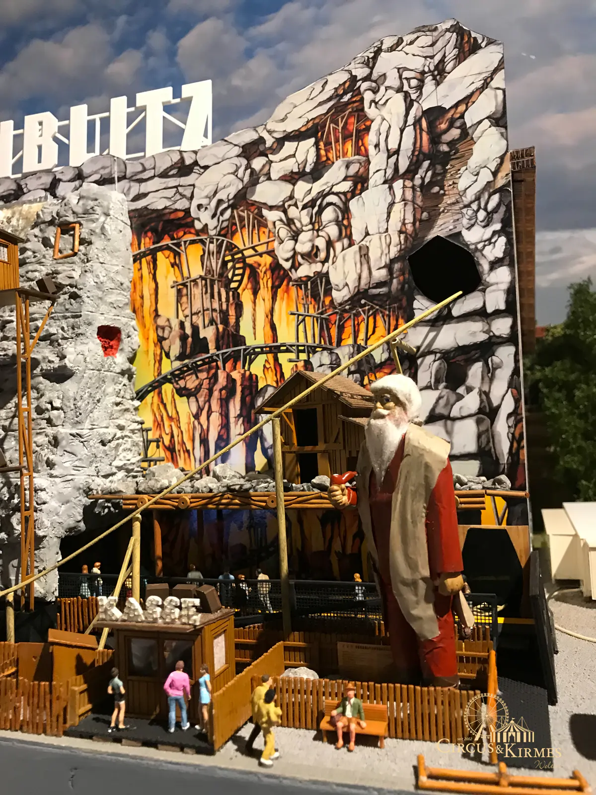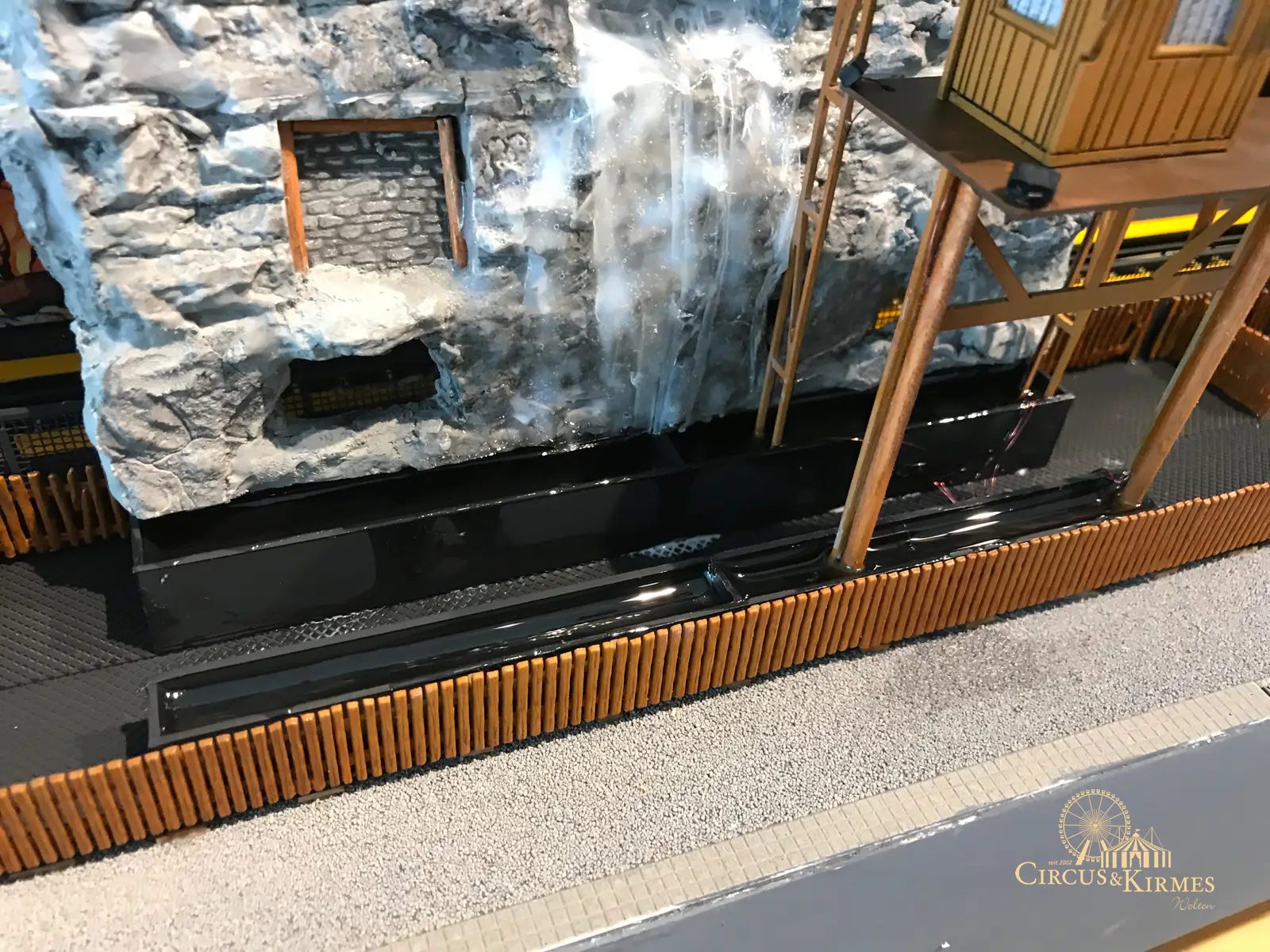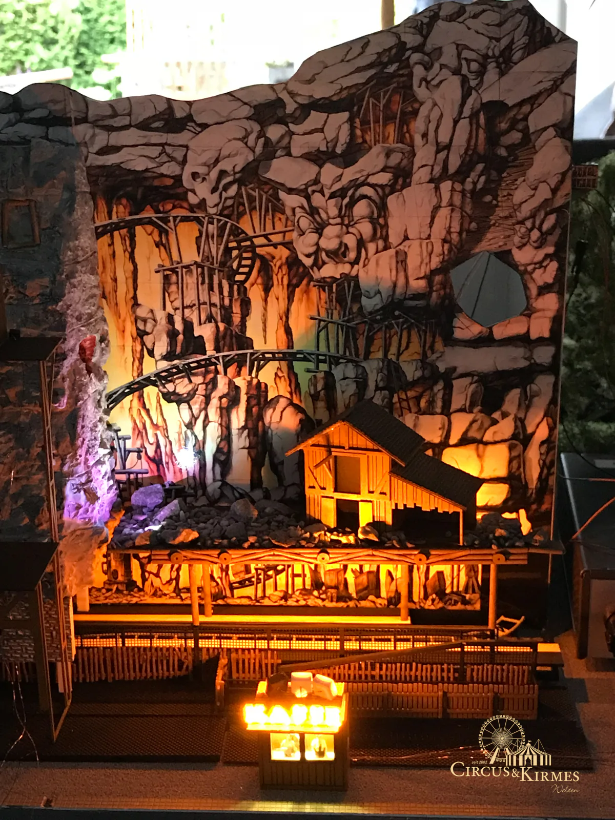Nach zahlreichen Arbeitsstunden entstand dieses detailgetreue Modell des bekannten Fahrgeschäfts Höllenblitz im Maßstab 1:87. Es handelt sich um einen kompletten Eigenbau – von der Grundkonstruktion über die Antriebs- und Beleuchtungstechnik bis hin zur aufwendigen Gestaltung der Fassade und Szenerie.