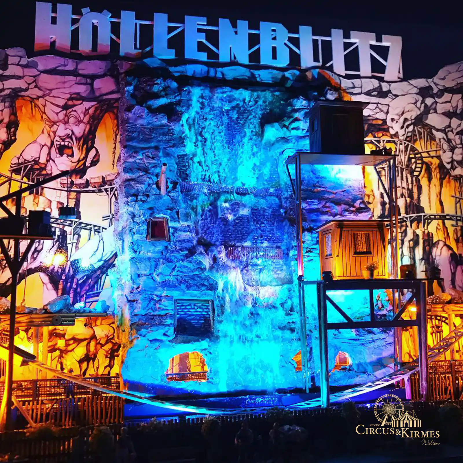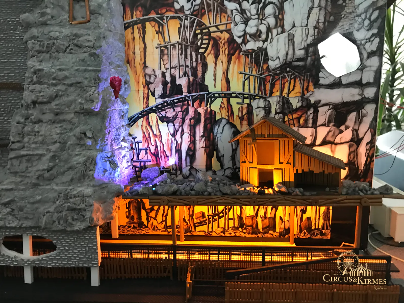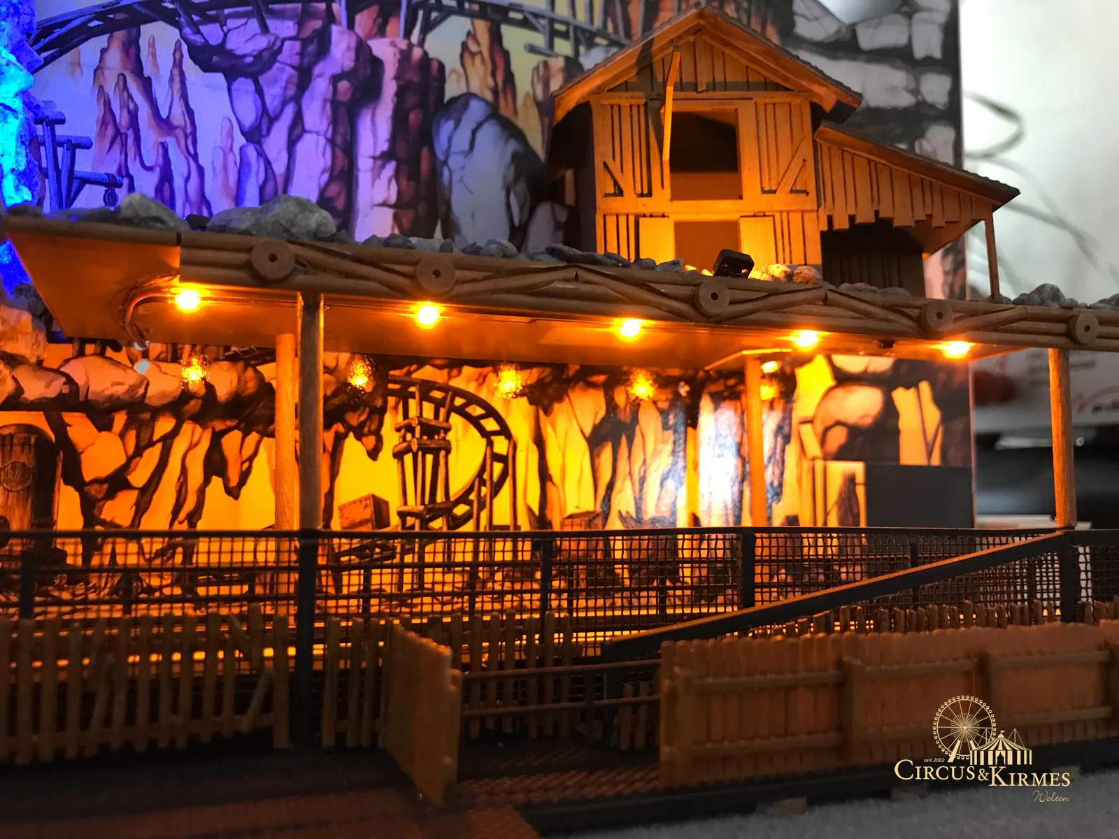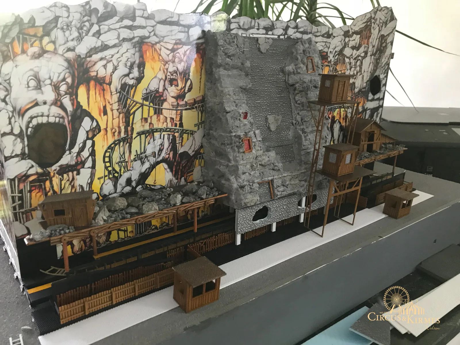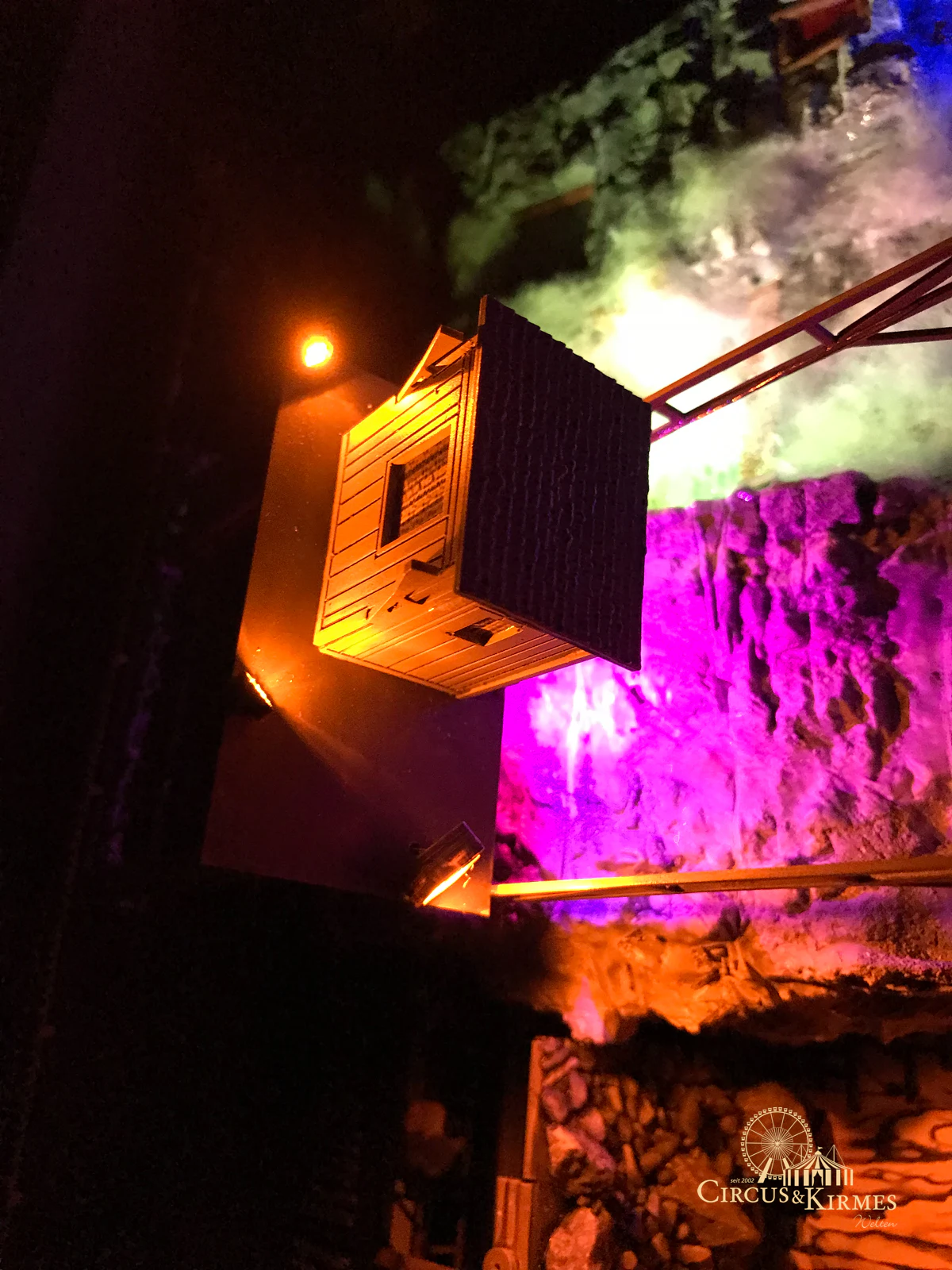 Nach zahlreichen Arbeitsstunden entstand dieses detailgetreue Modell des bekannten Fahrgeschäfts Höllenblitz im Maßstab 1:87. Es handelt sich um einen kompletten Eigenbau – von der Grundkonstruktion über die Antriebs- und Beleuchtungstechnik bis hin zur aufwendigen Gestaltung der Fassade und Szenerie.