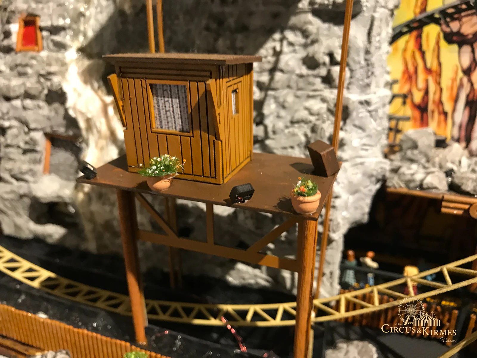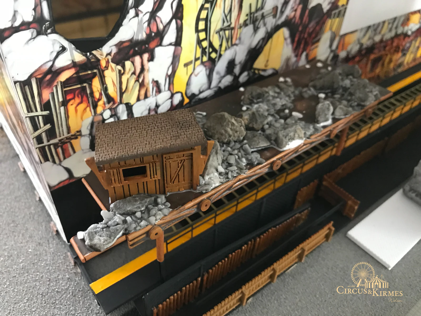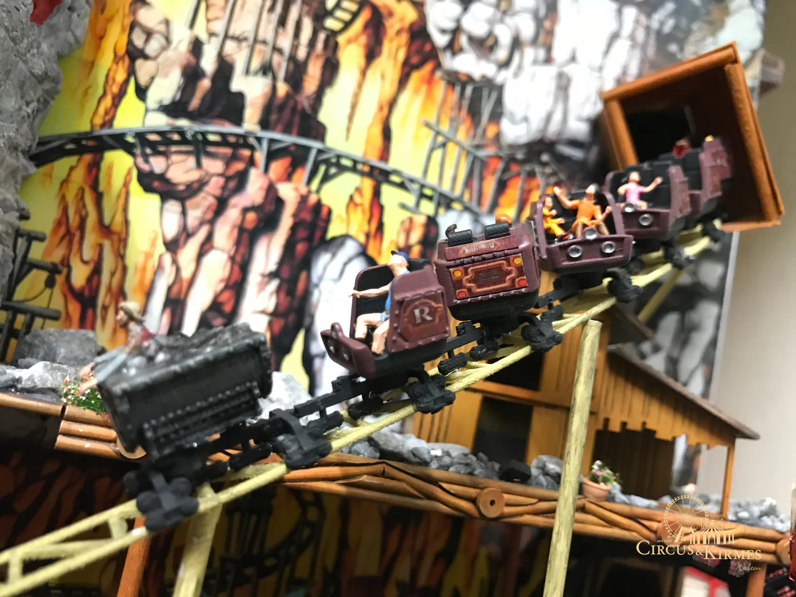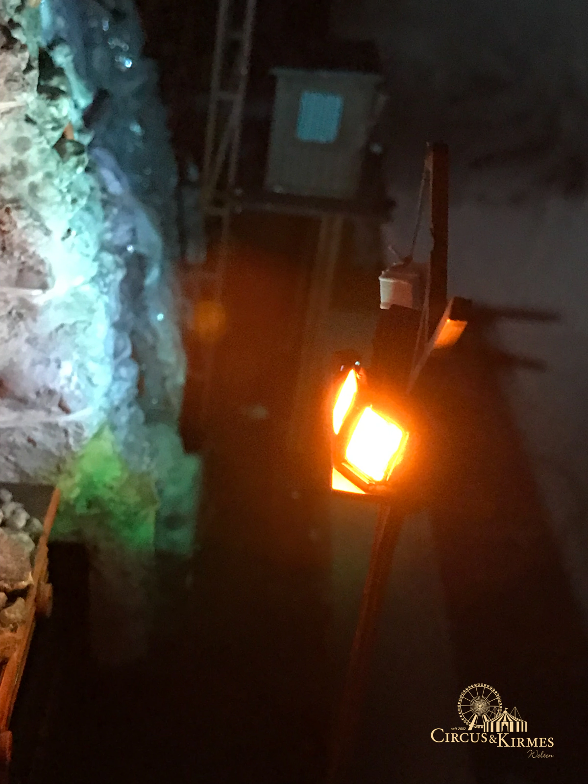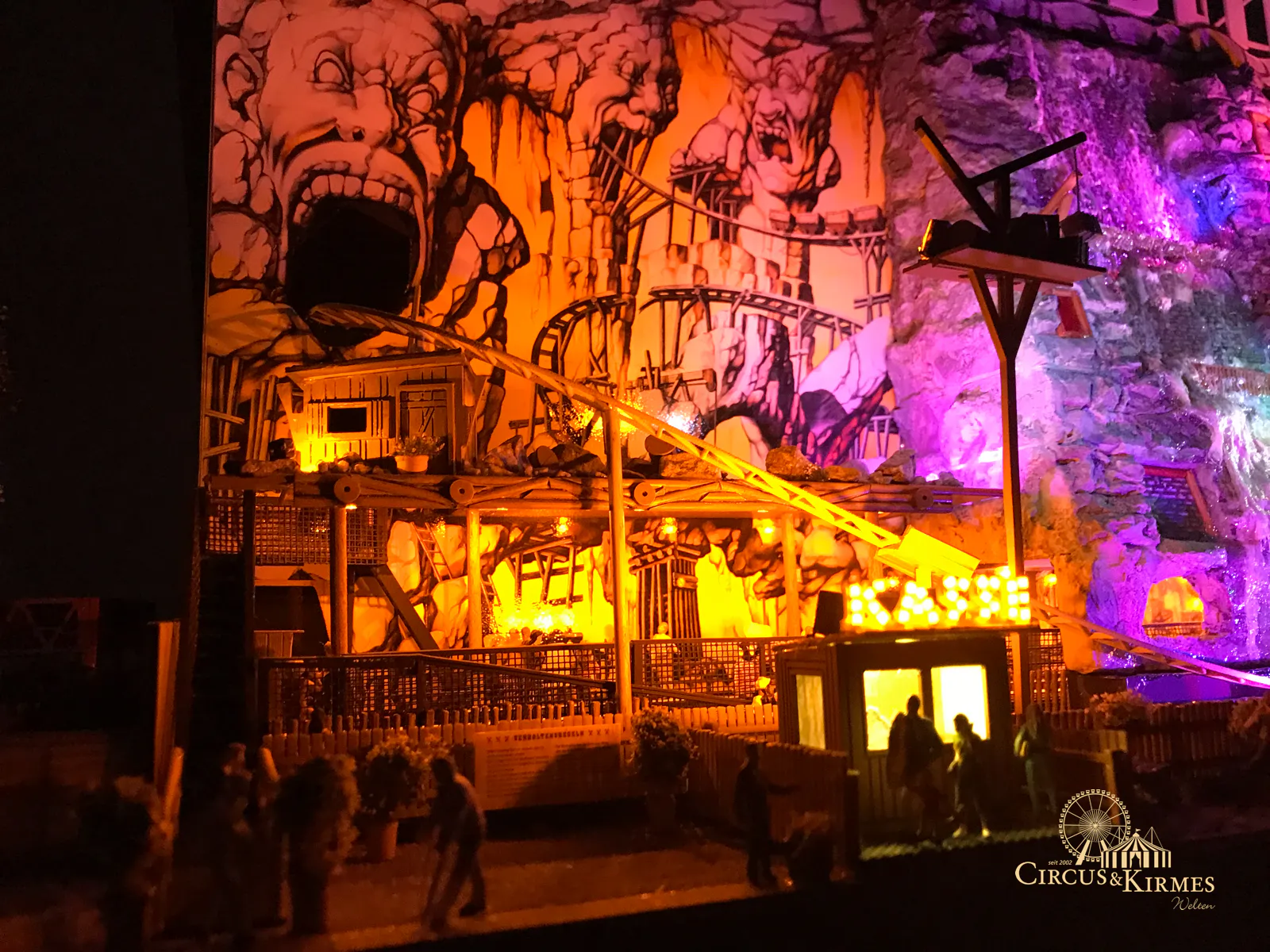 Nach zahlreichen Arbeitsstunden entstand dieses detailgetreue Modell des bekannten Fahrgeschäfts Höllenblitz im Maßstab 1:87. Es handelt sich um einen kompletten Eigenbau – von der Grundkonstruktion über die Antriebs- und Beleuchtungstechnik bis hin zur aufwendigen Gestaltung der Fassade und Szenerie.