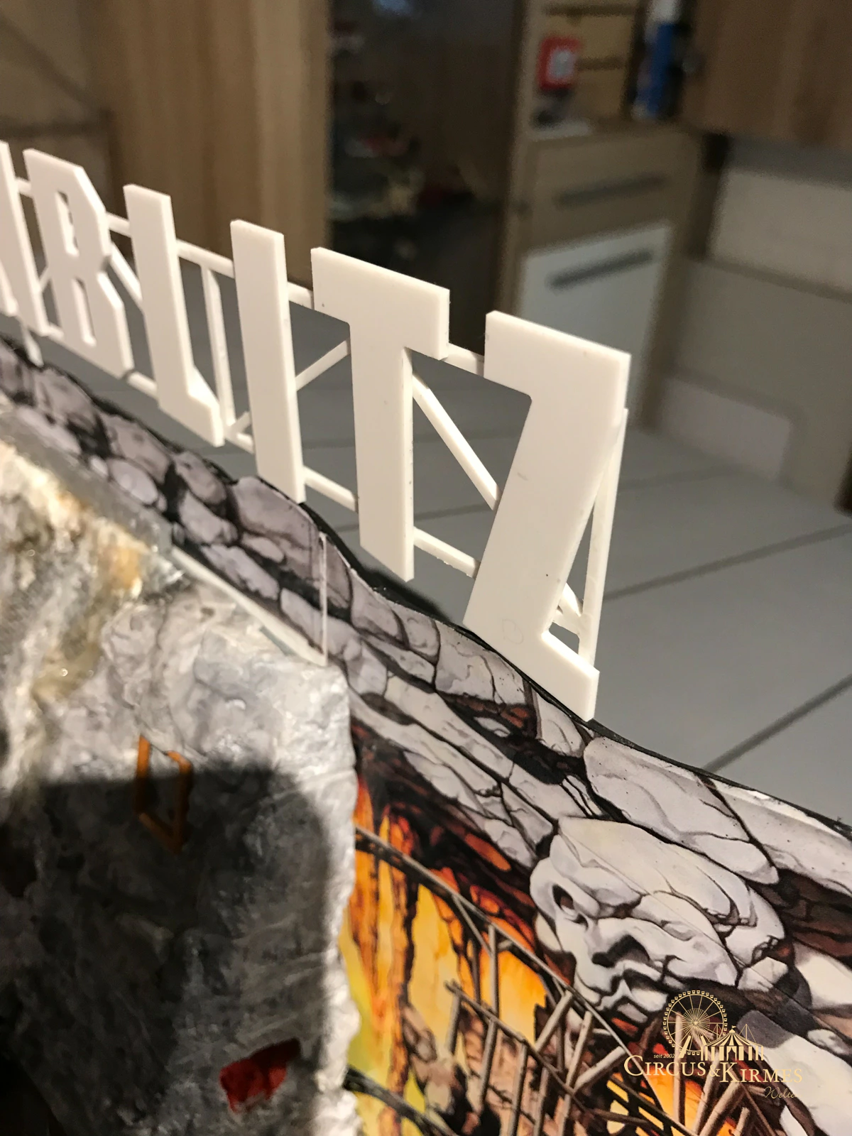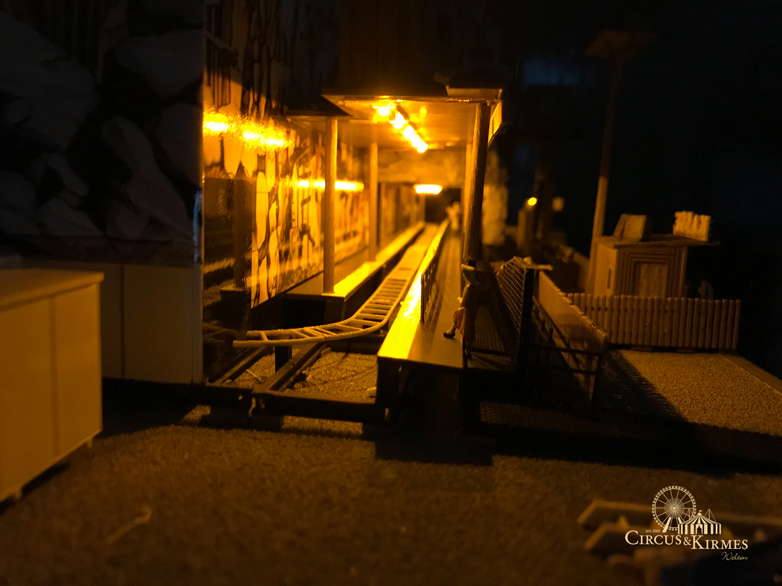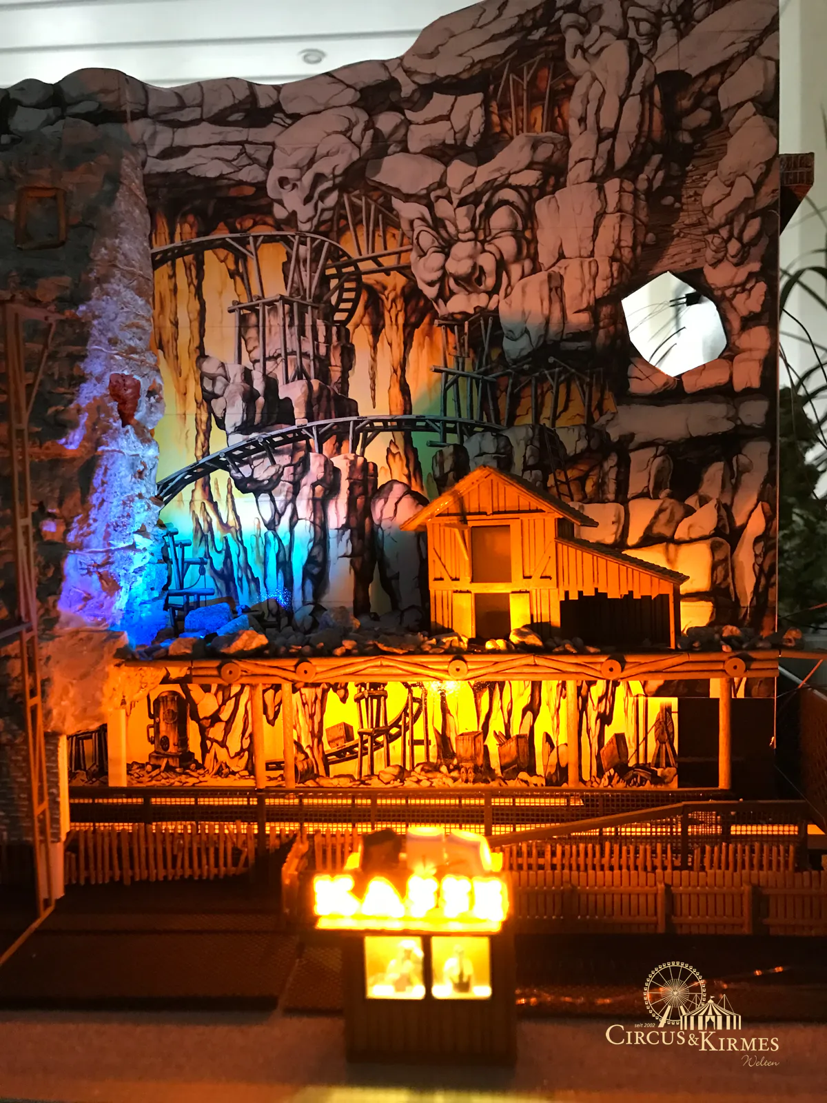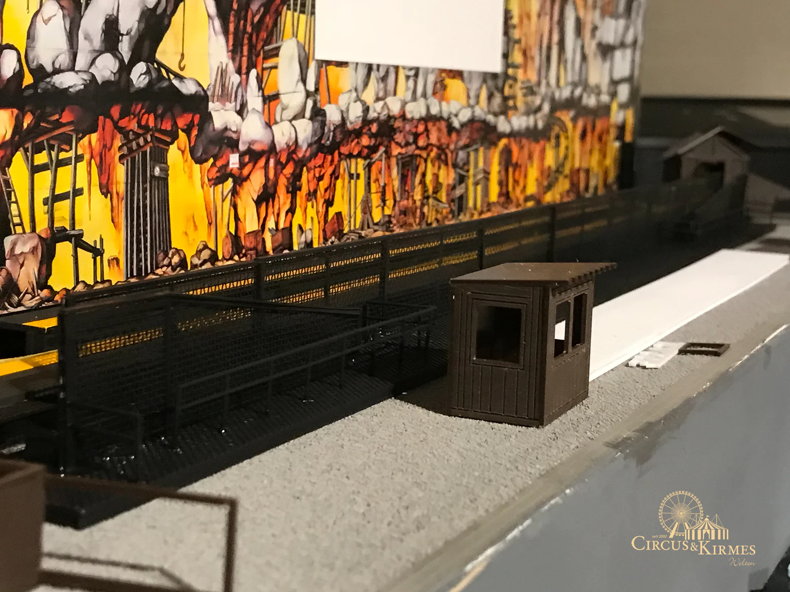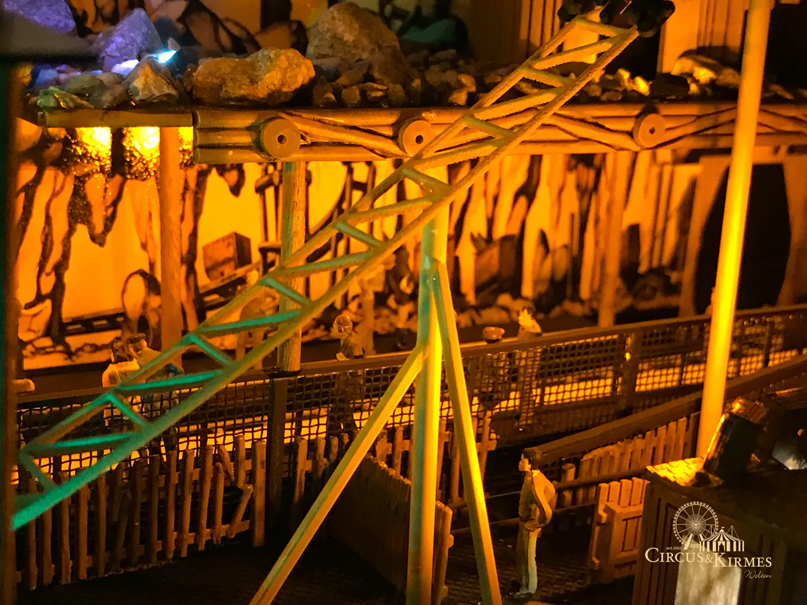 Nach zahlreichen Arbeitsstunden entstand dieses detailgetreue Modell des bekannten Fahrgeschäfts Höllenblitz im Maßstab 1:87. Es handelt sich um einen kompletten Eigenbau – von der Grundkonstruktion über die Antriebs- und Beleuchtungstechnik bis hin zur aufwendigen Gestaltung der Fassade und Szenerie.