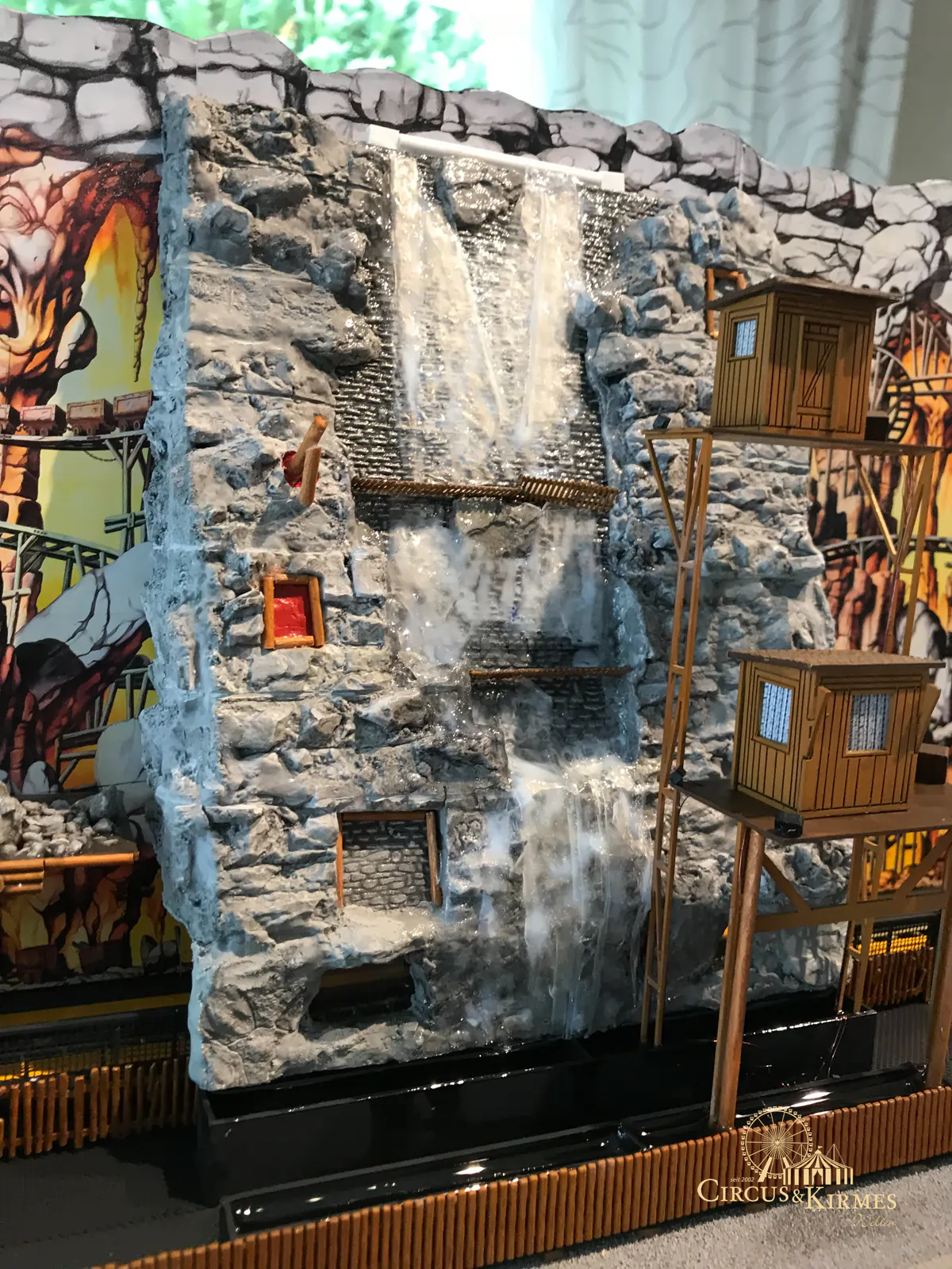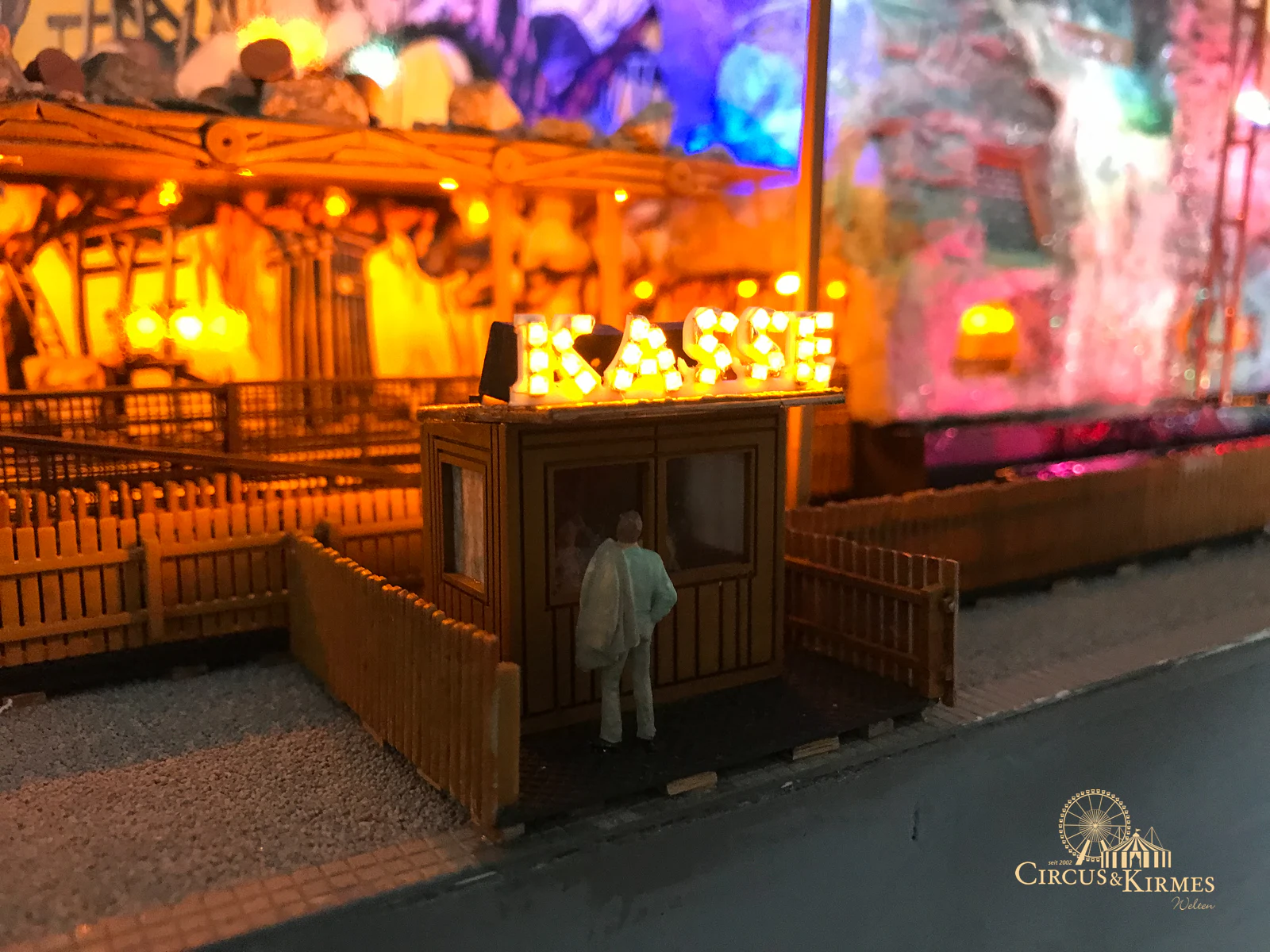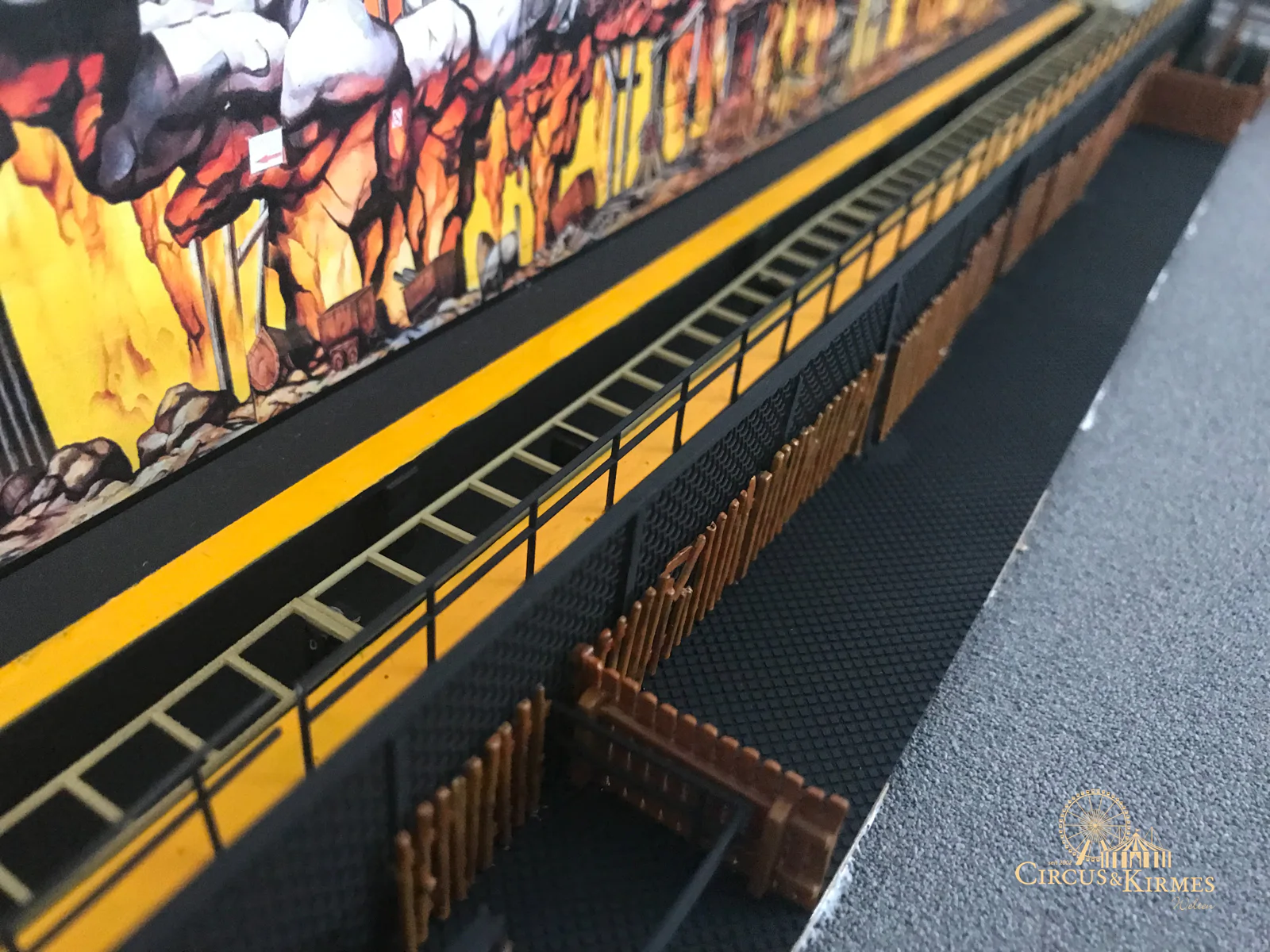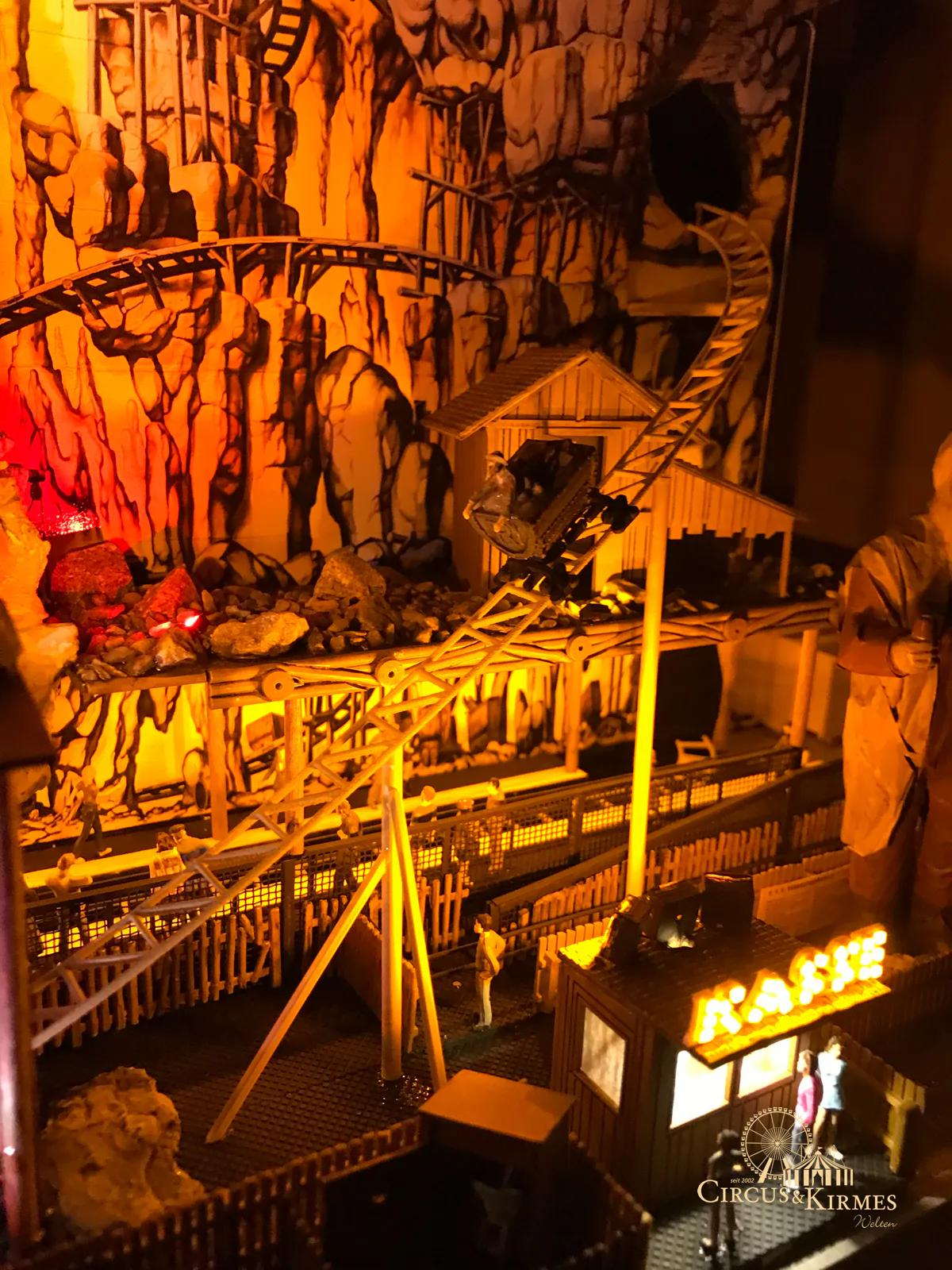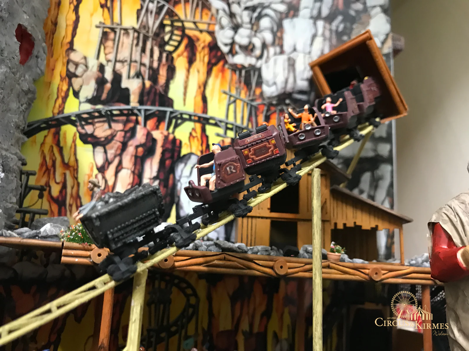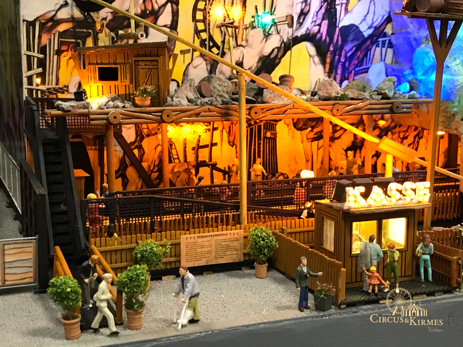 Nach zahlreichen Arbeitsstunden entstand dieses detailgetreue Modell des bekannten Fahrgeschäfts Höllenblitz im Maßstab 1:87. Es handelt sich um einen kompletten Eigenbau – von der Grundkonstruktion über die Antriebs- und Beleuchtungstechnik bis hin zur aufwendigen Gestaltung der Fassade und Szenerie.
