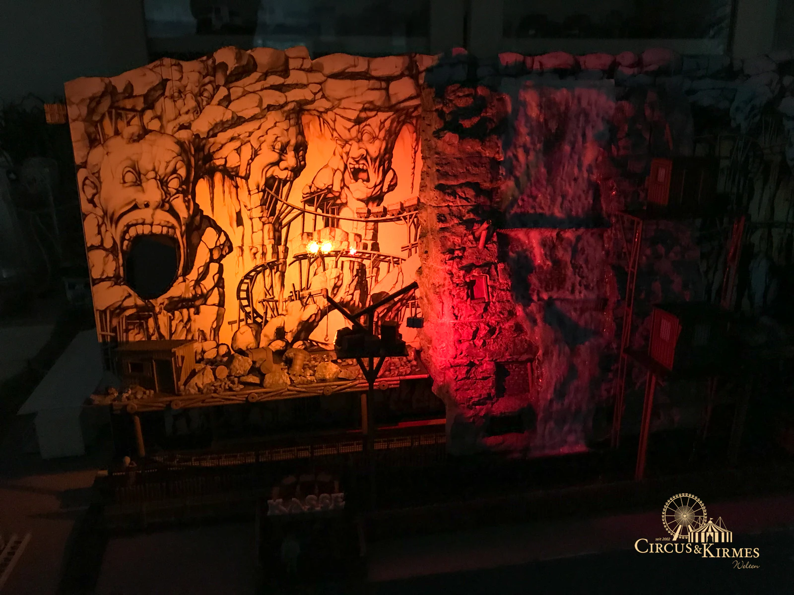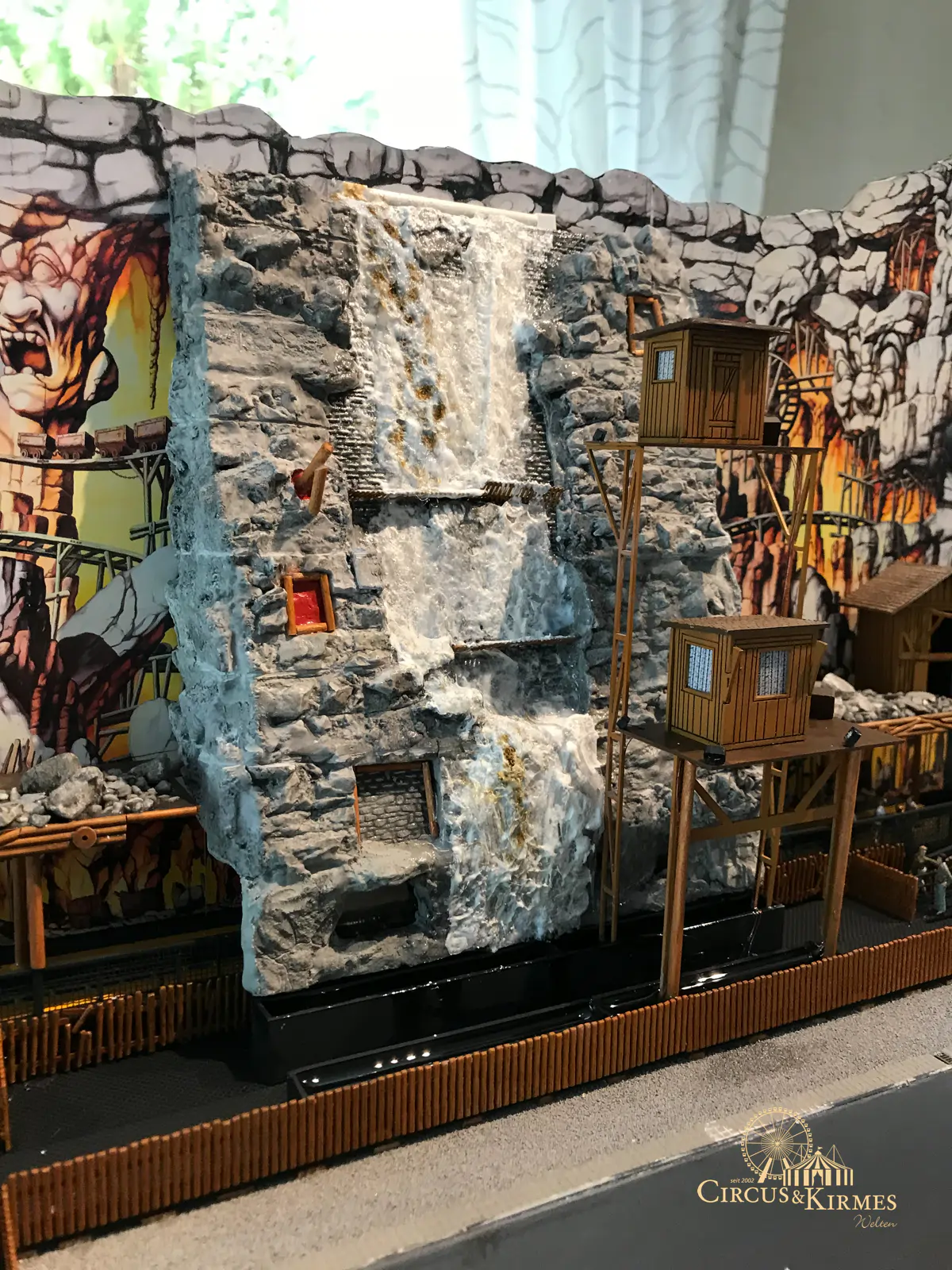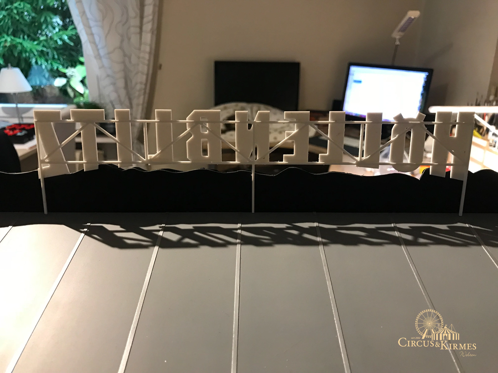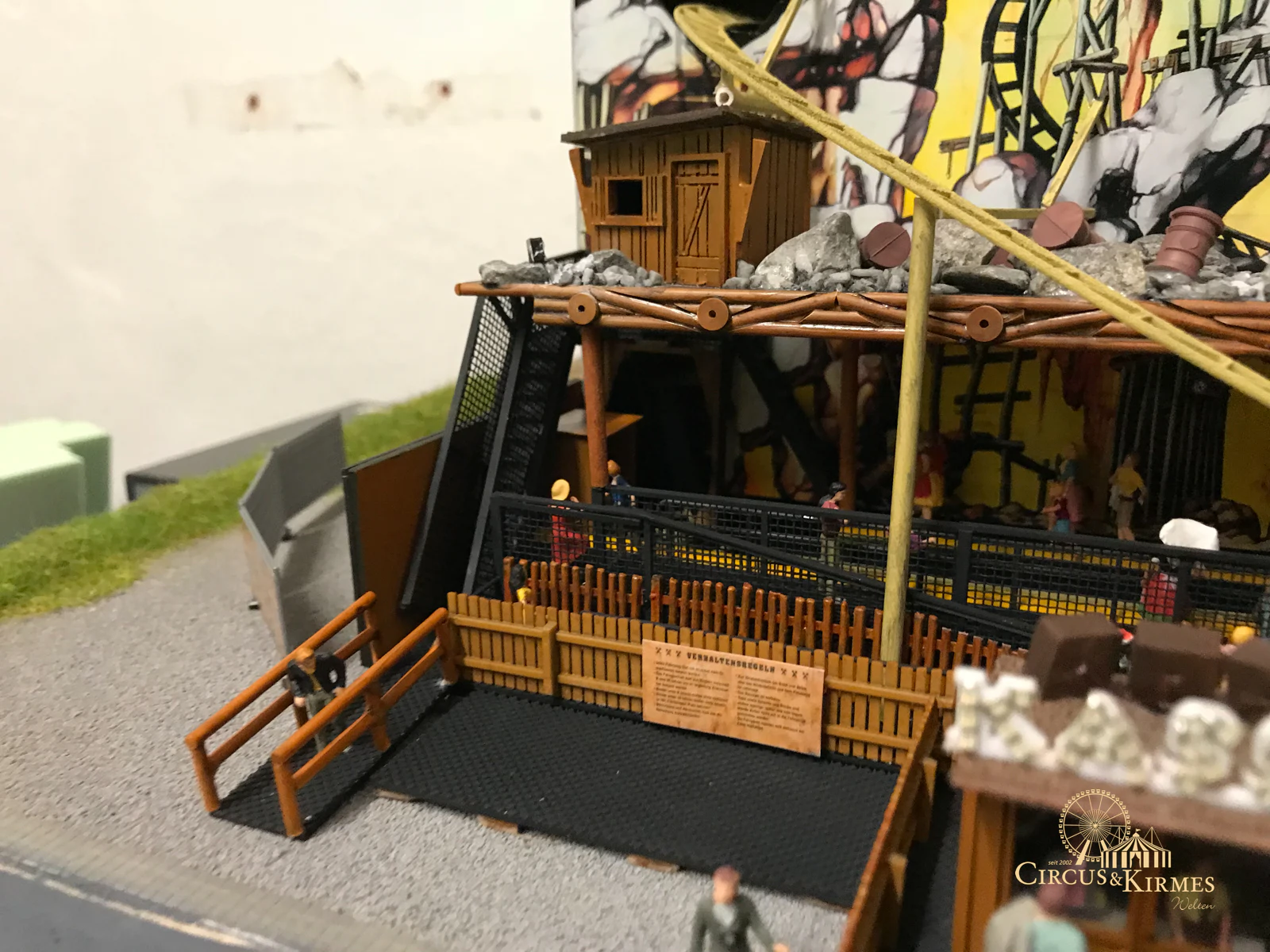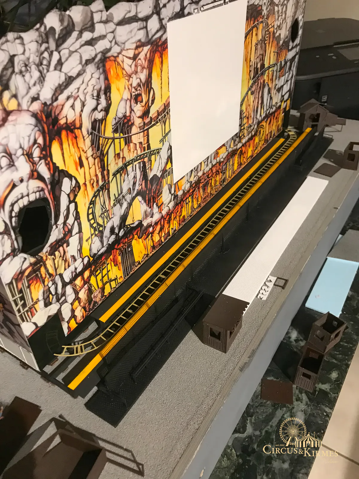Nach zahlreichen Arbeitsstunden entstand dieses detailgetreue Modell des bekannten Fahrgeschäfts Höllenblitz im Maßstab 1:87. Es handelt sich um einen kompletten Eigenbau – von der Grundkonstruktion über die Antriebs- und Beleuchtungstechnik bis hin zur aufwendigen Gestaltung der Fassade und Szenerie.