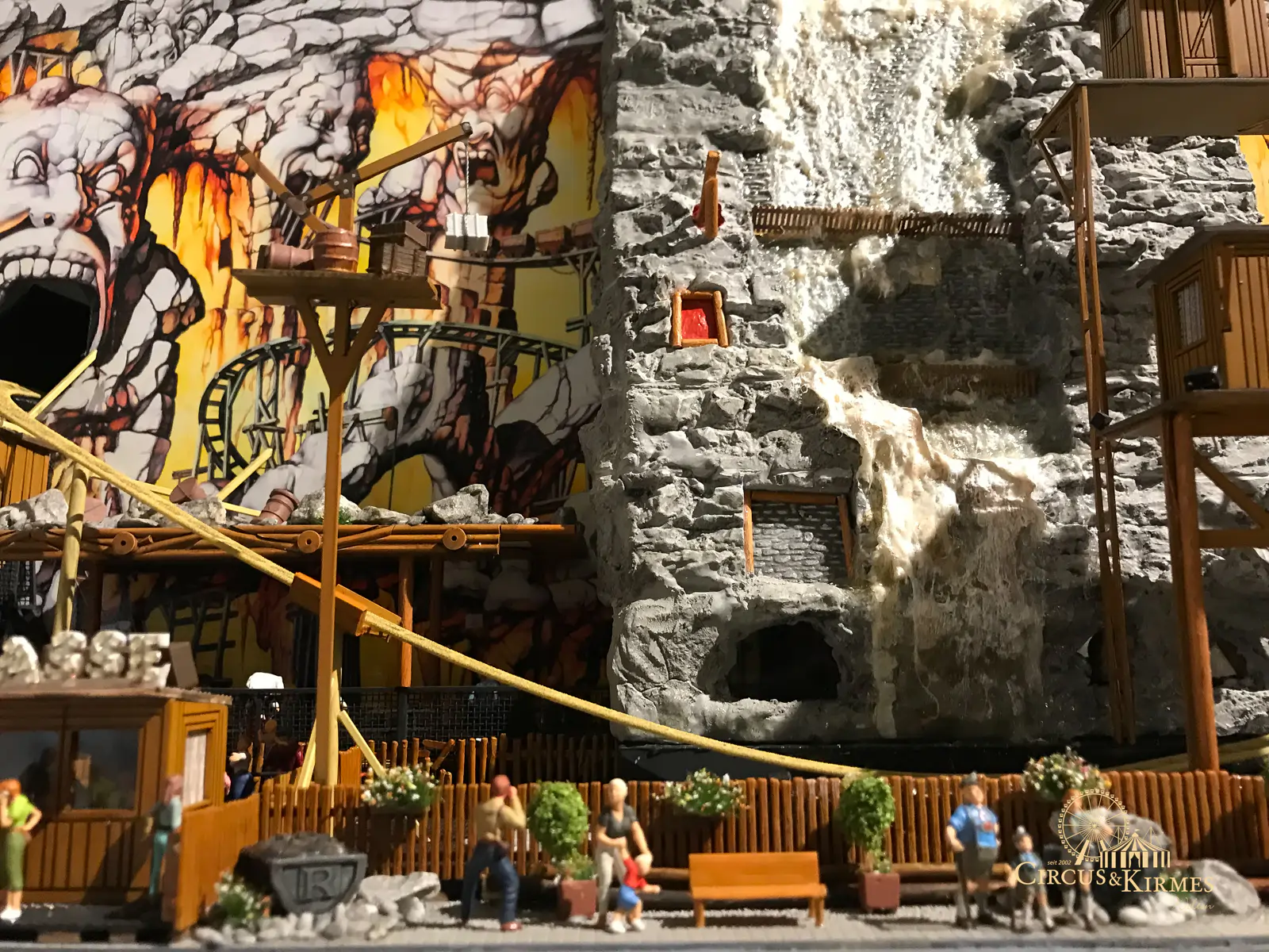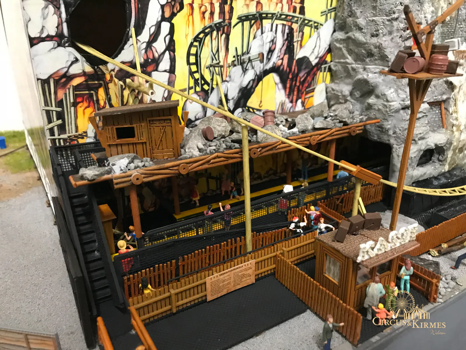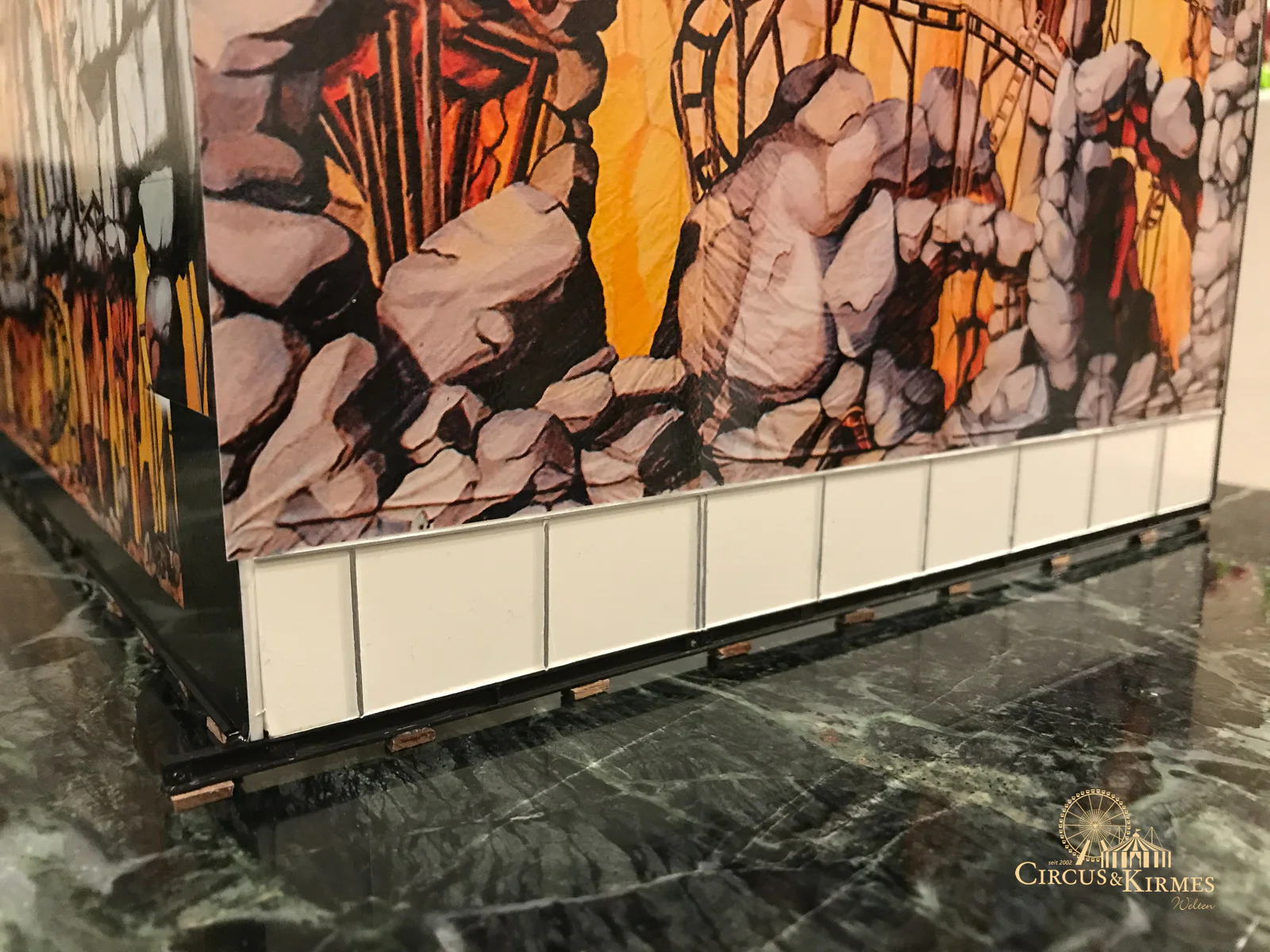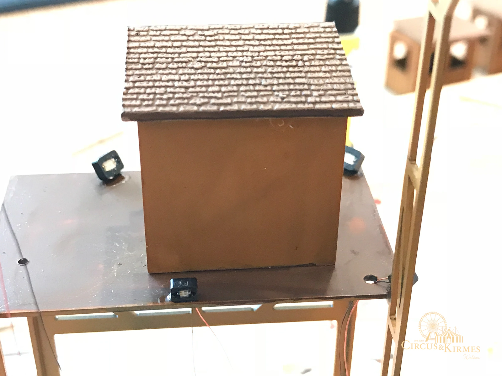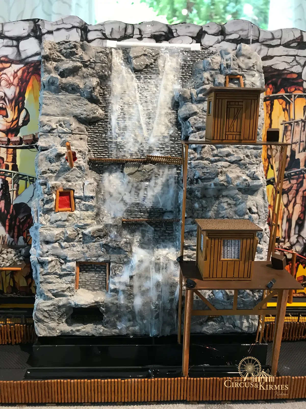Nach zahlreichen Arbeitsstunden entstand dieses detailgetreue Modell des bekannten Fahrgeschäfts Höllenblitz im Maßstab 1:87. Es handelt sich um einen kompletten Eigenbau – von der Grundkonstruktion über die Antriebs- und Beleuchtungstechnik bis hin zur aufwendigen Gestaltung der Fassade und Szenerie.