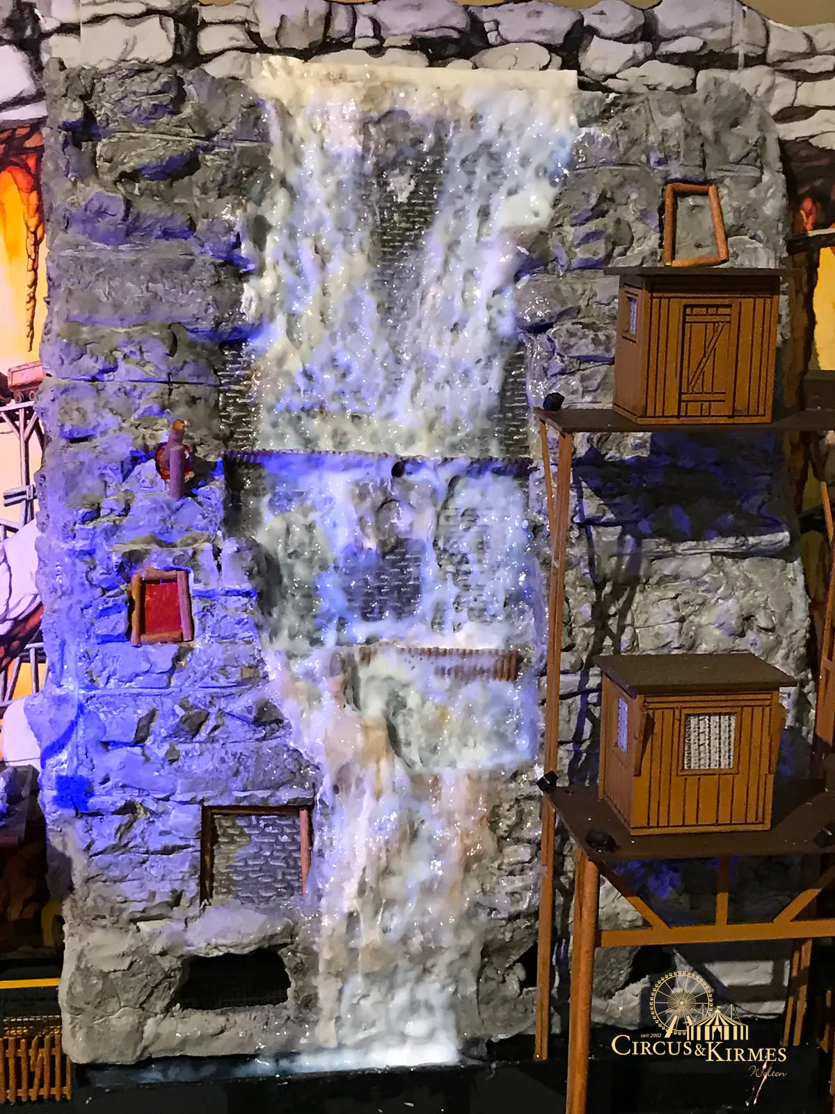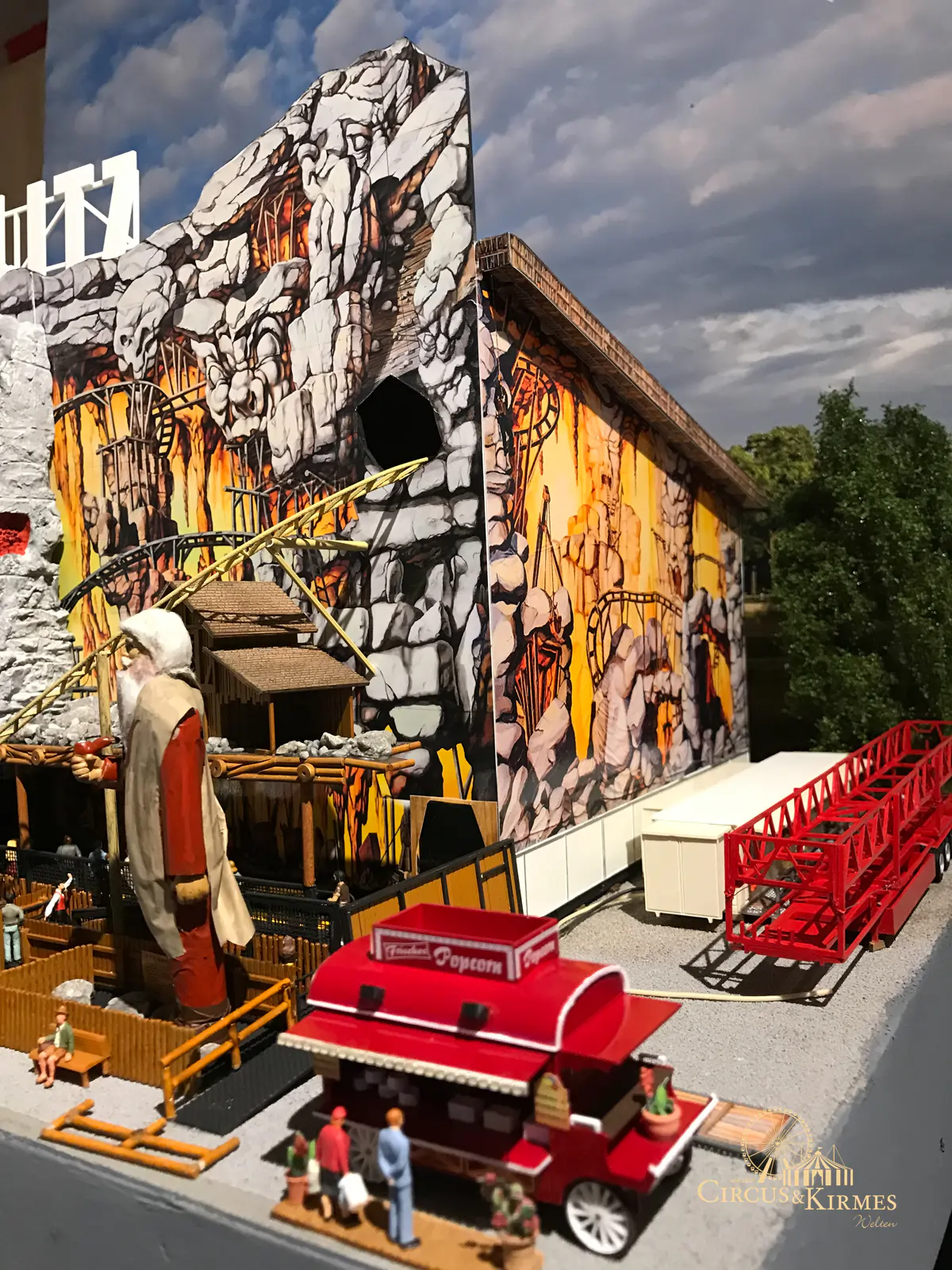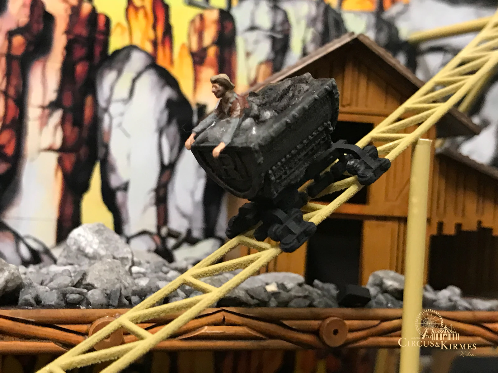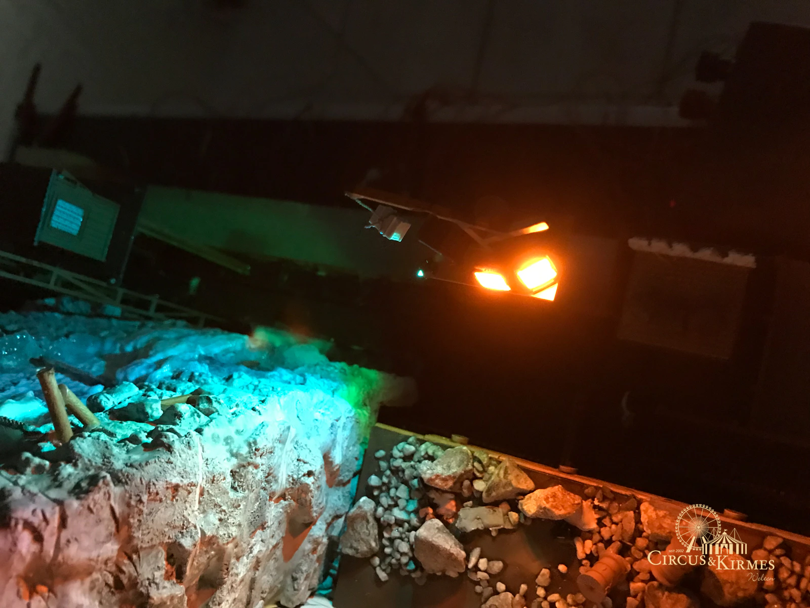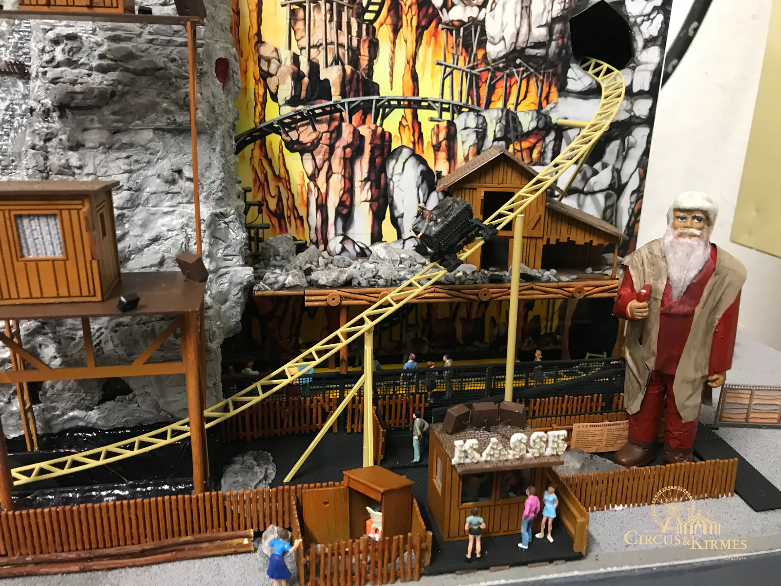 Nach zahlreichen Arbeitsstunden entstand dieses detailgetreue Modell des bekannten Fahrgeschäfts Höllenblitz im Maßstab 1:87. Es handelt sich um einen kompletten Eigenbau – von der Grundkonstruktion über die Antriebs- und Beleuchtungstechnik bis hin zur aufwendigen Gestaltung der Fassade und Szenerie.