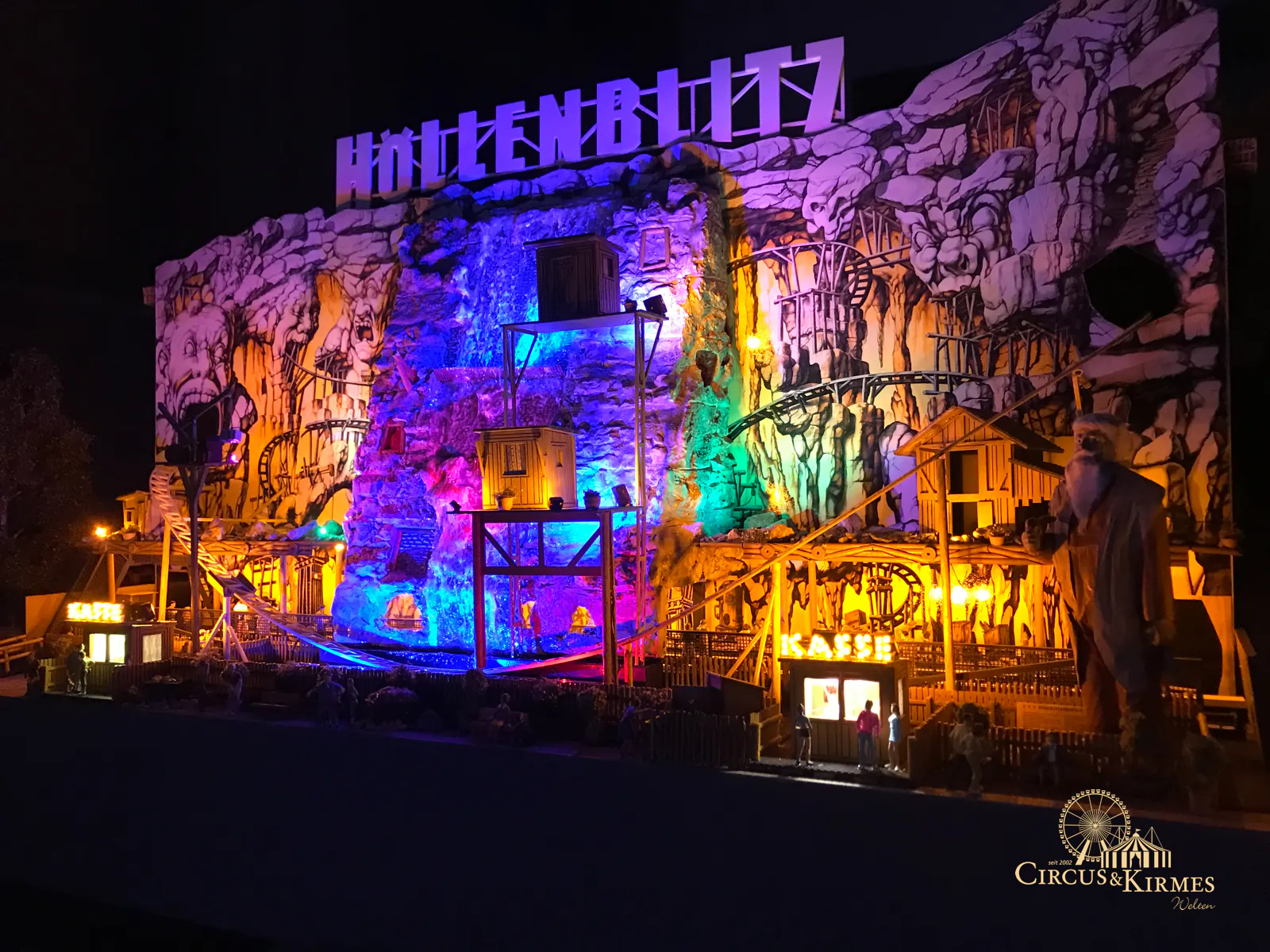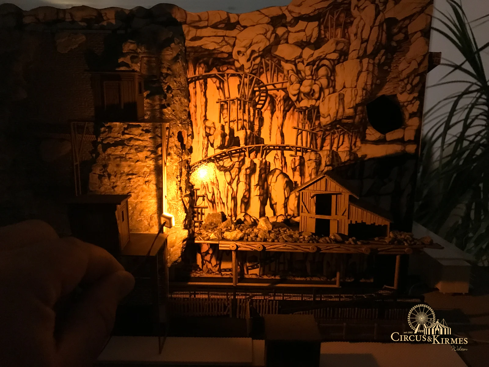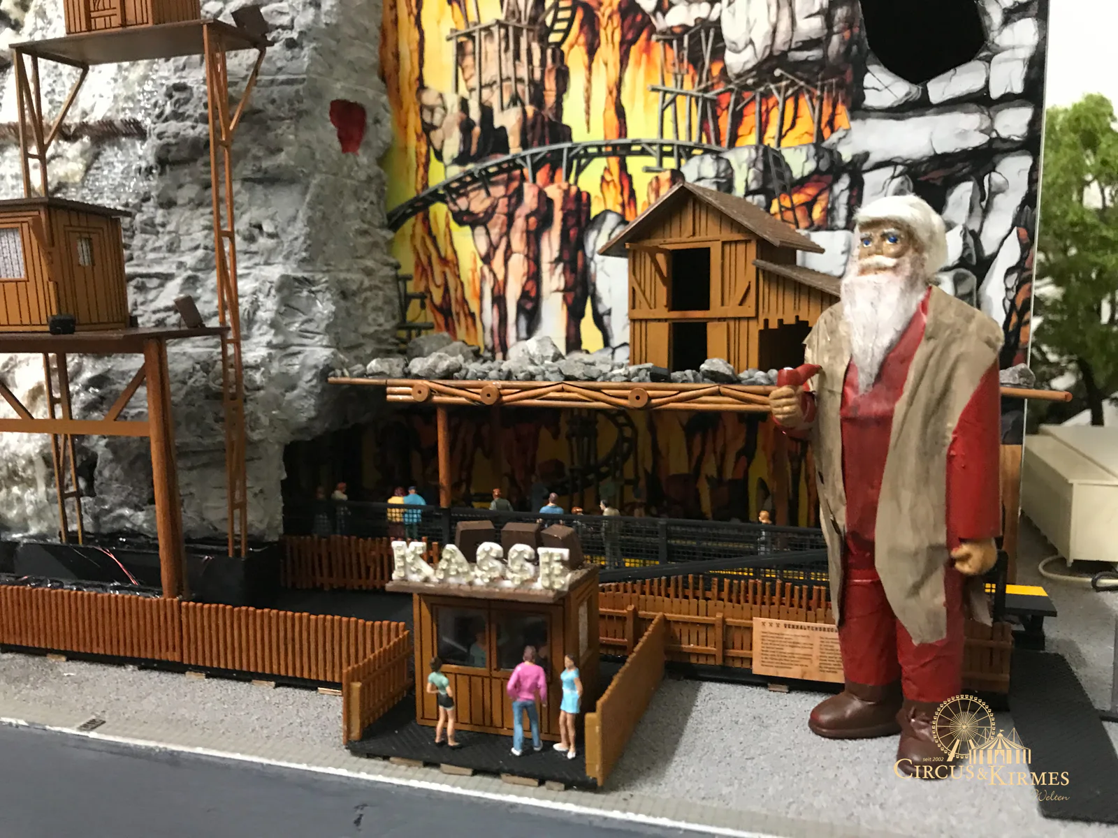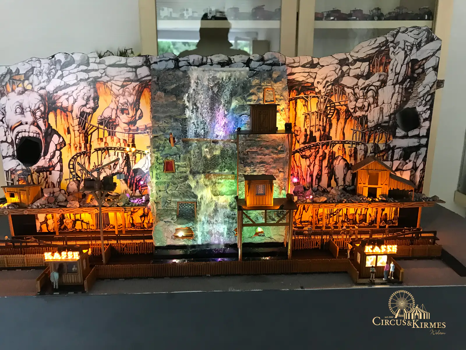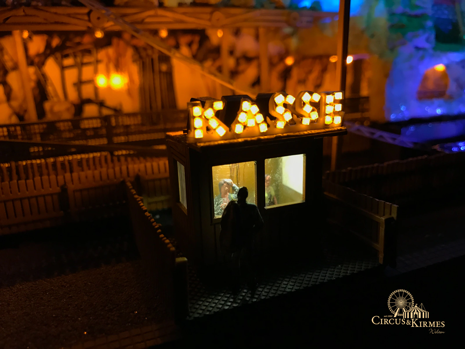 Nach zahlreichen Arbeitsstunden entstand dieses detailgetreue Modell des bekannten Fahrgeschäfts Höllenblitz im Maßstab 1:87. Es handelt sich um einen kompletten Eigenbau – von der Grundkonstruktion über die Antriebs- und Beleuchtungstechnik bis hin zur aufwendigen Gestaltung der Fassade und Szenerie.