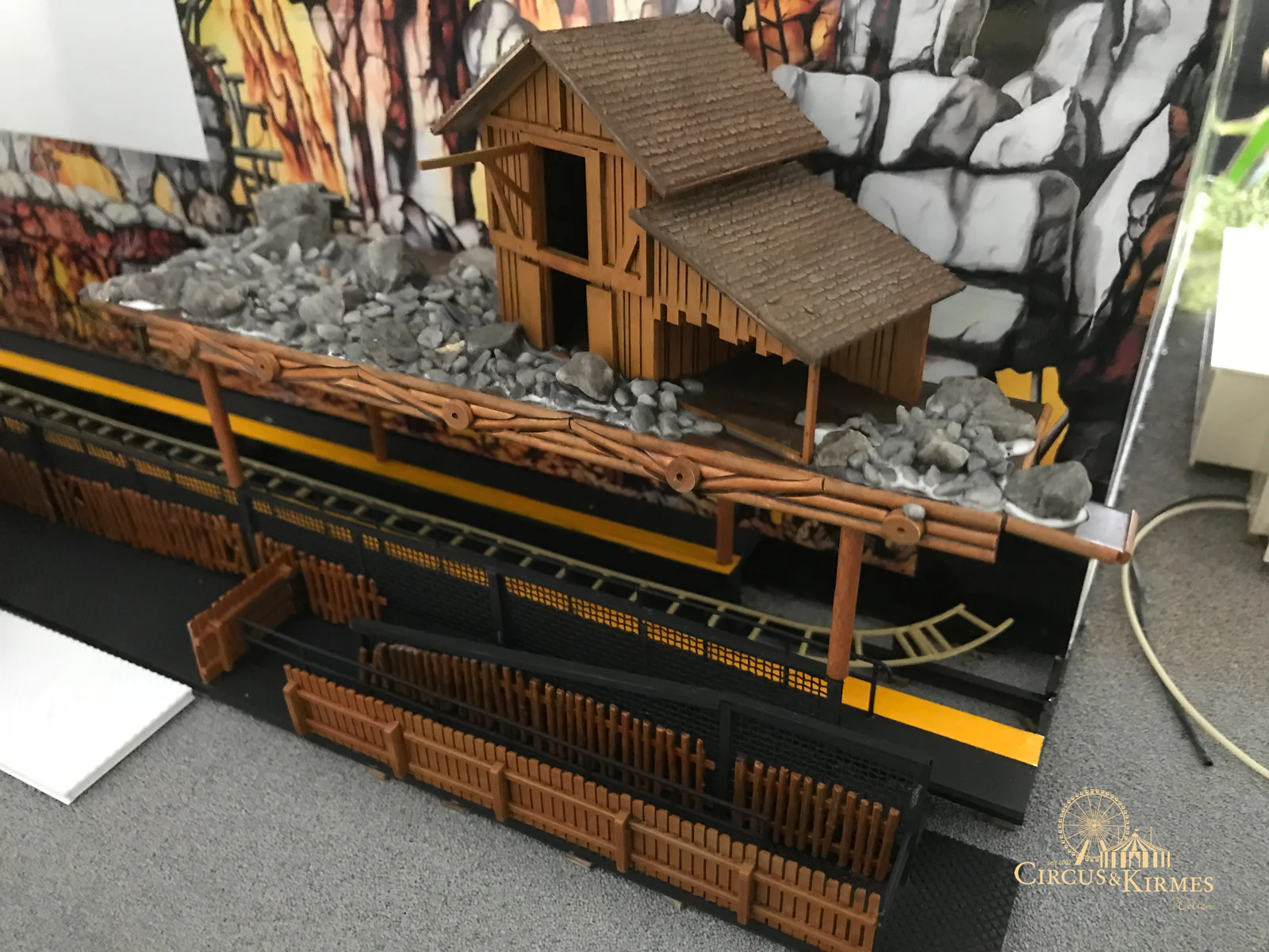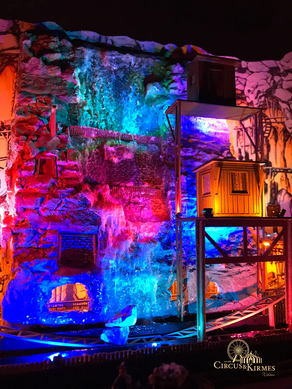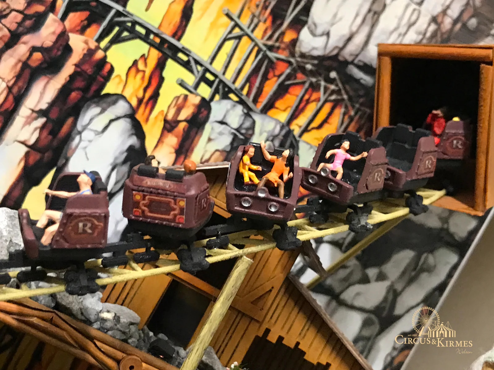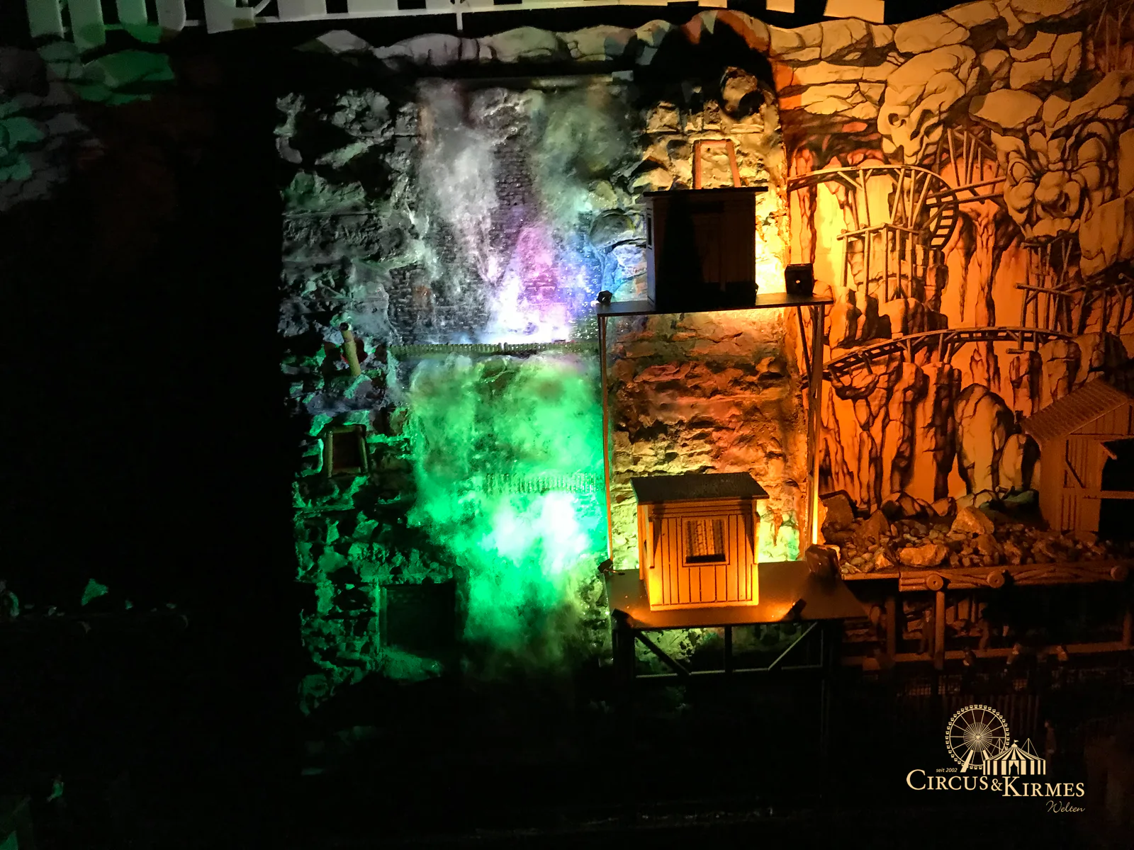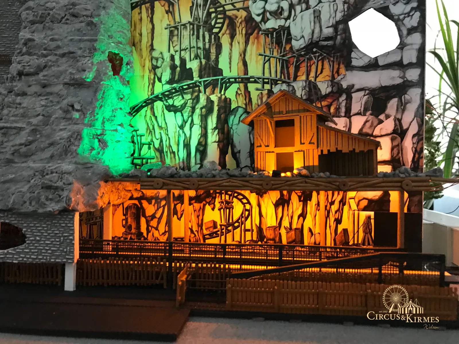 Nach zahlreichen Arbeitsstunden entstand dieses detailgetreue Modell des bekannten Fahrgeschäfts Höllenblitz im Maßstab 1:87. Es handelt sich um einen kompletten Eigenbau – von der Grundkonstruktion über die Antriebs- und Beleuchtungstechnik bis hin zur aufwendigen Gestaltung der Fassade und Szenerie.