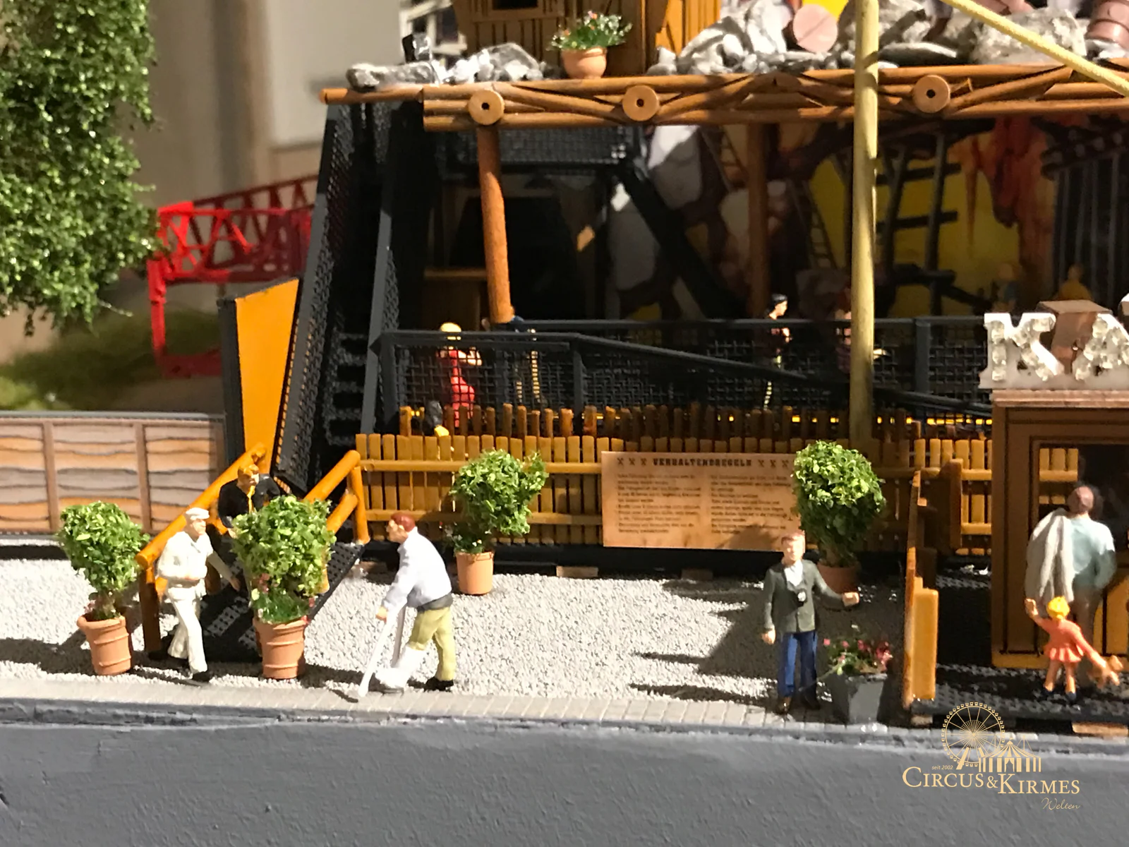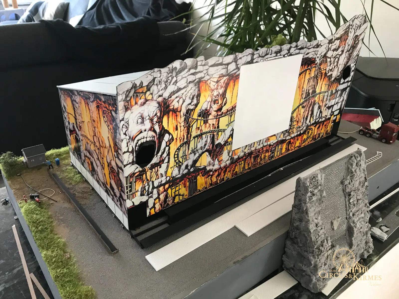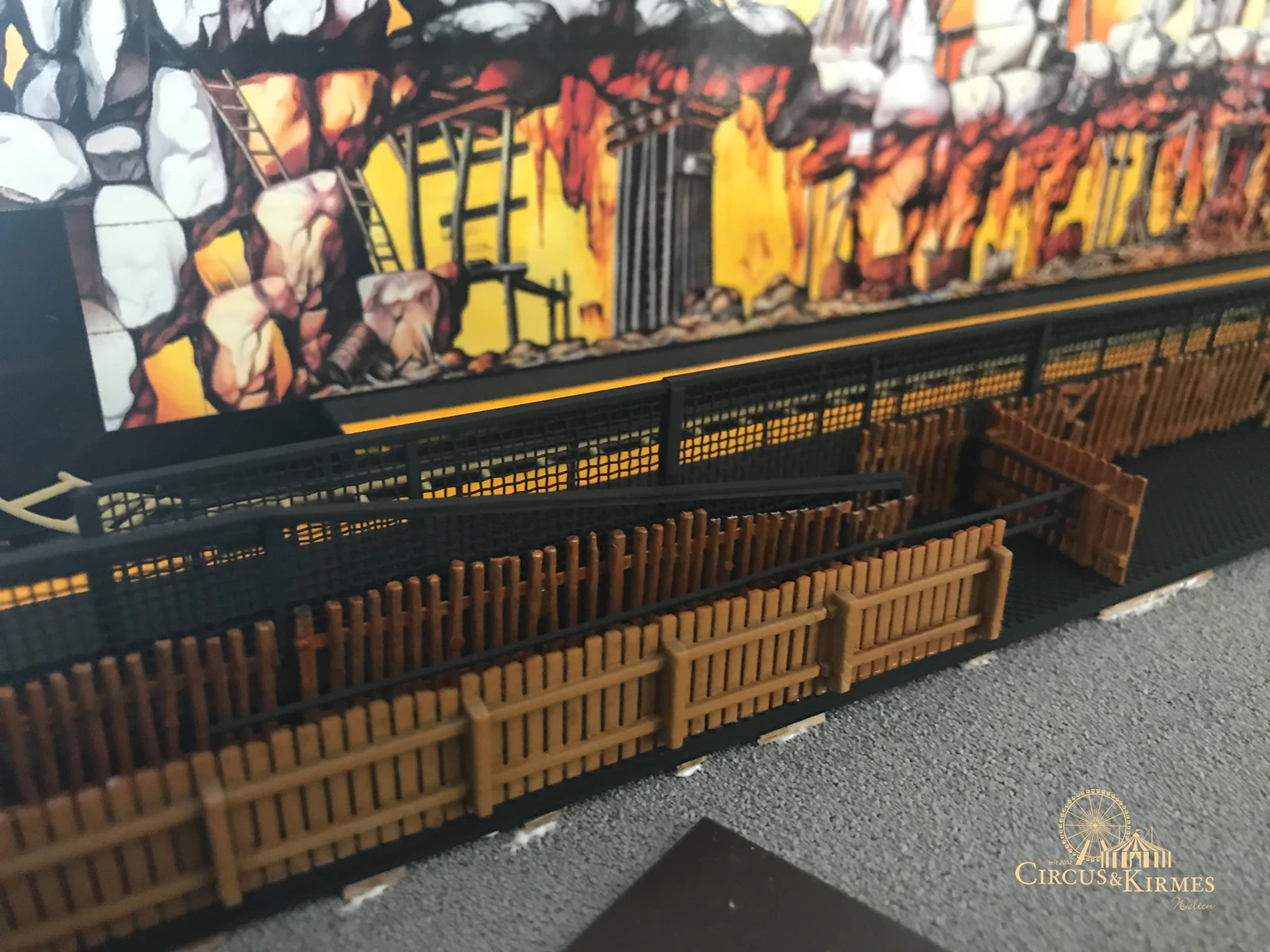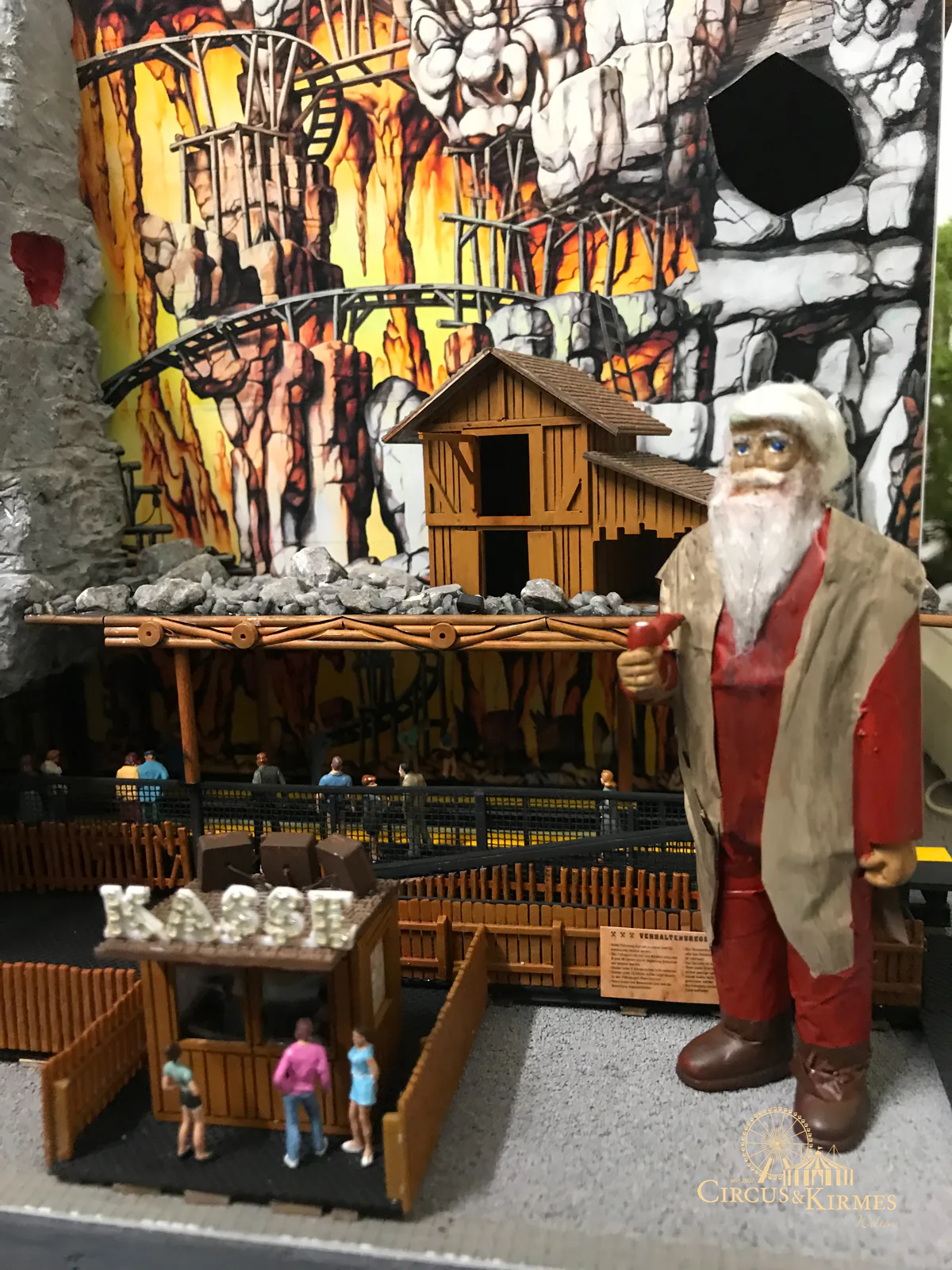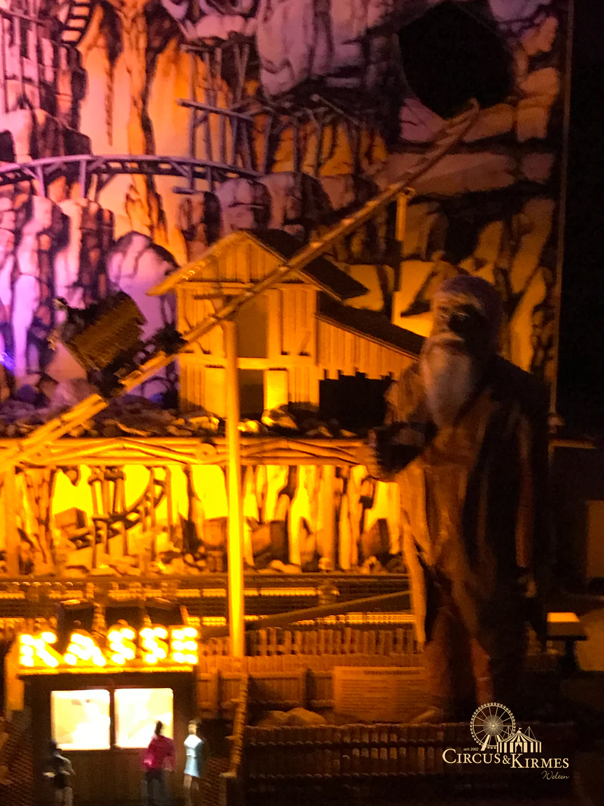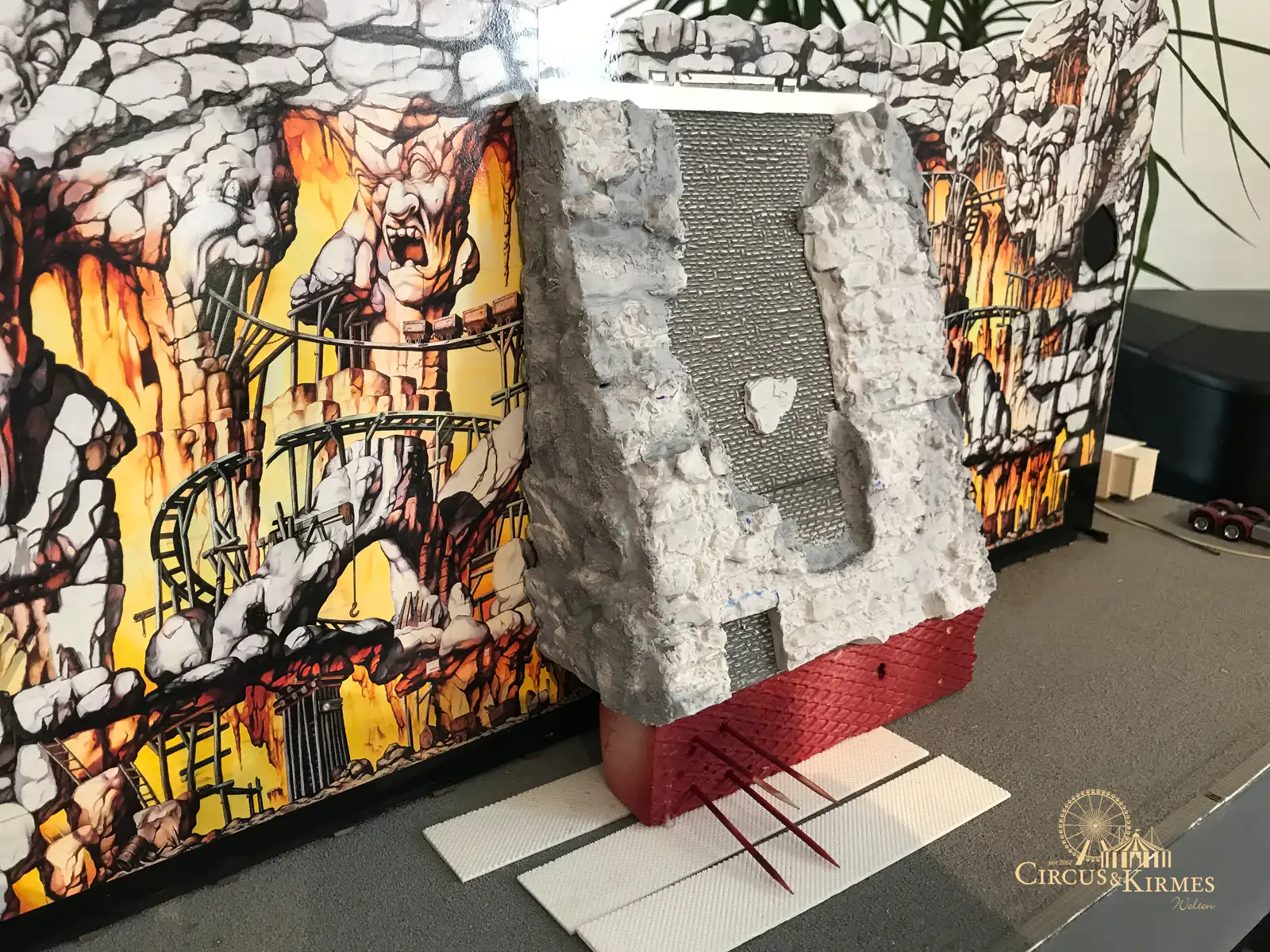 Nach zahlreichen Arbeitsstunden entstand dieses detailgetreue Modell des bekannten Fahrgeschäfts Höllenblitz im Maßstab 1:87. Es handelt sich um einen kompletten Eigenbau – von der Grundkonstruktion über die Antriebs- und Beleuchtungstechnik bis hin zur aufwendigen Gestaltung der Fassade und Szenerie.