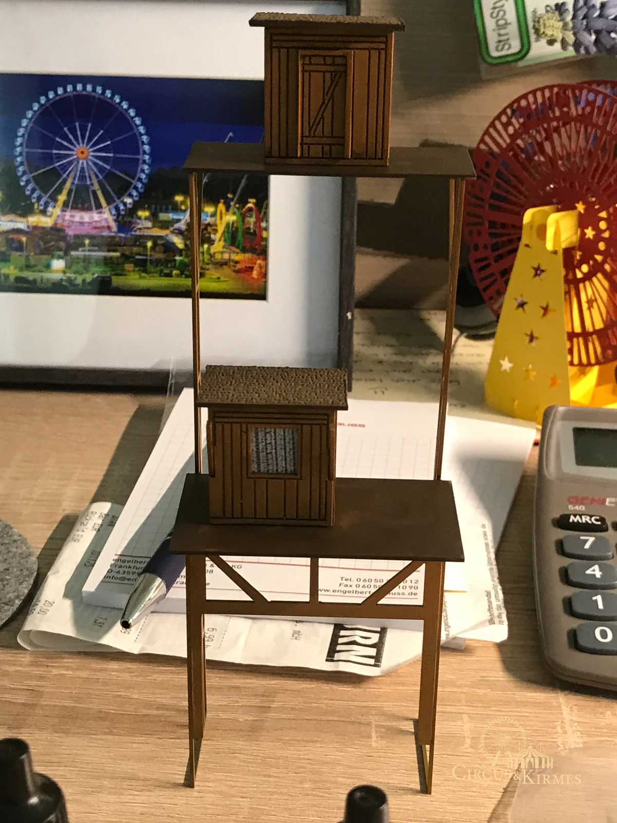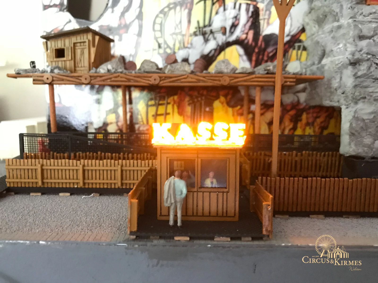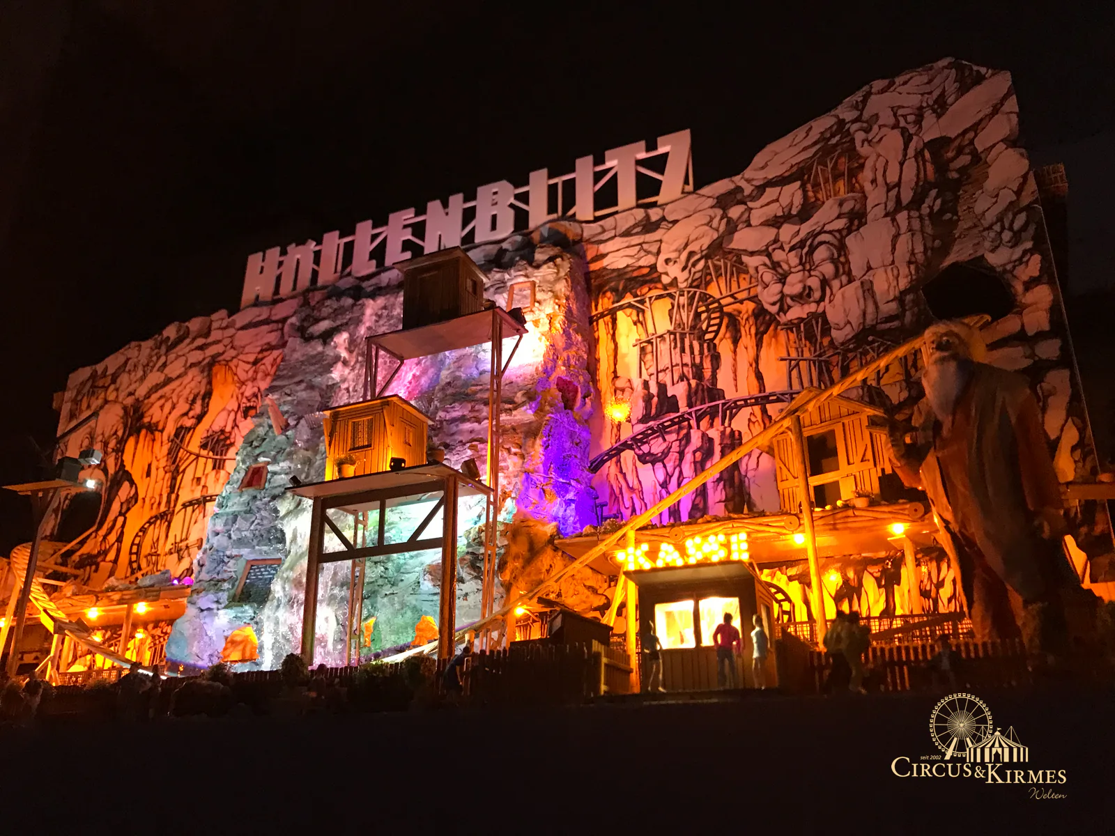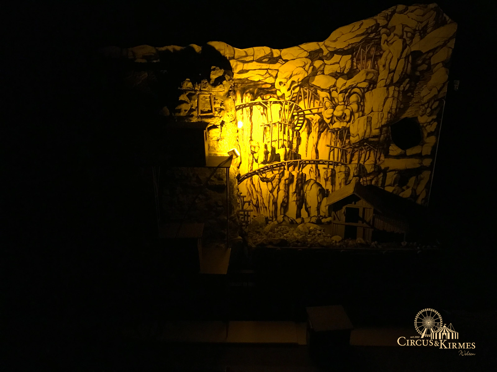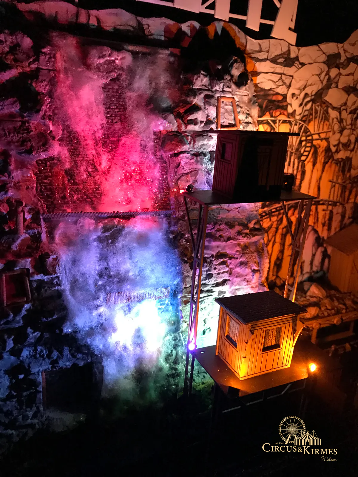 Nach zahlreichen Arbeitsstunden entstand dieses detailgetreue Modell des bekannten Fahrgeschäfts Höllenblitz im Maßstab 1:87. Es handelt sich um einen kompletten Eigenbau – von der Grundkonstruktion über die Antriebs- und Beleuchtungstechnik bis hin zur aufwendigen Gestaltung der Fassade und Szenerie.