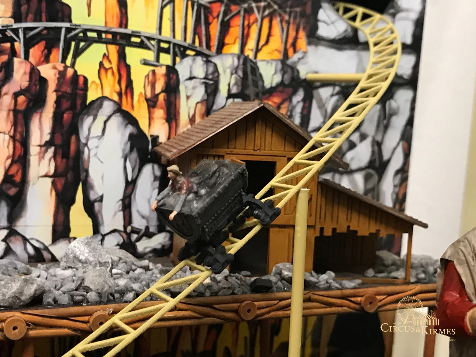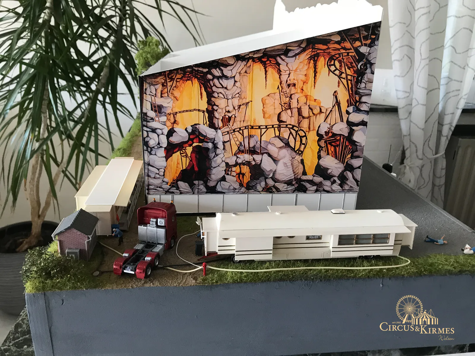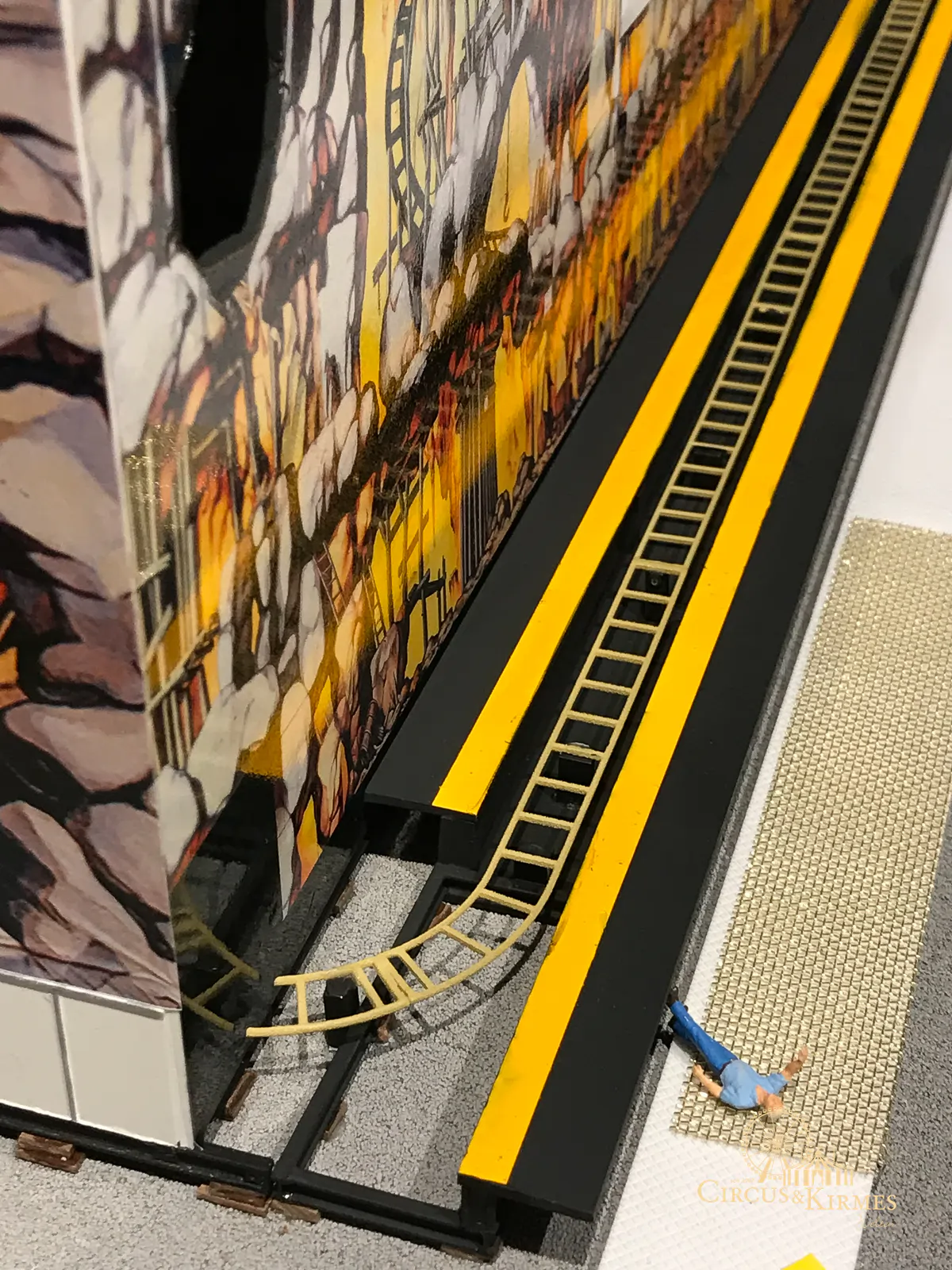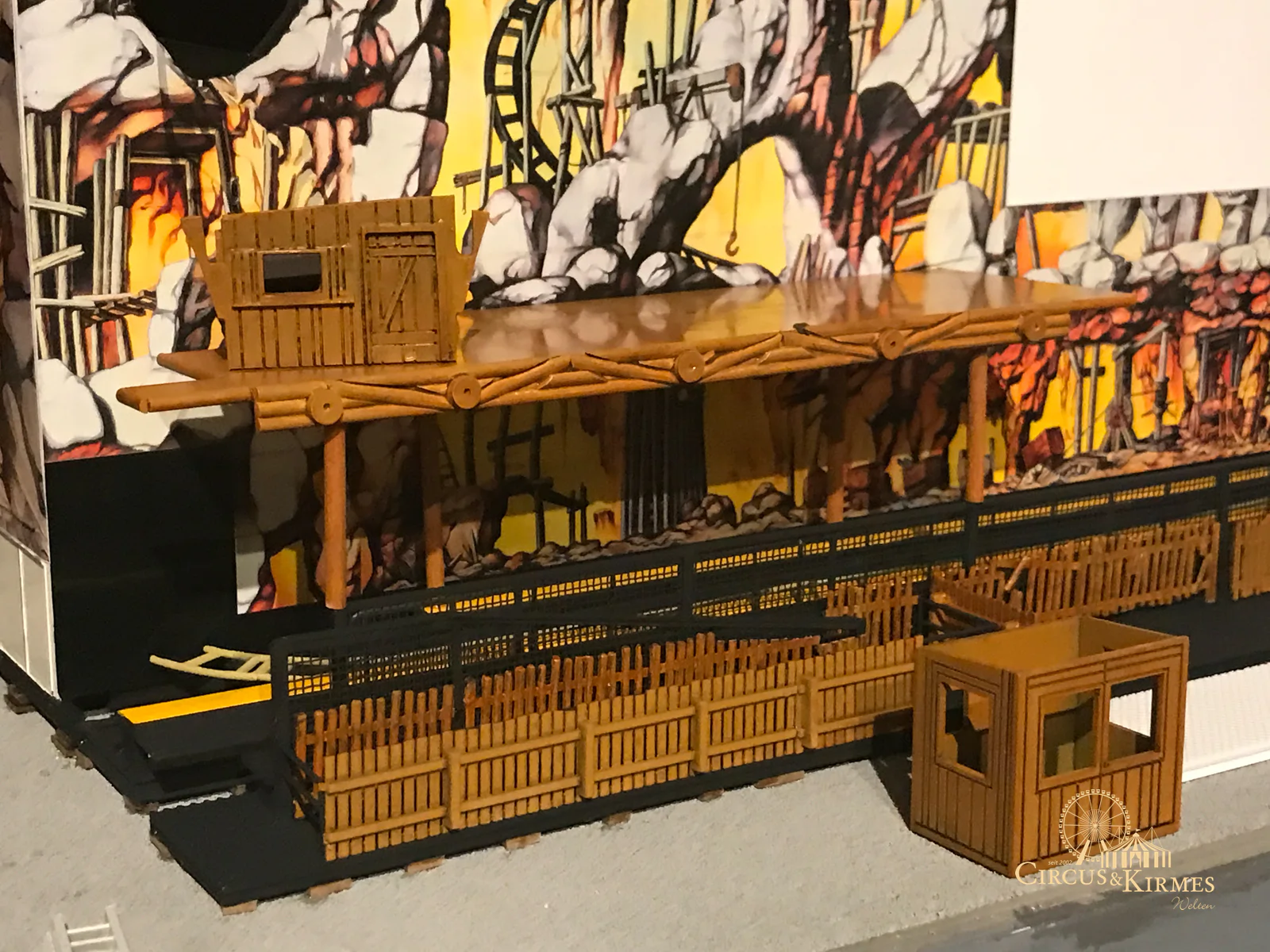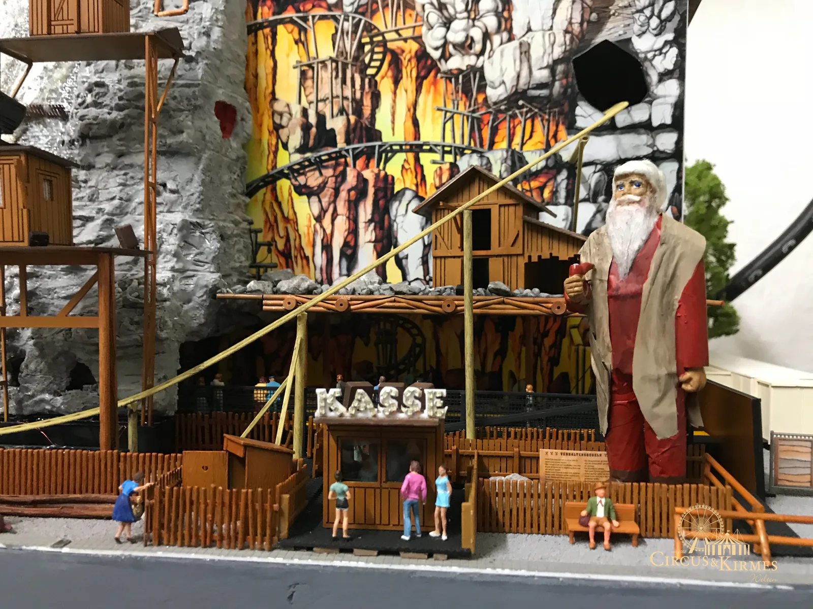Nach zahlreichen Arbeitsstunden entstand dieses detailgetreue Modell des bekannten Fahrgeschäfts Höllenblitz im Maßstab 1:87. Es handelt sich um einen kompletten Eigenbau – von der Grundkonstruktion über die Antriebs- und Beleuchtungstechnik bis hin zur aufwendigen Gestaltung der Fassade und Szenerie.