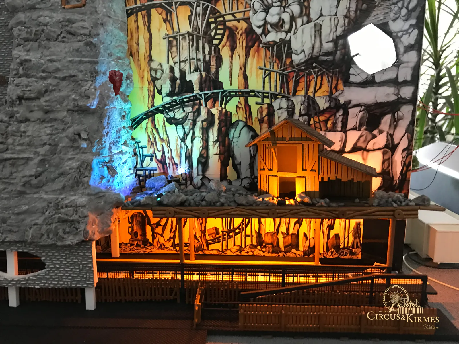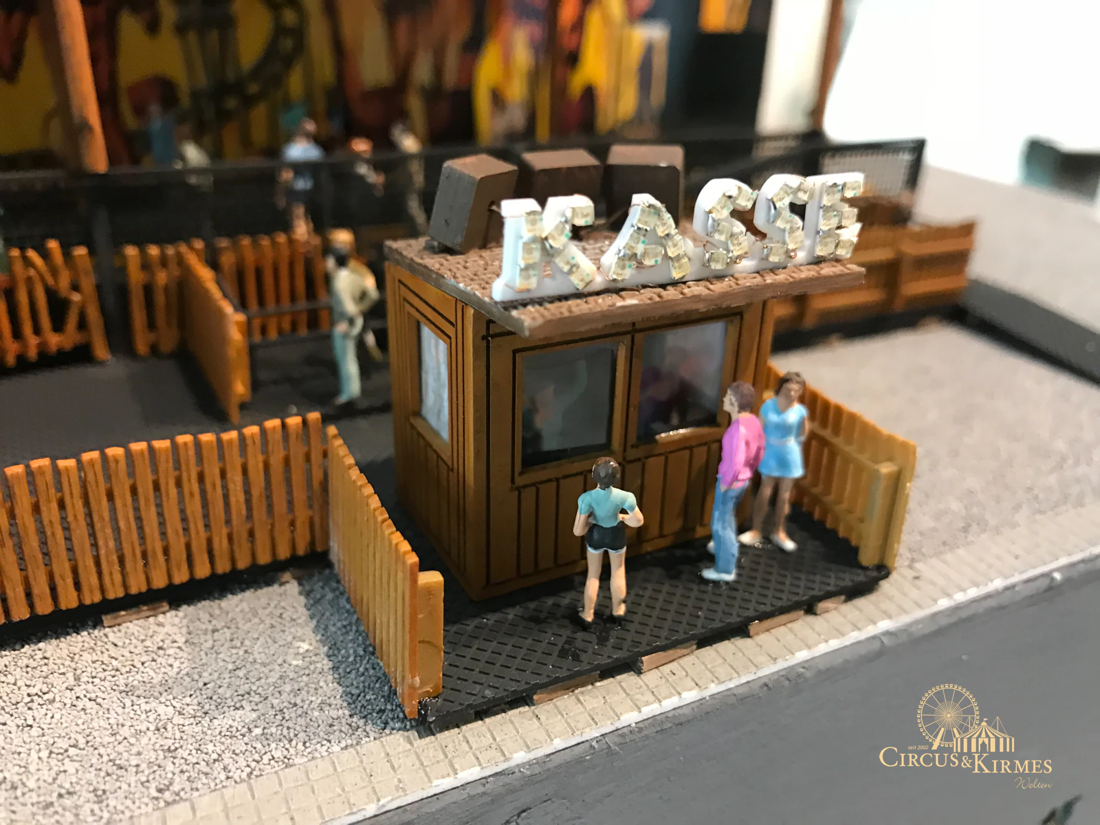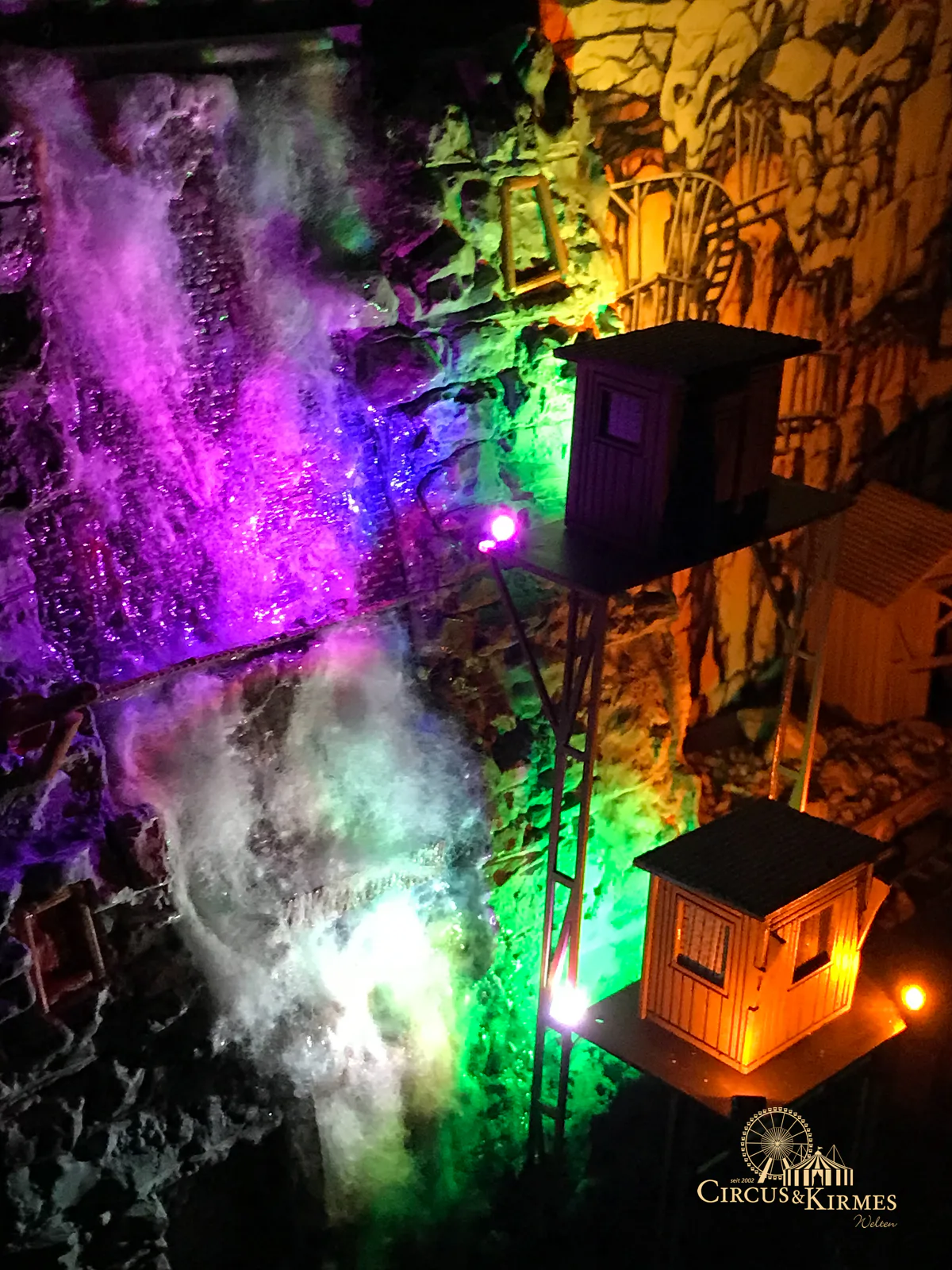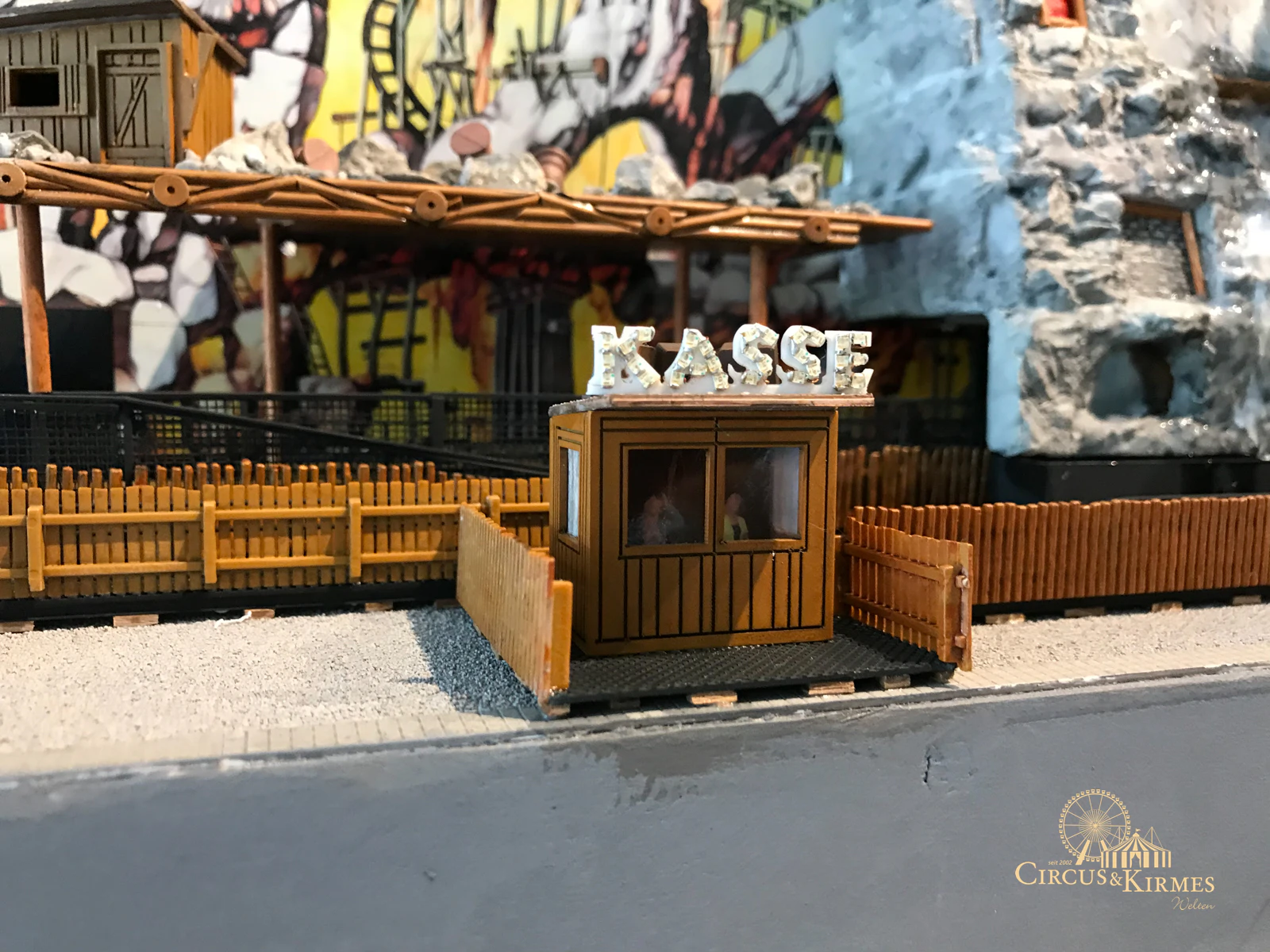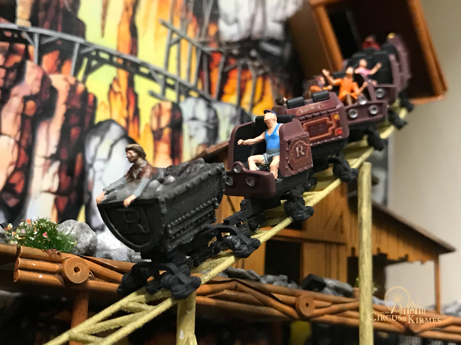 Nach zahlreichen Arbeitsstunden entstand dieses detailgetreue Modell des bekannten Fahrgeschäfts Höllenblitz im Maßstab 1:87. Es handelt sich um einen kompletten Eigenbau – von der Grundkonstruktion über die Antriebs- und Beleuchtungstechnik bis hin zur aufwendigen Gestaltung der Fassade und Szenerie.
