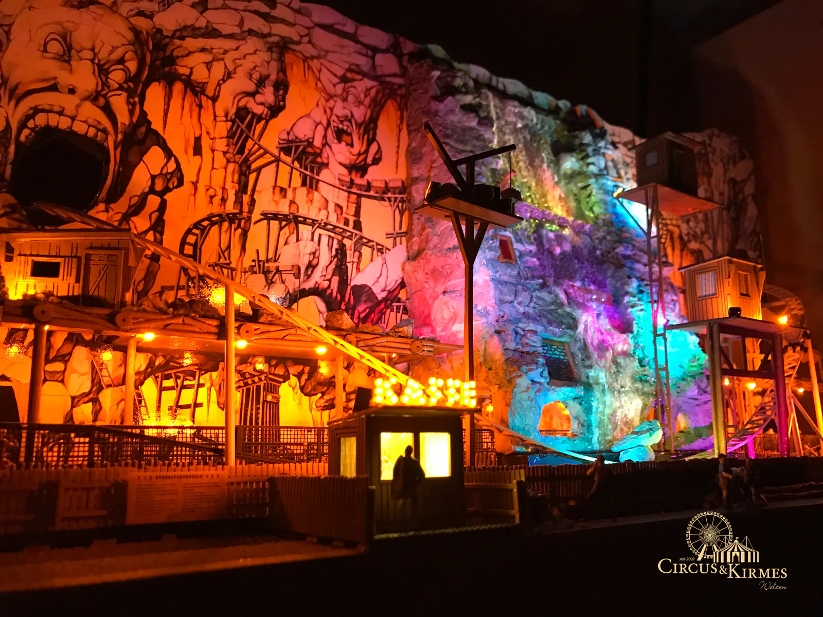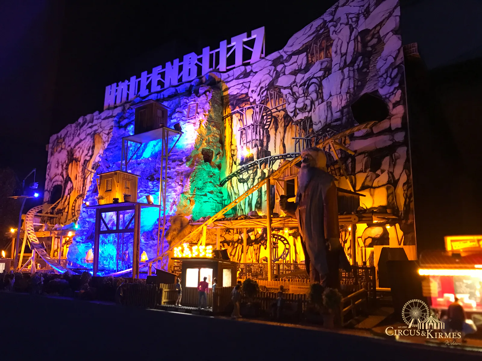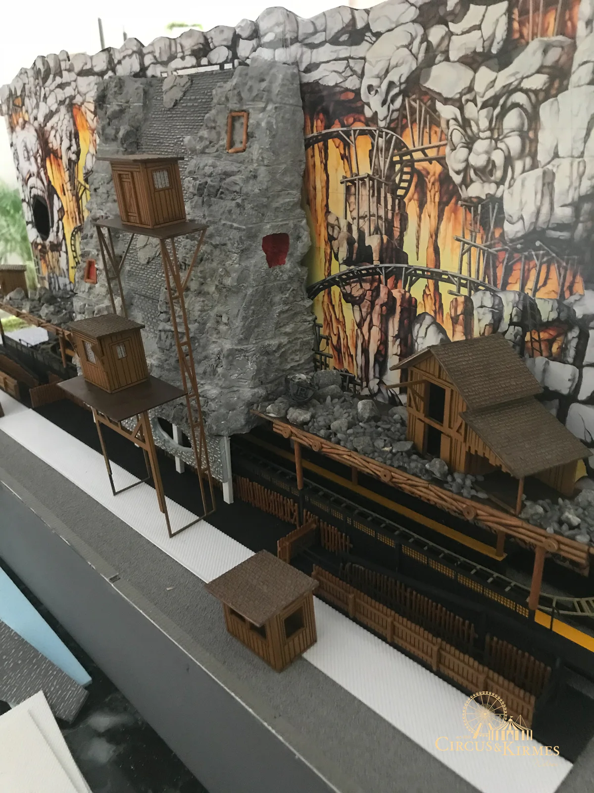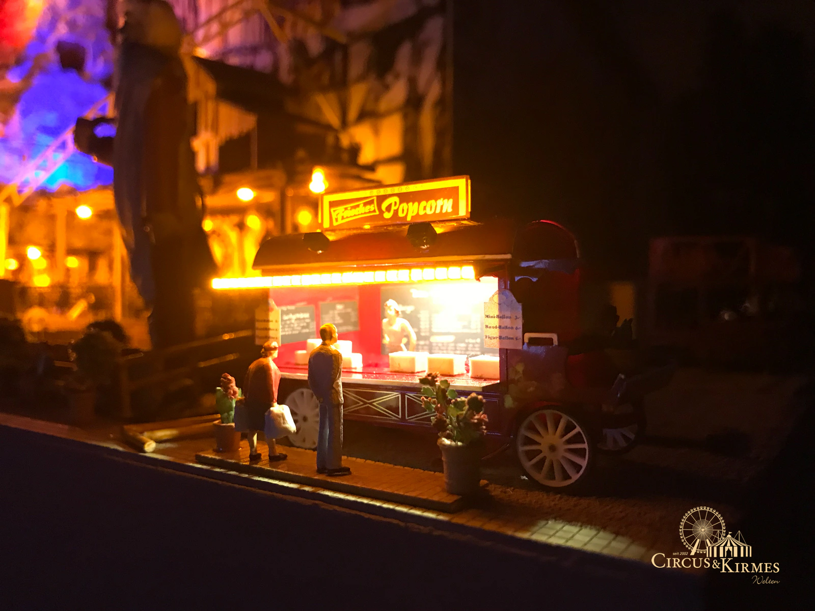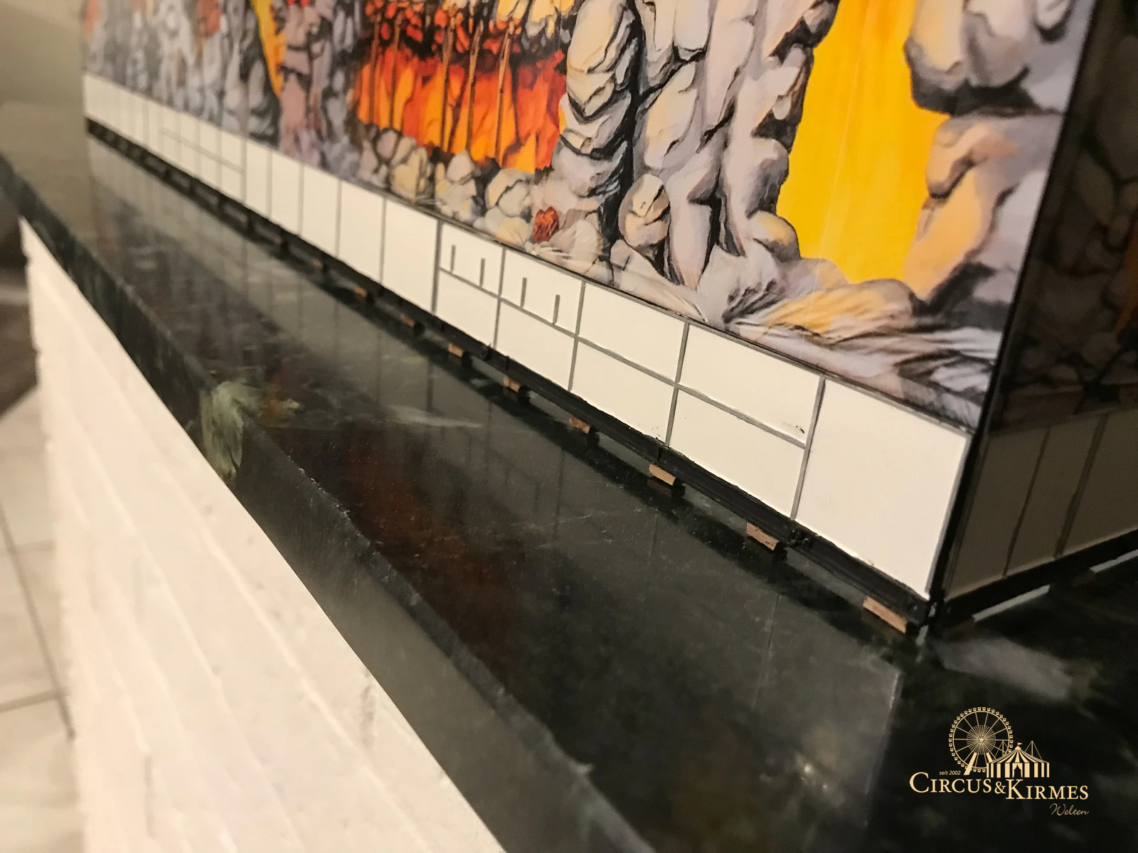 Nach zahlreichen Arbeitsstunden entstand dieses detailgetreue Modell des bekannten Fahrgeschäfts Höllenblitz im Maßstab 1:87. Es handelt sich um einen kompletten Eigenbau – von der Grundkonstruktion über die Antriebs- und Beleuchtungstechnik bis hin zur aufwendigen Gestaltung der Fassade und Szenerie.