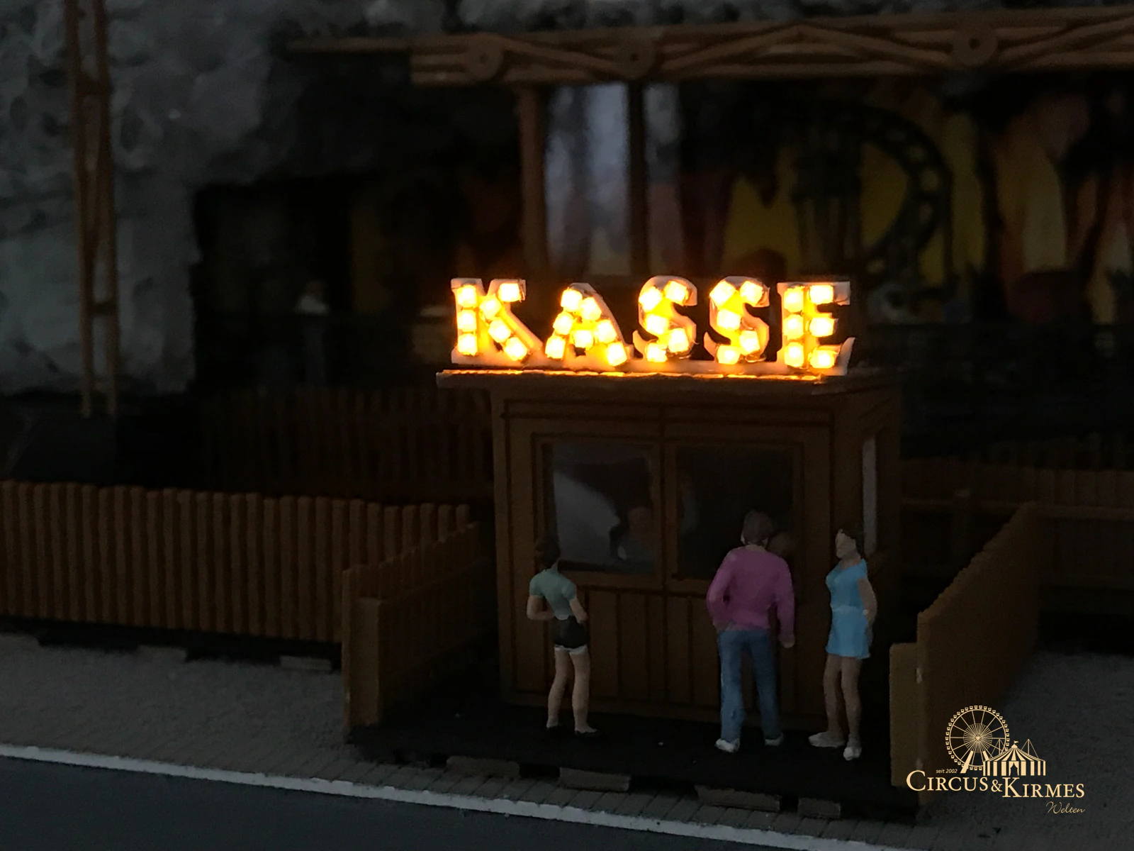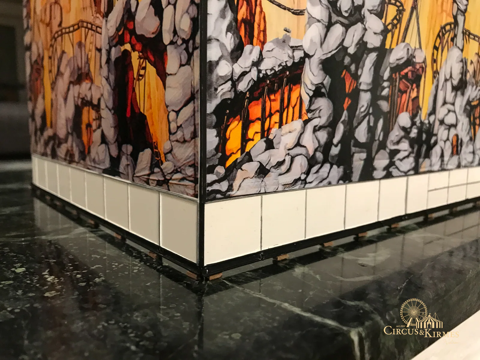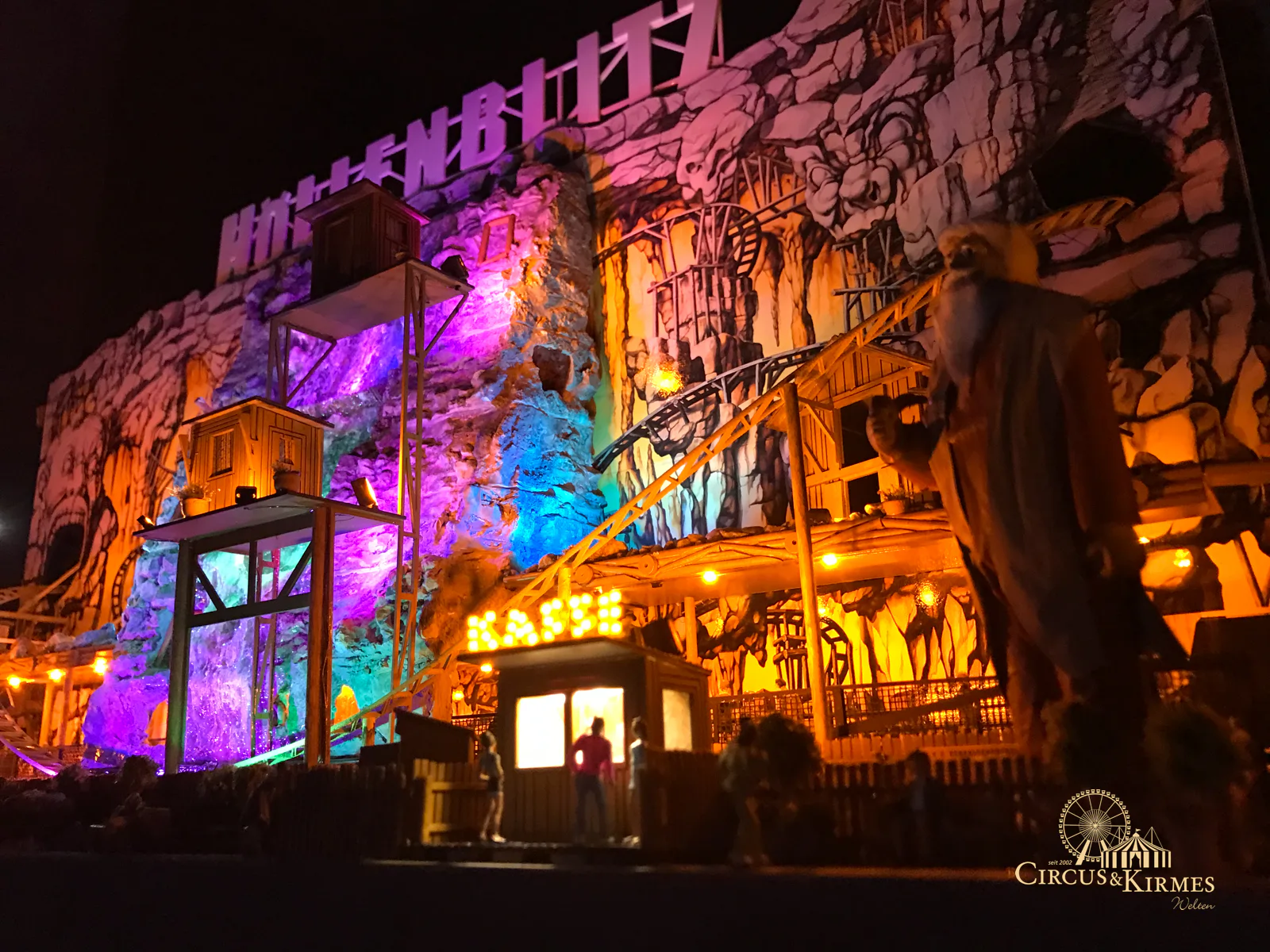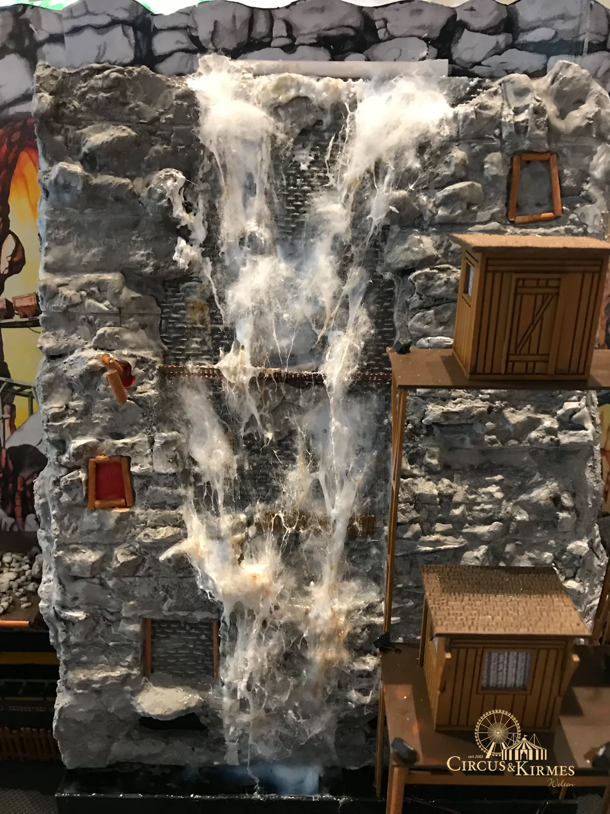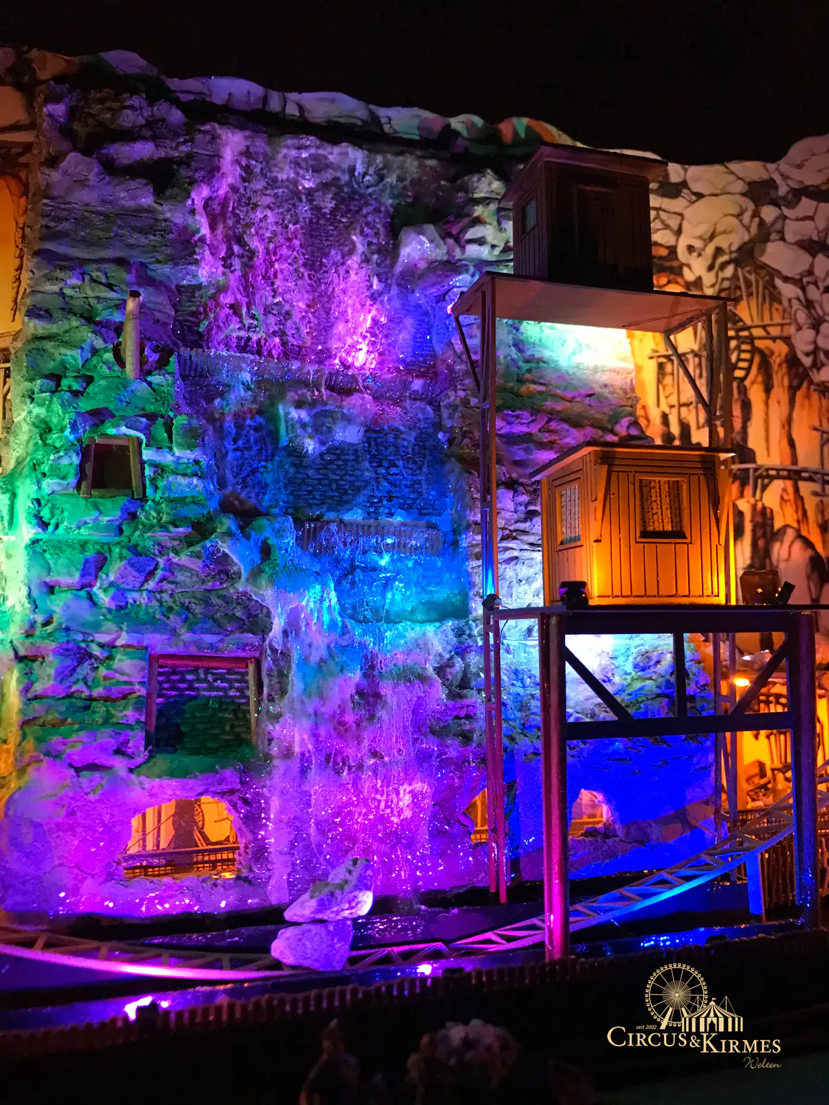 Nach zahlreichen Arbeitsstunden entstand dieses detailgetreue Modell des bekannten Fahrgeschäfts Höllenblitz im Maßstab 1:87. Es handelt sich um einen kompletten Eigenbau – von der Grundkonstruktion über die Antriebs- und Beleuchtungstechnik bis hin zur aufwendigen Gestaltung der Fassade und Szenerie.