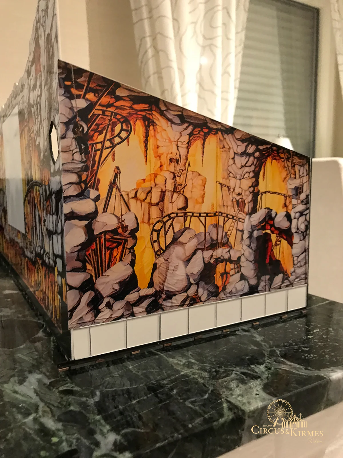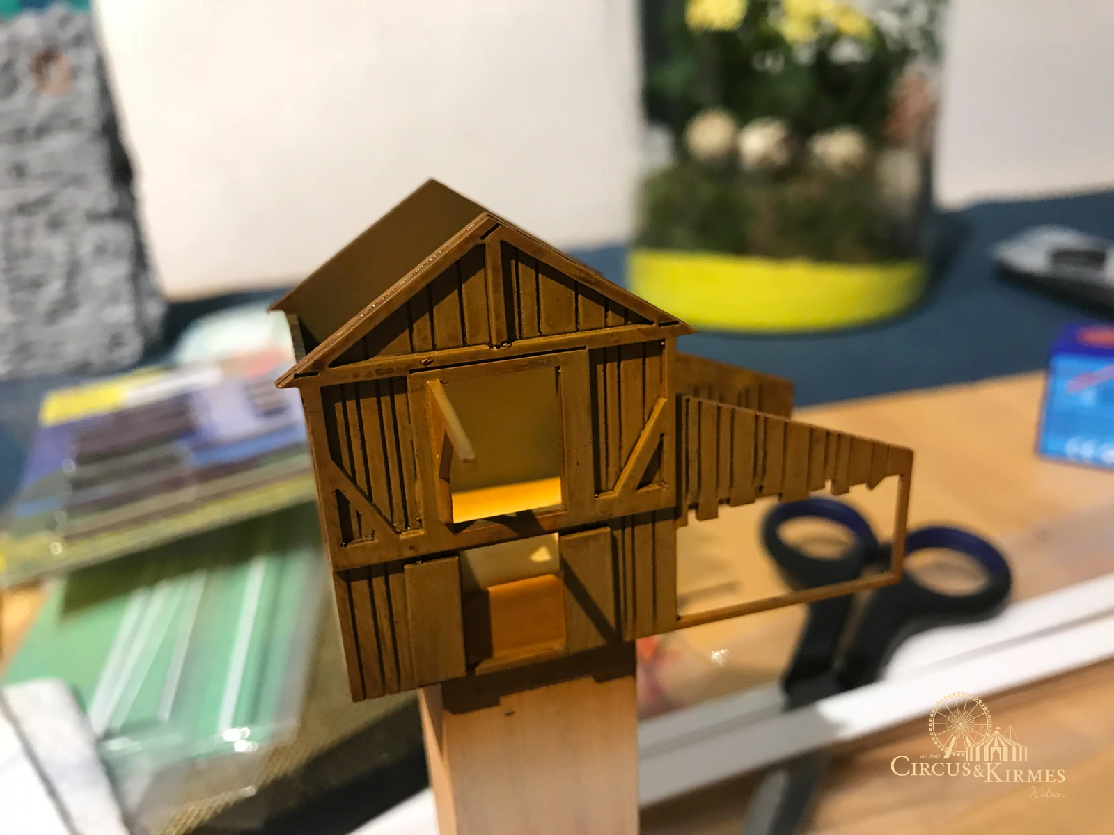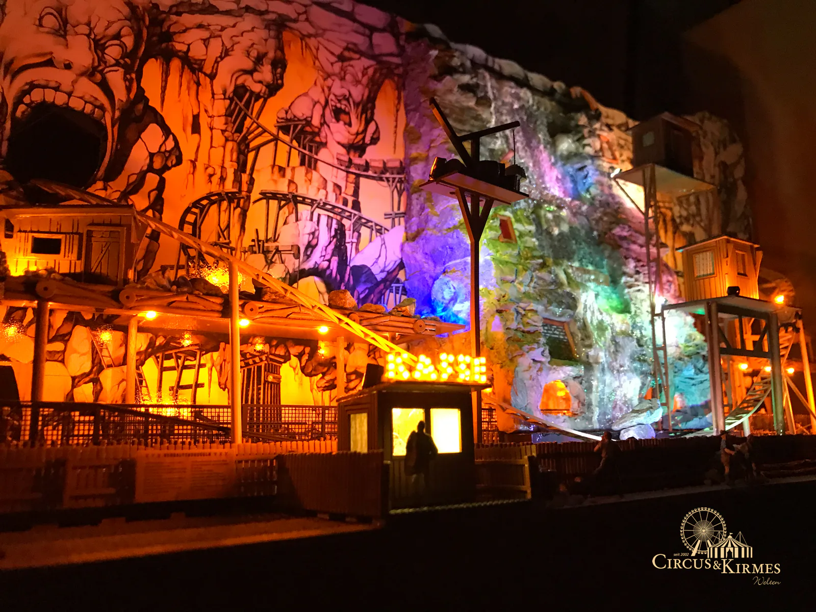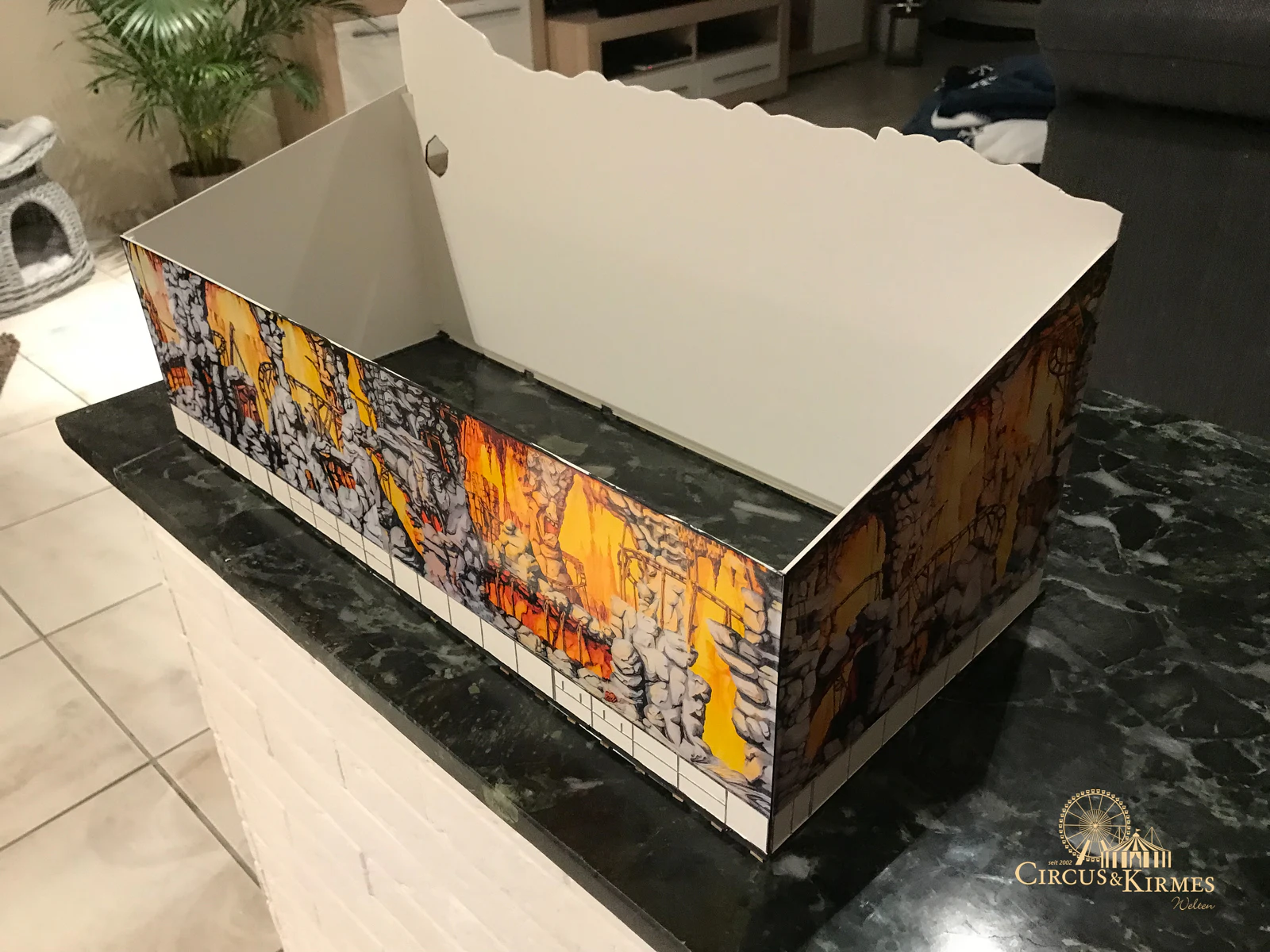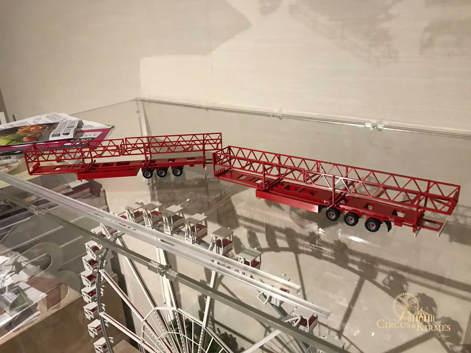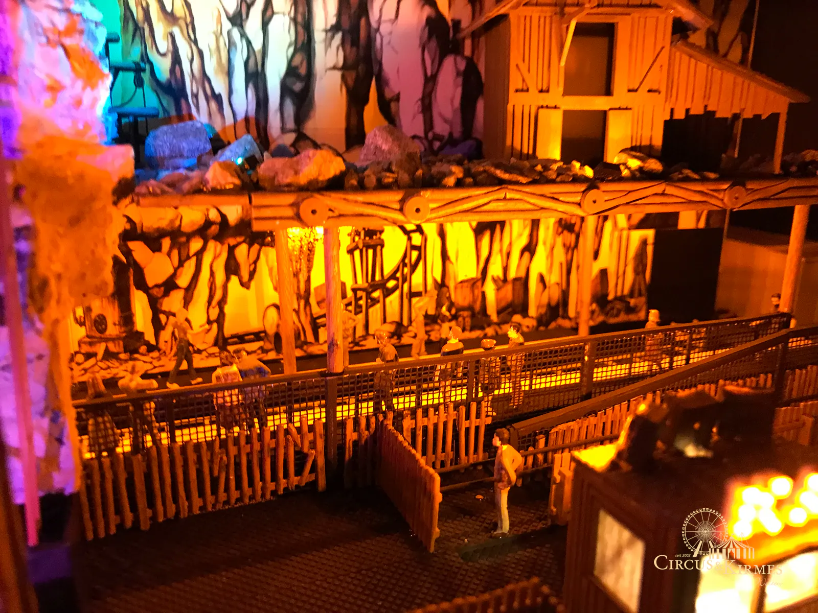 Nach zahlreichen Arbeitsstunden entstand dieses detailgetreue Modell des bekannten Fahrgeschäfts Höllenblitz im Maßstab 1:87. Es handelt sich um einen kompletten Eigenbau – von der Grundkonstruktion über die Antriebs- und Beleuchtungstechnik bis hin zur aufwendigen Gestaltung der Fassade und Szenerie.