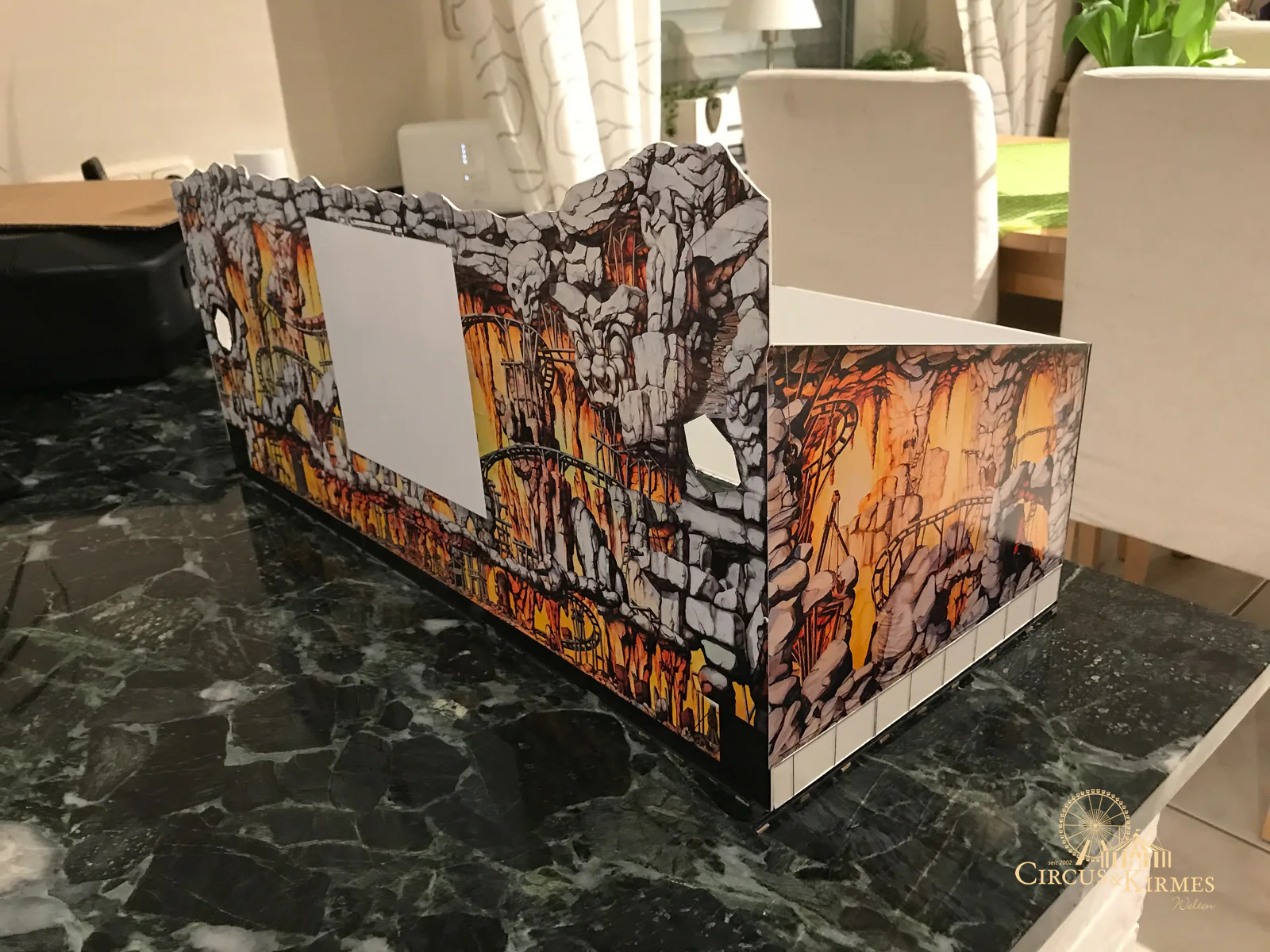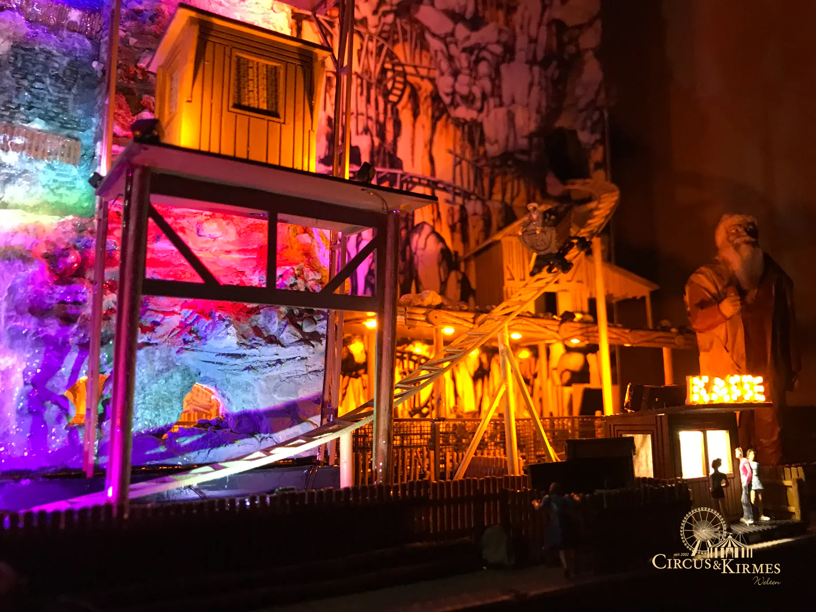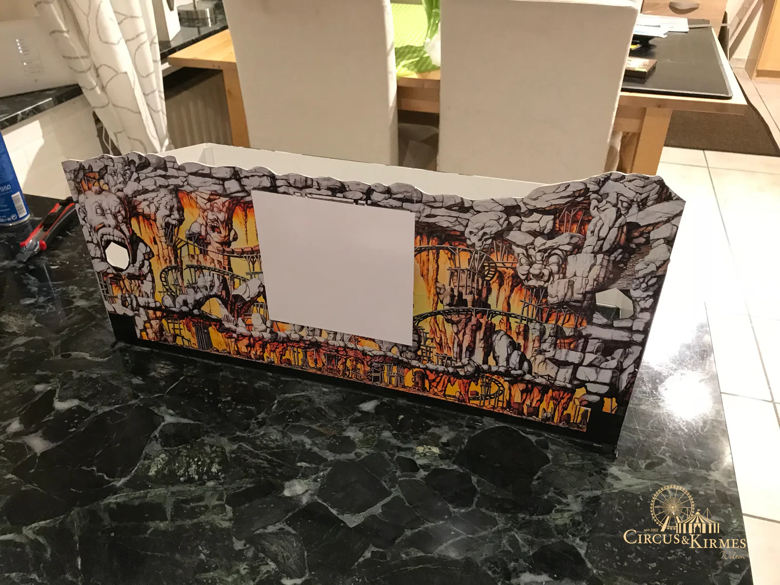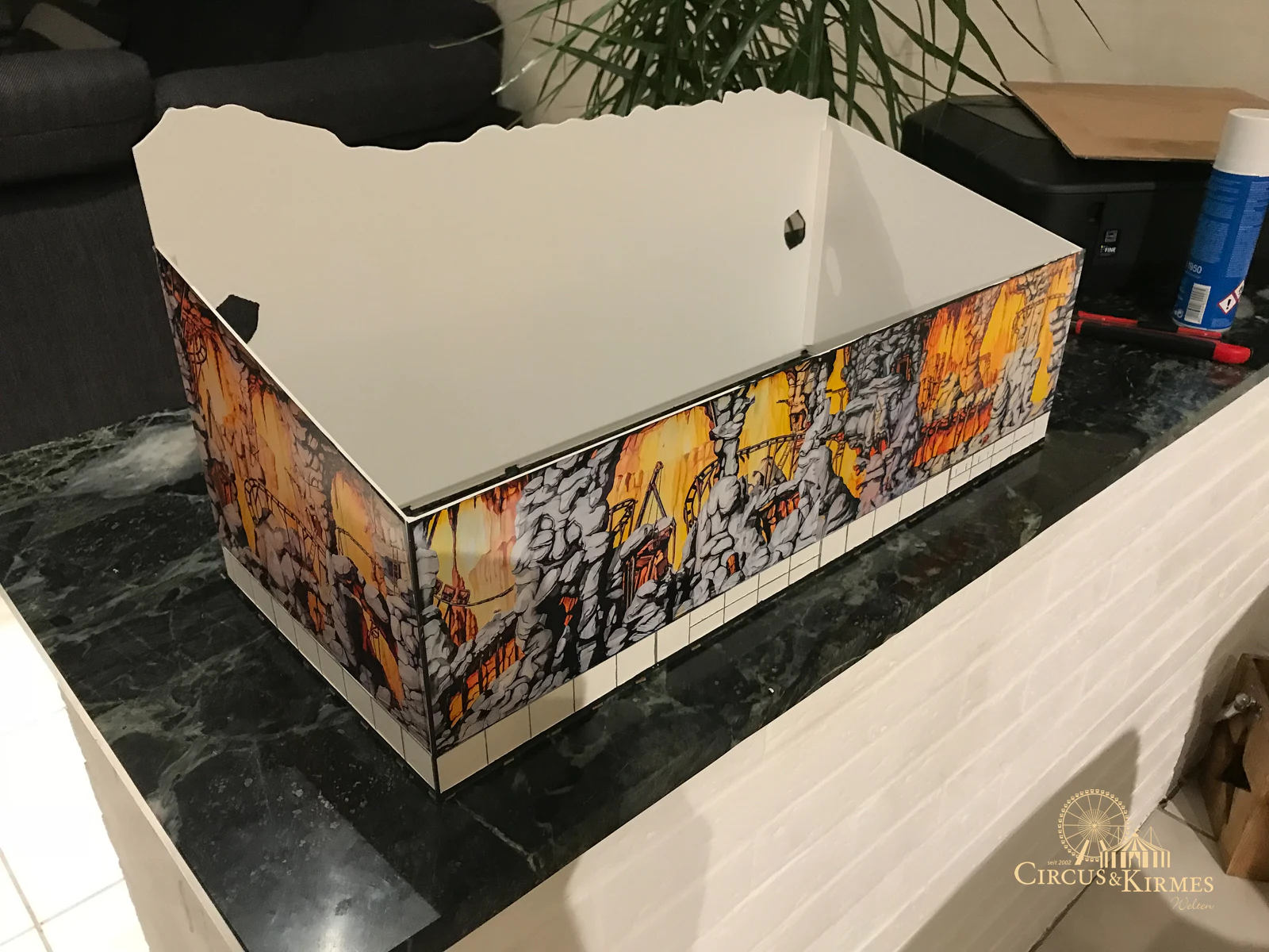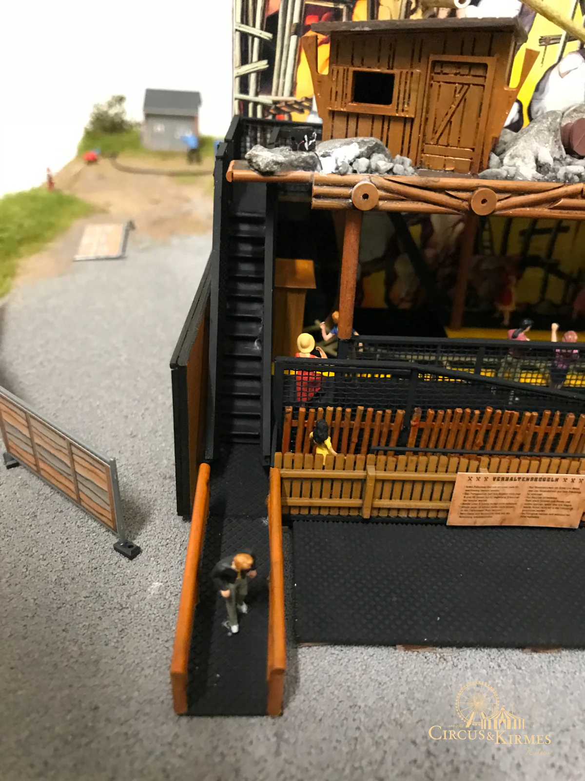 Nach zahlreichen Arbeitsstunden entstand dieses detailgetreue Modell des bekannten Fahrgeschäfts Höllenblitz im Maßstab 1:87. Es handelt sich um einen kompletten Eigenbau – von der Grundkonstruktion über die Antriebs- und Beleuchtungstechnik bis hin zur aufwendigen Gestaltung der Fassade und Szenerie.