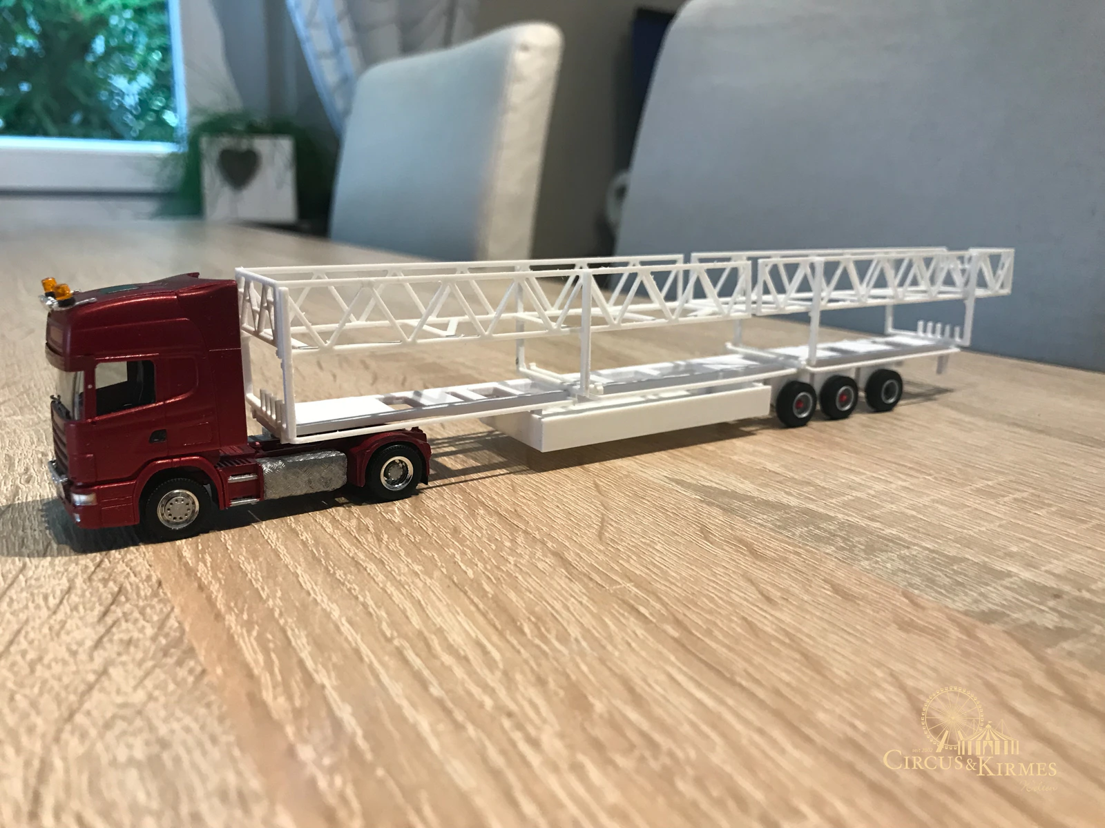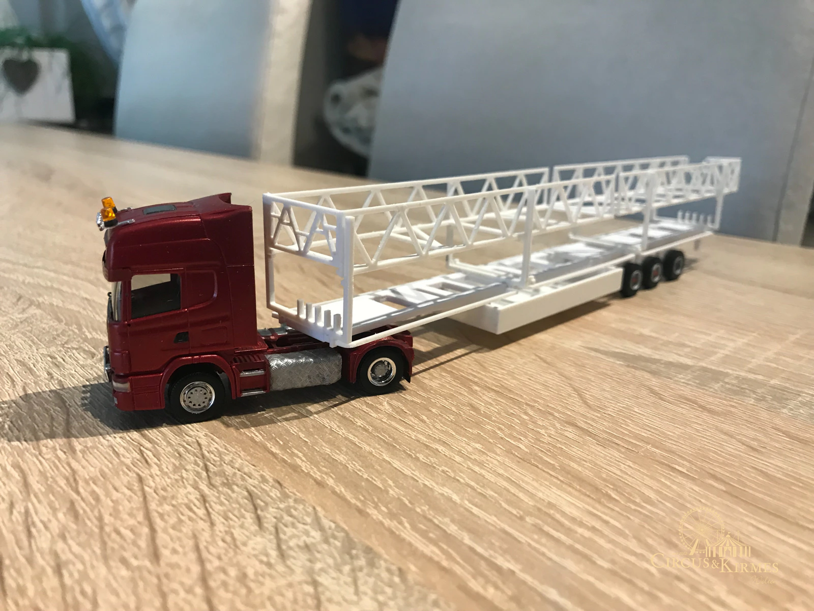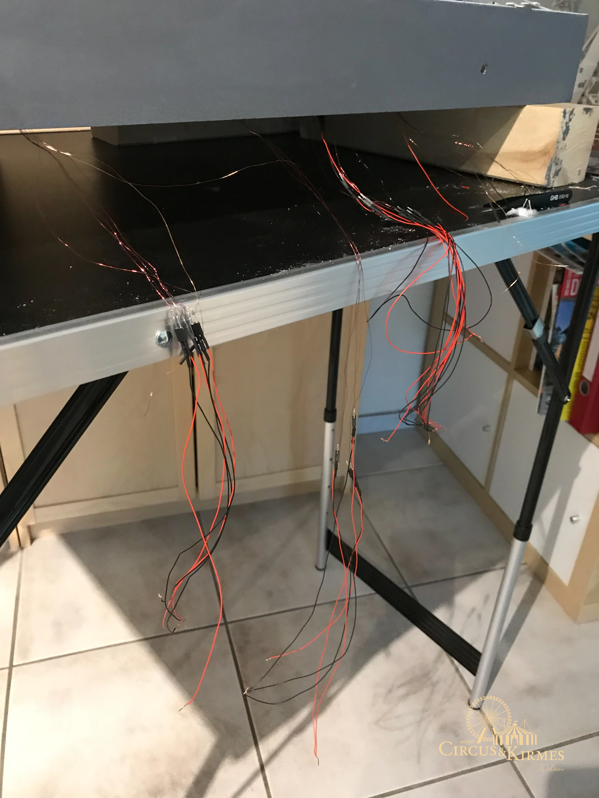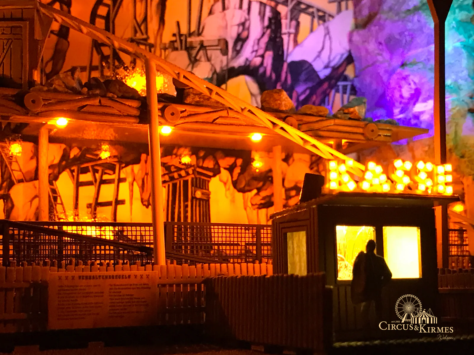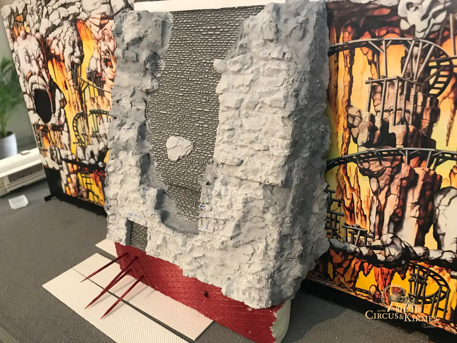 Nach zahlreichen Arbeitsstunden entstand dieses detailgetreue Modell des bekannten Fahrgeschäfts Höllenblitz im Maßstab 1:87. Es handelt sich um einen kompletten Eigenbau – von der Grundkonstruktion über die Antriebs- und Beleuchtungstechnik bis hin zur aufwendigen Gestaltung der Fassade und Szenerie.